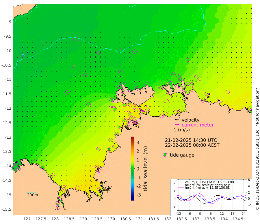 70cm/s 78T +4cm/s rms + 6cm/s 51T. Darwin_C1 52m 19cm/s 88T +4cm/s rms + 7cm/s -161T. Darwin_CW1 22m 29cm/s 74T +4cm/s rms + 8cm/s 61T. Darwin_CW2 34m 41cm/s 44T +3cm/s rms + 9cm/s 98T. Darwin_CW3 22m 47cm/s 91T +5cm/s rms + 7cm/s 88T. Darwin_C3 56m 44cm/s 64T +2cm/s rms + 9cm/s -126T. Darwin_CTbW 22m 4cm/s -6T +9cm/s rms + 2cm/s -110T. NWSLYN 196m 9cm/s -69T +1cm/s rms + 1cm/s -47T. DARBGF 30m 6cm/s -68T +7cm/s rms + 2cm/s -137T. ITFTIS 464m 11cm/s -27T +9cm/s rms + 1cm/s 74T. ITFMHB 146m 12cm/s -54T +4cm/s rms + 1cm/s -134T. ITFJBG 61m 17cm/s -59T +6cm/s rms + 4cm/s 121T. ITFFTB 108m 14cm/s -38T +4cm/s rms + 3cm/s 80T. NRSDAR 19m -17cm Carronade Island -19cm Guy Point -12cm Napier Broome Bay 25cm Lesueur Island 63cm Reveley Island 21cm Rocky Island 98cm Cape Domett 87cm Lacrosse Island 115cm Adolphus Island 103cm Pender Point 109cm Wyndham -6cm The Boxers 20cm Unnamed Shoal -31cm Loxton Shoal 102cm Pelican Island -17cm Calder Shoal -27cm Evans Shoal 148cm Quoin Island 86cm Port Keats 81cm Jones Point 135cm Catfish Island 54cm Cape Scott Offshore -24cm Cape Ford 64cm Anson Bay -16cm Goodrich Bank 50cm Peron Island North 40cm Point Jenny 40cm Native Point 42cm Fish Reef 53cm Tapa Bay 3cm Point Fawcett (Offshore) 59cm Burge Point 42cm Munkunuwa 25cm Beagle A 72cm Parsons Bank 54cm Fenton Patches -11cm Lynedoch Bank 75cm Hancox Shoal Area 77cm Nightcliff 80cm Darwin 60cm Charles Point Patches 74cm Glyde Point 82cm Chambers Bay 86cm Point Stuart 74cm Cape Hotham 76cm Christine Reef 93cm West Alligator Head 94cm East Field Island 74cm Two Hills Bay 18cm Newby Shoal 67cm Camp Point 52cm Medina Inlet South 6cm South Barlow Point -11cm St. Asaph Bay -15cm Cape Van Dieman -3cm Snake Bay -11cm Cache Point -40cm Echo Shoal 4cm Point Jahleel (Off) 36cm Cape Don 14cm Port Essington 15cm Smith Point - West 19cm NW Peacock Island 7cm North Of Jones Shoal 5cm Peacock Island 48cm Point David 23cm D'urville Point 22cm Money Shoal 50cm Copeland Island 64cm Cape Cockburn 44cm One Tree Point 59cm Hogmany Shoal 49cm New Year Island - West 52cm Grant Island 68cm Aurari Bay 81cm Cuthbert Point 66cm North Goulburn Island 90cm Paxie Shoal 104cm Entrance Island 124cm Yabooma Island