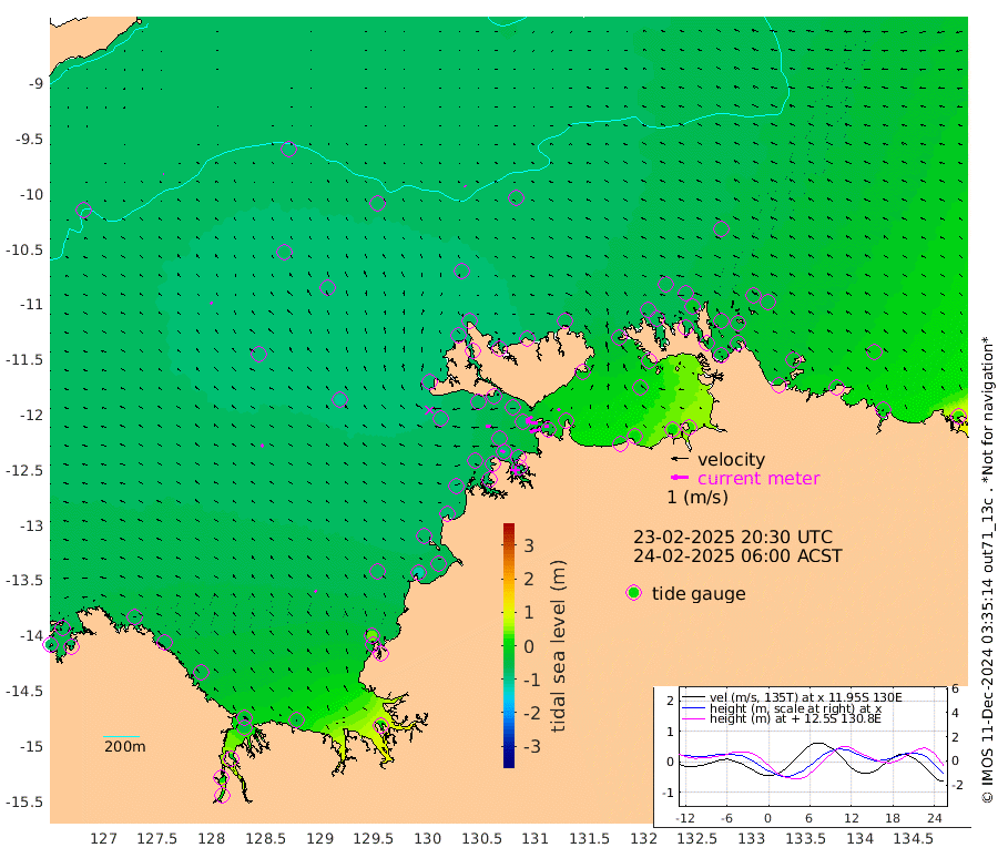 67cm/s -103T +4cm/s rms + 6cm/s 51T. Darwin_C1 52m 25cm/s -89T +4cm/s rms + 7cm/s -161T. Darwin_CW1 22m 28cm/s -102T +4cm/s rms + 8cm/s 61T. Darwin_CW2 34m 18cm/s -117T +3cm/s rms + 9cm/s 98T. Darwin_CW3 22m 41cm/s -91T +5cm/s rms + 7cm/s 88T. Darwin_C3 56m 43cm/s -116T +2cm/s rms + 9cm/s -126T. Darwin_CTbW 22m 6cm/s -47T +9cm/s rms + 2cm/s -110T. NWSLYN 196m 29cm/s -91T +1cm/s rms + 1cm/s -47T. DARBGF 30m 4cm/s -110T +7cm/s rms + 2cm/s -137T. ITFTIS 464m 12cm/s -23T +9cm/s rms + 1cm/s 74T. ITFMHB 146m 10cm/s -33T +4cm/s rms + 1cm/s -134T. ITFJBG 61m 17cm/s -53T +6cm/s rms + 4cm/s 121T. ITFFTB 108m 28cm/s -63T +4cm/s rms + 3cm/s 80T. NRSDAR 19m -63cm Carronade Island -68cm Guy Point -70cm Napier Broome Bay -62cm Lesueur Island -49cm Reveley Island -56cm Rocky Island -38cm Cape Domett -36cm Lacrosse Island -22cm Adolphus Island 1cm Pender Point 11cm Wyndham -85cm The Boxers -72cm Unnamed Shoal -80cm Loxton Shoal -35cm Pelican Island -88cm Calder Shoal -76cm Evans Shoal 14cm Quoin Island -55cm Port Keats -40cm Jones Point 43cm Catfish Island -70cm Cape Scott Offshore -124cm Cape Ford -69cm Anson Bay -76cm Goodrich Bank -77cm Peron Island North -89cm Point Jenny -90cm Native Point -76cm Fish Reef -84cm Tapa Bay -88cm Point Fawcett (Offshore) -78cm Burge Point -78cm Munkunuwa -88cm Beagle A -73cm Parsons Bank -77cm Fenton Patches -65cm Lynedoch Bank -68cm Hancox Shoal Area -71cm Nightcliff -68cm Darwin -79cm Charles Point Patches -38cm Glyde Point -4cm Chambers Bay 8cm Point Stuart -21cm Cape Hotham -20cm Christine Reef 14cm West Alligator Head 31cm East Field Island -16cm Two Hills Bay -103cm Newby Shoal -15cm Camp Point -78cm Medina Inlet South -86cm South Barlow Point -84cm St. Asaph Bay -77cm Cape Van Dieman -76cm Snake Bay -76cm Cache Point -67cm Echo Shoal -67cm Point Jahleel (Off) -54cm Cape Don -61cm Port Essington -67cm Smith Point - West -63cm NW Peacock Island -62cm North Of Jones Shoal -20cm Peacock Island -43cm Point David -63cm D'urville Point -51cm Money Shoal -38cm Copeland Island -52cm Cape Cockburn -45cm One Tree Point -55cm Hogmany Shoal -45cm New Year Island - West -48cm Grant Island -22cm Aurari Bay -26cm Cuthbert Point -33cm North Goulburn Island -10cm Paxie Shoal -5cm Entrance Island 26cm Yabooma Island