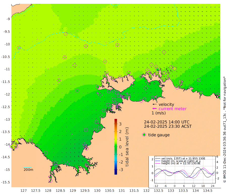 47cm/s -101T +4cm/s rms + 6cm/s 51T. Darwin_C1 52m 50cm/s -90T +4cm/s rms + 7cm/s -161T. Darwin_CW1 22m 21cm/s -109T +4cm/s rms + 8cm/s 61T. Darwin_CW2 34m 28cm/s -137T +3cm/s rms + 9cm/s 98T. Darwin_CW3 22m 23cm/s -92T +5cm/s rms + 7cm/s 88T. Darwin_C3 56m 25cm/s -114T +2cm/s rms + 9cm/s -126T. Darwin_CTbW 22m 6cm/s 135T +9cm/s rms + 2cm/s -110T. NWSLYN 196m 6cm/s -98T +1cm/s rms + 1cm/s -47T. DARBGF 30m 5cm/s 17T +7cm/s rms + 2cm/s -137T. ITFTIS 464m 8cm/s 24T +9cm/s rms + 1cm/s 74T. ITFMHB 146m 10cm/s -4T +4cm/s rms + 1cm/s -134T. ITFJBG 61m 6cm/s 17T +6cm/s rms + 4cm/s 121T. ITFFTB 108m 8cm/s -72T +4cm/s rms + 3cm/s 80T. NRSDAR 19m 55cm Carronade Island 56cm Guy Point 60cm Napier Broome Bay 32cm Lesueur Island -10cm Reveley Island -5cm Rocky Island -37cm Cape Domett -35cm Lacrosse Island -42cm Adolphus Island -19cm Pender Point -14cm Wyndham 44cm The Boxers 49cm Unnamed Shoal 60cm Loxton Shoal -47cm Pelican Island 45cm Calder Shoal 52cm Evans Shoal -66cm Quoin Island -46cm Port Keats -41cm Jones Point -67cm Catfish Island -24cm Cape Scott Offshore 16cm Cape Ford -31cm Anson Bay 51cm Goodrich Bank -13cm Peron Island North -18cm Point Jenny -16cm Native Point -24cm Fish Reef -23cm Tapa Bay 16cm Point Fawcett (Offshore) -30cm Burge Point -26cm Munkunuwa -13cm Beagle A -23cm Parsons Bank -33cm Fenton Patches 51cm Lynedoch Bank -27cm Hancox Shoal Area -42cm Nightcliff -30cm Darwin -18cm Charles Point Patches -19cm Glyde Point -23cm Chambers Bay -18cm Point Stuart -15cm Cape Hotham -18cm Christine Reef -24cm West Alligator Head -26cm East Field Island -5cm Two Hills Bay 22cm Newby Shoal -8cm Camp Point -23cm Medina Inlet South 25cm South Barlow Point 30cm St. Asaph Bay 50cm Cape Van Dieman 53cm Snake Bay 49cm Cache Point 56cm Echo Shoal 41cm Point Jahleel (Off) 25cm Cape Don 45cm Port Essington 43cm Smith Point - West 49cm NW Peacock Island 45cm North Of Jones Shoal 16cm Peacock Island 49cm Point David 47cm D'urville Point 49cm Money Shoal 45cm Copeland Island 56cm Cape Cockburn 46cm One Tree Point 67cm Hogmany Shoal 48cm New Year Island - West 51cm Grant Island 32cm Aurari Bay 37cm Cuthbert Point 41cm North Goulburn Island 30cm Paxie Shoal 28cm Entrance Island 13cm Yabooma Island