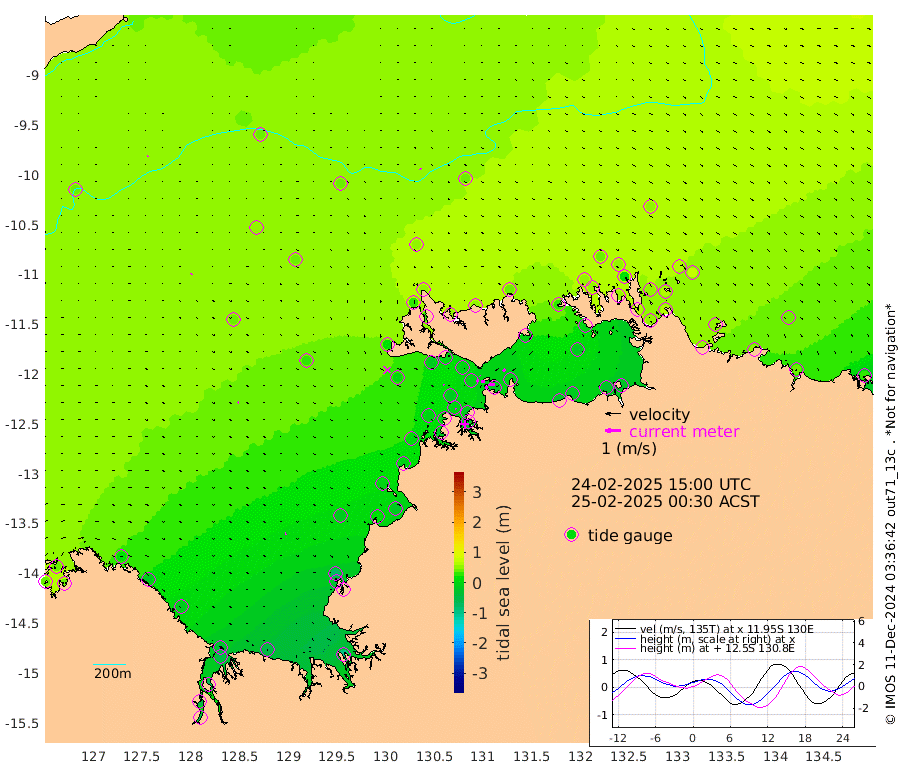 16cm/s -100T +4cm/s rms + 6cm/s 51T. Darwin_C1 52m 40cm/s -91T +4cm/s rms + 7cm/s -161T. Darwin_CW1 22m 15cm/s -110T +4cm/s rms + 8cm/s 61T. Darwin_CW2 34m 22cm/s -139T +3cm/s rms + 9cm/s 98T. Darwin_CW3 22m 24cm/s -94T +5cm/s rms + 7cm/s 88T. Darwin_C3 56m 1cm/s -50T +2cm/s rms + 9cm/s -126T. Darwin_CTbW 22m 6cm/s 140T +9cm/s rms + 2cm/s -110T. NWSLYN 196m 5cm/s 114T +1cm/s rms + 1cm/s -47T. DARBGF 30m 5cm/s 18T +7cm/s rms + 2cm/s -137T. ITFTIS 464m 7cm/s 33T +9cm/s rms + 1cm/s 74T. ITFMHB 146m 5cm/s 56T +4cm/s rms + 1cm/s -134T. ITFJBG 61m 6cm/s 83T +6cm/s rms + 4cm/s 121T. ITFFTB 108m 5cm/s 149T +4cm/s rms + 3cm/s 80T. NRSDAR 19m 36cm Carronade Island 36cm Guy Point 40cm Napier Broome Bay 20cm Lesueur Island -14cm Reveley Island -18cm Rocky Island -47cm Cape Domett -42cm Lacrosse Island -61cm Adolphus Island -54cm Pender Point -51cm Wyndham 39cm The Boxers 56cm Unnamed Shoal 44cm Loxton Shoal -49cm Pelican Island 38cm Calder Shoal 41cm Evans Shoal -91cm Quoin Island -41cm Port Keats -35cm Jones Point -77cm Catfish Island -13cm Cape Scott Offshore 12cm Cape Ford -15cm Anson Bay 46cm Goodrich Bank -2cm Peron Island North -1cm Point Jenny 1cm Native Point -11cm Fish Reef -6cm Tapa Bay 22cm Point Fawcett (Offshore) -16cm Burge Point -12cm Munkunuwa 1cm Beagle A -7cm Parsons Bank -16cm Fenton Patches 44cm Lynedoch Bank -10cm Hancox Shoal Area -22cm Nightcliff -18cm Darwin -8cm Charles Point Patches -12cm Glyde Point -23cm Chambers Bay -19cm Point Stuart -10cm Cape Hotham -15cm Christine Reef -27cm West Alligator Head -34cm East Field Island -3cm Two Hills Bay 27cm Newby Shoal -7cm Camp Point -11cm Medina Inlet South 29cm South Barlow Point 31cm St. Asaph Bay 48cm Cape Van Dieman 51cm Snake Bay 47cm Cache Point 38cm Echo Shoal 40cm Point Jahleel (Off) 28cm Cape Don 46cm Port Essington 47cm Smith Point - West 52cm NW Peacock Island 44cm North Of Jones Shoal 16cm Peacock Island 58cm Point David 52cm D'urville Point 51cm Money Shoal 55cm Copeland Island 67cm Cape Cockburn 52cm One Tree Point 76cm Hogmany Shoal 56cm New Year Island - West 59cm Grant Island 46cm Aurari Bay 50cm Cuthbert Point 52cm North Goulburn Island 43cm Paxie Shoal 43cm Entrance Island 30cm Yabooma Island