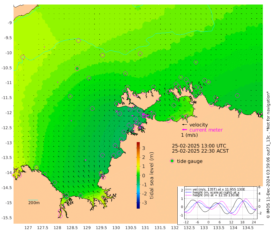 97cm/s -102T +4cm/s rms + 6cm/s 51T. Darwin_C1 52m 61cm/s -88T +4cm/s rms + 7cm/s -161T. Darwin_CW1 22m 44cm/s -110T +4cm/s rms + 8cm/s 61T. Darwin_CW2 34m 37cm/s -129T +3cm/s rms + 9cm/s 98T. Darwin_CW3 22m 36cm/s -92T +5cm/s rms + 7cm/s 88T. Darwin_C3 56m 60cm/s -115T +2cm/s rms + 9cm/s -126T. Darwin_CTbW 22m 4cm/s 124T +9cm/s rms + 2cm/s -110T. NWSLYN 196m 35cm/s -88T +1cm/s rms + 1cm/s -47T. DARBGF 30m 5cm/s 6T +7cm/s rms + 2cm/s -137T. ITFTIS 464m 12cm/s 8T +9cm/s rms + 1cm/s 74T. ITFMHB 146m 27cm/s -22T +4cm/s rms + 1cm/s -134T. ITFJBG 61m 20cm/s -29T +6cm/s rms + 4cm/s 121T. ITFFTB 108m 34cm/s -61T +4cm/s rms + 3cm/s 80T. NRSDAR 19m 91cm Carronade Island 96cm Guy Point 101cm Napier Broome Bay 51cm Lesueur Island 0cm Reveley Island 17cm Rocky Island -4cm Cape Domett -10cm Lacrosse Island 17cm Adolphus Island 79cm Pender Point 98cm Wyndham 32cm The Boxers 10cm Unnamed Shoal 64cm Loxton Shoal -28cm Pelican Island 31cm Calder Shoal 45cm Evans Shoal 23cm Quoin Island -55cm Port Keats -50cm Jones Point 38cm Catfish Island -51cm Cape Scott Offshore -34cm Cape Ford -69cm Anson Bay 31cm Goodrich Bank -49cm Peron Island North -65cm Point Jenny -64cm Native Point -65cm Fish Reef -70cm Tapa Bay -19cm Point Fawcett (Offshore) -73cm Burge Point -75cm Munkunuwa -57cm Beagle A -70cm Parsons Bank -77cm Fenton Patches 40cm Lynedoch Bank -67cm Hancox Shoal Area -87cm Nightcliff -66cm Darwin -53cm Charles Point Patches -31cm Glyde Point -1cm Chambers Bay 9cm Point Stuart -18cm Cape Hotham -3cm Christine Reef 10cm West Alligator Head 26cm East Field Island 2cm Two Hills Bay -9cm Newby Shoal 2cm Camp Point -63cm Medina Inlet South -13cm South Barlow Point 0cm St. Asaph Bay 25cm Cape Van Dieman 25cm Snake Bay 27cm Cache Point 70cm Echo Shoal 19cm Point Jahleel (Off) 6cm Cape Don 21cm Port Essington 14cm Smith Point - West 20cm NW Peacock Island 25cm North Of Jones Shoal 8cm Peacock Island 13cm Point David 14cm D'urville Point 26cm Money Shoal 10cm Copeland Island 15cm Cape Cockburn 17cm One Tree Point 27cm Hogmany Shoal 16cm New Year Island - West 16cm Grant Island -2cm Aurari Bay 7cm Cuthbert Point 8cm North Goulburn Island 7cm Paxie Shoal 1cm Entrance Island -6cm Yabooma Island