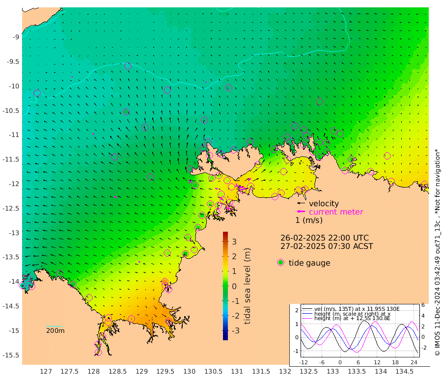 47cm/s 81T +4cm/s rms + 6cm/s 51T. Darwin_C1 52m 42cm/s 93T +4cm/s rms + 7cm/s -161T. Darwin_CW1 22m 38cm/s 66T +4cm/s rms + 8cm/s 61T. Darwin_CW2 34m 48cm/s 41T +3cm/s rms + 9cm/s 98T. Darwin_CW3 22m 59cm/s 89T +5cm/s rms + 7cm/s 88T. Darwin_C3 56m 16cm/s 65T +2cm/s rms + 9cm/s -126T. Darwin_CTbW 22m 10cm/s -24T +9cm/s rms + 2cm/s -110T. NWSLYN 196m 31cm/s -80T +1cm/s rms + 1cm/s -47T. DARBGF 30m 10cm/s -96T +7cm/s rms + 2cm/s -137T. ITFTIS 464m 19cm/s -40T +9cm/s rms + 1cm/s 74T. ITFMHB 146m 20cm/s -61T +4cm/s rms + 1cm/s -134T. ITFJBG 61m 36cm/s -60T +6cm/s rms + 4cm/s 121T. ITFFTB 108m 43cm/s -53T +4cm/s rms + 3cm/s 80T. NRSDAR 19m -96cm Carronade Island -94cm Guy Point -108cm Napier Broome Bay -11cm Lesueur Island 78cm Reveley Island -16cm Rocky Island 152cm Cape Domett 133cm Lacrosse Island 192cm Adolphus Island 172cm Pender Point 176cm Wyndham -82cm The Boxers -58cm Unnamed Shoal -118cm Loxton Shoal 176cm Pelican Island -98cm Calder Shoal -103cm Evans Shoal 262cm Quoin Island 131cm Port Keats 138cm Jones Point 213cm Catfish Island 53cm Cape Scott Offshore -7cm Cape Ford 67cm Anson Bay -87cm Goodrich Bank 39cm Peron Island North 23cm Point Jenny 22cm Native Point 38cm Fish Reef 53cm Tapa Bay -51cm Point Fawcett (Offshore) 65cm Burge Point 39cm Munkunuwa 1cm Beagle A 76cm Parsons Bank 62cm Fenton Patches -82cm Lynedoch Bank 91cm Hancox Shoal Area 87cm Nightcliff 100cm Darwin 68cm Charles Point Patches 96cm Glyde Point 123cm Chambers Bay 130cm Point Stuart 99cm Cape Hotham 100cm Christine Reef 145cm West Alligator Head 160cm East Field Island 87cm Two Hills Bay -54cm Newby Shoal 92cm Camp Point 48cm Medina Inlet South -55cm South Barlow Point -74cm St. Asaph Bay -88cm Cape Van Dieman -81cm Snake Bay -83cm Cache Point -119cm Echo Shoal -55cm Point Jahleel (Off) -4cm Cape Don -43cm Port Essington -46cm Smith Point - West -42cm NW Peacock Island -60cm North Of Jones Shoal -18cm Peacock Island 4cm Point David -37cm D'urville Point -34cm Money Shoal 11cm Copeland Island 5cm Cape Cockburn -6cm One Tree Point 12cm Hogmany Shoal -1cm New Year Island - West 3cm Grant Island 43cm Aurari Bay 58cm Cuthbert Point 31cm North Goulburn Island 81cm Paxie Shoal 107cm Entrance Island 159cm Yabooma Island