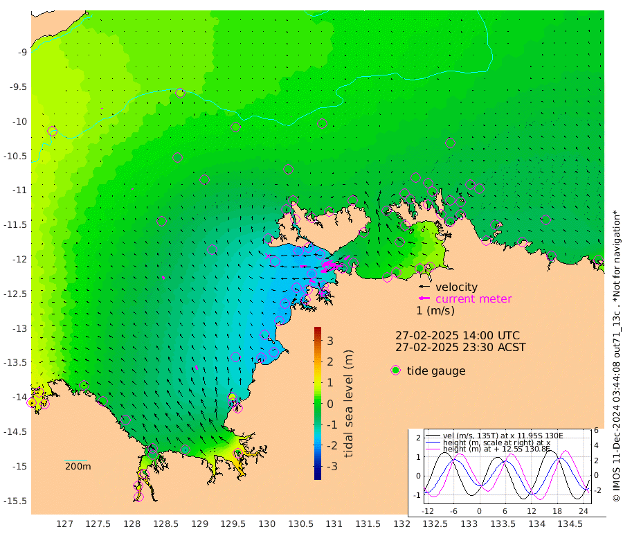 160cm/s -102T +4cm/s rms + 6cm/s 51T. Darwin_C1 52m 115cm/s -89T +4cm/s rms + 7cm/s -161T. Darwin_CW1 22m 90cm/s -109T +4cm/s rms + 8cm/s 61T. Darwin_CW2 34m 62cm/s -129T +3cm/s rms + 9cm/s 98T. Darwin_CW3 22m 100cm/s -92T +5cm/s rms + 7cm/s 88T. Darwin_C3 56m 92cm/s -115T +2cm/s rms + 9cm/s -126T. Darwin_CTbW 22m 4cm/s 154T +9cm/s rms + 2cm/s -110T. NWSLYN 196m 61cm/s -90T +1cm/s rms + 1cm/s -47T. DARBGF 30m 3cm/s 11T +7cm/s rms + 2cm/s -137T. ITFTIS 464m 13cm/s 5T +9cm/s rms + 1cm/s 74T. ITFMHB 146m 42cm/s -20T +4cm/s rms + 1cm/s -134T. ITFJBG 61m 29cm/s -34T +6cm/s rms + 4cm/s 121T. ITFFTB 108m 56cm/s -62T +4cm/s rms + 3cm/s 80T. NRSDAR 19m 123cm Carronade Island 130cm Guy Point 137cm Napier Broome Bay 31cm Lesueur Island -49cm Reveley Island 1cm Rocky Island -62cm Cape Domett -64cm Lacrosse Island -23cm Adolphus Island 89cm Pender Point 131cm Wyndham -5cm The Boxers -44cm Unnamed Shoal 52cm Loxton Shoal -101cm Pelican Island -7cm Calder Shoal 24cm Evans Shoal -1cm Quoin Island -149cm Port Keats -145cm Jones Point 73cm Catfish Island -135cm Cape Scott Offshore -190cm Cape Ford -165cm Anson Bay -6cm Goodrich Bank -146cm Peron Island North -162cm Point Jenny -162cm Native Point -167cm Fish Reef -178cm Tapa Bay -91cm Point Fawcett (Offshore) -184cm Burge Point -180cm Munkunuwa -151cm Beagle A -179cm Parsons Bank -185cm Fenton Patches 15cm Lynedoch Bank -167cm Hancox Shoal Area -190cm Nightcliff -179cm Darwin -165cm Charles Point Patches -98cm Glyde Point -22cm Chambers Bay -5cm Point Stuart -67cm Cape Hotham -23cm Christine Reef 1cm West Alligator Head 35cm East Field Island -26cm Two Hills Bay -78cm Newby Shoal -29cm Camp Point -168cm Medina Inlet South -83cm South Barlow Point -56cm St. Asaph Bay -15cm Cape Van Dieman -18cm Snake Bay -11cm Cache Point 74cm Echo Shoal -20cm Point Jahleel (Off) -37cm Cape Don -21cm Port Essington -29cm Smith Point - West -22cm NW Peacock Island -7cm North Of Jones Shoal -4cm Peacock Island -32cm Point David -31cm D'urville Point -8cm Money Shoal -33cm Copeland Island -40cm Cape Cockburn -24cm One Tree Point -26cm Hogmany Shoal -26cm New Year Island - West -28cm Grant Island -42cm Aurari Bay -33cm Cuthbert Point -35cm North Goulburn Island -26cm Paxie Shoal -37cm Entrance Island -34cm Yabooma Island