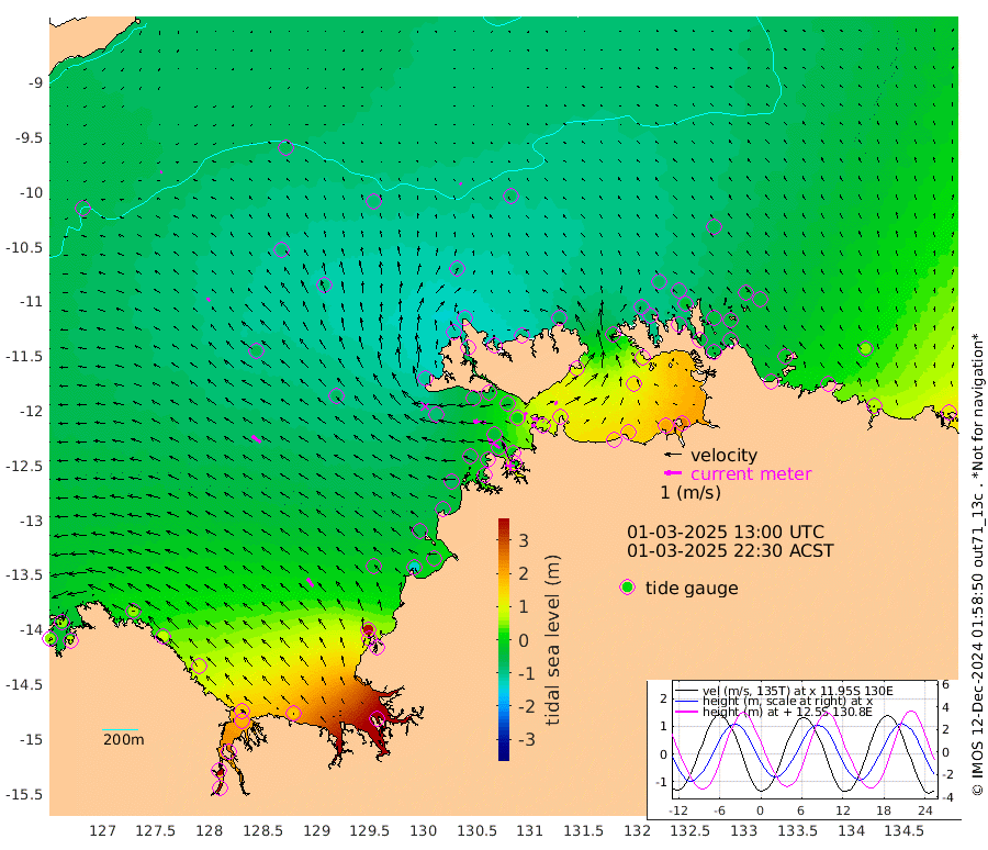 25cm/s -104T +4cm/s rms + 6cm/s 51T. Darwin_C1 52m 3cm/s -61T +4cm/s rms + 7cm/s -161T. Darwin_CW1 22m 8cm/s -108T +4cm/s rms + 8cm/s 61T. Darwin_CW2 34m 24cm/s 33T +3cm/s rms + 9cm/s 98T. Darwin_CW3 22m 27cm/s 98T +5cm/s rms + 7cm/s 88T. Darwin_C3 56m 22cm/s -120T +2cm/s rms + 9cm/s -126T. Darwin_CTbW 22m 11cm/s -27T +9cm/s rms + 2cm/s -110T. NWSLYN 196m 77cm/s -84T +1cm/s rms + 1cm/s -47T. DARBGF 30m 10cm/s -98T +7cm/s rms + 2cm/s -137T. ITFTIS 464m 24cm/s -34T +9cm/s rms + 1cm/s 74T. ITFMHB 146m 57cm/s -35T +4cm/s rms + 1cm/s -134T. ITFJBG 61m 61cm/s -53T +6cm/s rms + 4cm/s 121T. ITFFTB 108m 88cm/s -53T +4cm/s rms + 3cm/s 80T. NRSDAR 19m 46cm Carronade Island 54cm Guy Point 59cm Napier Broome Bay 52cm Lesueur Island 99cm Reveley Island 74cm Rocky Island 190cm Cape Domett 158cm Lacrosse Island 265cm Adolphus Island 350cm Pender Point 386cm Wyndham -67cm The Boxers -89cm Unnamed Shoal -67cm Loxton Shoal 162cm Pelican Island -87cm Calder Shoal -82cm Evans Shoal 362cm Quoin Island 77cm Port Keats 72cm Jones Point 344cm Catfish Island -16cm Cape Scott Offshore -145cm Cape Ford -28cm Anson Bay -97cm Goodrich Bank -47cm Peron Island North -66cm Point Jenny -68cm Native Point -61cm Fish Reef -51cm Tapa Bay -110cm Point Fawcett (Offshore) -31cm Burge Point -64cm Munkunuwa -85cm Beagle A -26cm Parsons Bank -40cm Fenton Patches -74cm Lynedoch Bank -5cm Hancox Shoal Area -15cm Nightcliff -1cm Darwin -33cm Charles Point Patches 56cm Glyde Point 149cm Chambers Bay 168cm Point Stuart 77cm Cape Hotham 132cm Christine Reef 197cm West Alligator Head 240cm East Field Island 100cm Two Hills Bay -74cm Newby Shoal 100cm Camp Point -47cm Medina Inlet South -111cm South Barlow Point -114cm St. Asaph Bay -106cm Cape Van Dieman -102cm Snake Bay -97cm Cache Point -57cm Echo Shoal -73cm Point Jahleel (Off) -22cm Cape Don -70cm Port Essington -77cm Smith Point - West -71cm NW Peacock Island -77cm North Of Jones Shoal -26cm Peacock Island -45cm Point David -75cm D'urville Point -58cm Money Shoal -40cm Copeland Island -50cm Cape Cockburn -43cm One Tree Point -40cm Hogmany Shoal -40cm New Year Island - West -37cm Grant Island -14cm Aurari Bay 14cm Cuthbert Point -16cm North Goulburn Island 45cm Paxie Shoal 63cm Entrance Island 108cm Yabooma Island