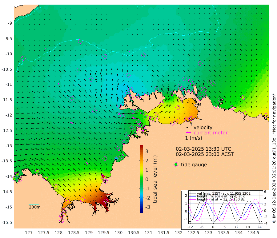 25cm/s -104T +4cm/s rms + 6cm/s 51T. Darwin_C1 52m 5cm/s -71T +4cm/s rms + 7cm/s -161T. Darwin_CW1 22m 12cm/s -104T +4cm/s rms + 8cm/s 61T. Darwin_CW2 34m 24cm/s 35T +3cm/s rms + 9cm/s 98T. Darwin_CW3 22m 20cm/s 100T +5cm/s rms + 7cm/s 88T. Darwin_C3 56m 22cm/s -119T +2cm/s rms + 9cm/s -126T. Darwin_CTbW 22m 14cm/s -30T +9cm/s rms + 2cm/s -110T. NWSLYN 196m 84cm/s -85T +1cm/s rms + 1cm/s -47T. DARBGF 30m 12cm/s -104T +7cm/s rms + 2cm/s -137T. ITFTIS 464m 25cm/s -36T +9cm/s rms + 1cm/s 74T. ITFMHB 146m 58cm/s -36T +4cm/s rms + 1cm/s -134T. ITFJBG 61m 64cm/s -54T +6cm/s rms + 4cm/s 121T. ITFFTB 108m 95cm/s -54T +4cm/s rms + 3cm/s 80T. NRSDAR 19m 34cm Carronade Island 40cm Guy Point 45cm Napier Broome Bay 38cm Lesueur Island 91cm Reveley Island 67cm Rocky Island 180cm Cape Domett 148cm Lacrosse Island 256cm Adolphus Island 345cm Pender Point 384cm Wyndham -87cm The Boxers -101cm Unnamed Shoal -89cm Loxton Shoal 153cm Pelican Island -108cm Calder Shoal -102cm Evans Shoal 354cm Quoin Island 63cm Port Keats 63cm Jones Point 343cm Catfish Island -33cm Cape Scott Offshore -172cm Cape Ford -44cm Anson Bay -114cm Goodrich Bank -63cm Peron Island North -82cm Point Jenny -84cm Native Point -77cm Fish Reef -66cm Tapa Bay -131cm Point Fawcett (Offshore) -46cm Burge Point -79cm Munkunuwa -102cm Beagle A -38cm Parsons Bank -53cm Fenton Patches -91cm Lynedoch Bank -16cm Hancox Shoal Area -27cm Nightcliff -16cm Darwin -53cm Charles Point Patches 51cm Glyde Point 151cm Chambers Bay 174cm Point Stuart 76cm Cape Hotham 134cm Christine Reef 205cm West Alligator Head 251cm East Field Island 101cm Two Hills Bay -94cm Newby Shoal 98cm Camp Point -65cm Medina Inlet South -131cm South Barlow Point -134cm St. Asaph Bay -123cm Cape Van Dieman -118cm Snake Bay -114cm Cache Point -78cm Echo Shoal -86cm Point Jahleel (Off) -32cm Cape Don -83cm Port Essington -89cm Smith Point - West -81cm NW Peacock Island -91cm North Of Jones Shoal -31cm Peacock Island -48cm Point David -85cm D'urville Point -69cm Money Shoal -42cm Copeland Island -54cm Cape Cockburn -50cm One Tree Point -42cm Hogmany Shoal -44cm New Year Island - West -40cm Grant Island -12cm Aurari Bay 18cm Cuthbert Point -17cm North Goulburn Island 49cm Paxie Shoal 73cm Entrance Island 122cm Yabooma Island