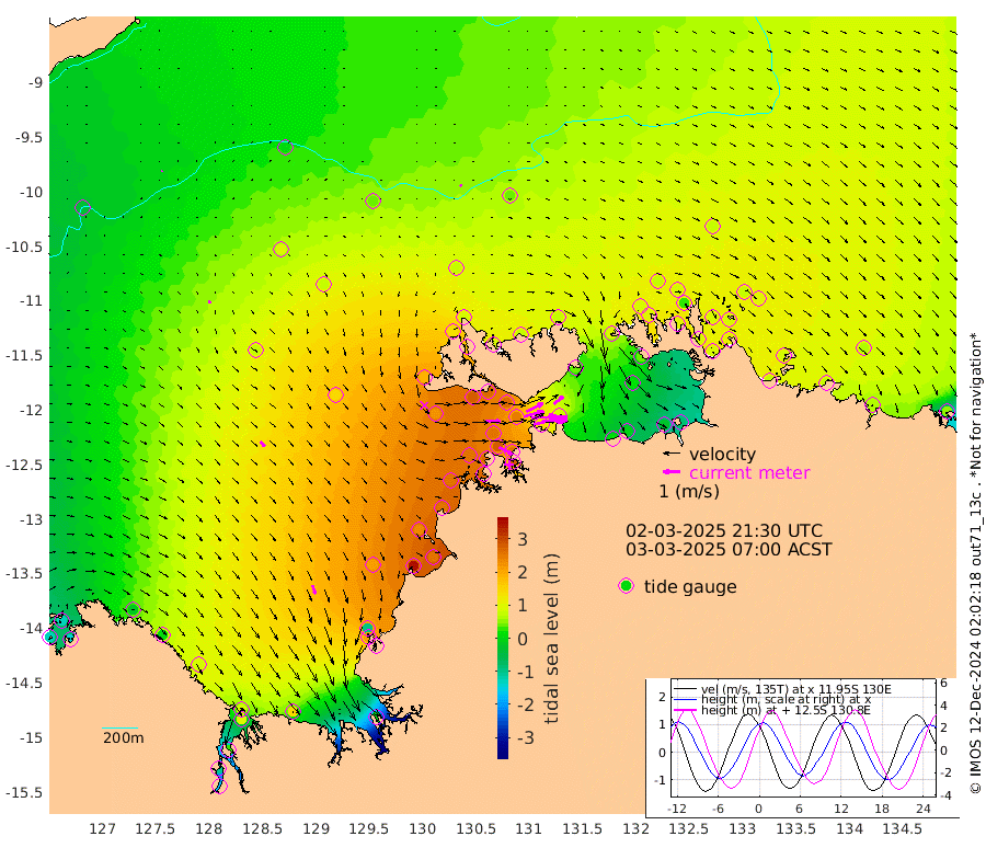 194cm/s 78T +4cm/s rms + 6cm/s 51T. Darwin_C1 52m 145cm/s 88T +4cm/s rms + 7cm/s -161T. Darwin_CW1 22m 118cm/s 74T +4cm/s rms + 8cm/s 61T. Darwin_CW2 34m 73cm/s 52T +3cm/s rms + 9cm/s 98T. Darwin_CW3 22m 154cm/s 88T +5cm/s rms + 7cm/s 88T. Darwin_C3 56m 110cm/s 64T +2cm/s rms + 9cm/s -126T. Darwin_CTbW 22m 10cm/s 136T +9cm/s rms + 2cm/s -110T. NWSLYN 196m 89cm/s 89T +1cm/s rms + 1cm/s -47T. DARBGF 30m 5cm/s 23T +7cm/s rms + 2cm/s -137T. ITFTIS 464m 16cm/s 171T +9cm/s rms + 1cm/s 74T. ITFMHB 146m 54cm/s 161T +4cm/s rms + 1cm/s -134T. ITFJBG 61m 41cm/s 139T +6cm/s rms + 4cm/s 121T. ITFFTB 108m 87cm/s 117T +4cm/s rms + 3cm/s 80T. NRSDAR 19m -126cm Carronade Island -127cm Guy Point -135cm Napier Broome Bay -19cm Lesueur Island 81cm Reveley Island 10cm Rocky Island 94cm Cape Domett 85cm Lacrosse Island 29cm Adolphus Island -105cm Pender Point -172cm Wyndham 68cm The Boxers 95cm Unnamed Shoal 6cm Loxton Shoal 143cm Pelican Island 70cm Calder Shoal 38cm Evans Shoal 0cm Quoin Island 212cm Port Keats 204cm Jones Point -98cm Catfish Island 212cm Cape Scott Offshore 343cm Cape Ford 250cm Anson Bay 70cm Goodrich Bank 234cm Peron Island North 248cm Point Jenny 248cm Native Point 254cm Fish Reef 267cm Tapa Bay 181cm Point Fawcett (Offshore) 269cm Burge Point 272cm Munkunuwa 222cm Beagle A 267cm Parsons Bank 254cm Fenton Patches 40cm Lynedoch Bank 243cm Hancox Shoal Area 257cm Nightcliff 271cm Darwin 270cm Charles Point Patches 138cm Glyde Point 19cm Chambers Bay -10cm Point Stuart 88cm Cape Hotham 20cm Christine Reef -26cm West Alligator Head -84cm East Field Island 36cm Two Hills Bay 145cm Newby Shoal 40cm Camp Point 263cm Medina Inlet South 168cm South Barlow Point 134cm St. Asaph Bay 82cm Cape Van Dieman 86cm Snake Bay 76cm Cache Point -35cm Echo Shoal 77cm Point Jahleel (Off) 92cm Cape Don 89cm Port Essington 92cm Smith Point - West 82cm NW Peacock Island 71cm North Of Jones Shoal 26cm Peacock Island 85cm Point David 93cm D'urville Point 69cm Money Shoal 83cm Copeland Island 106cm Cape Cockburn 82cm One Tree Point 96cm Hogmany Shoal 74cm New Year Island - West 82cm Grant Island 74cm Aurari Bay 75cm Cuthbert Point 85cm North Goulburn Island 67cm Paxie Shoal 64cm Entrance Island 47cm Yabooma Island