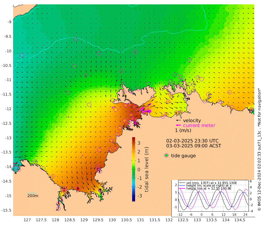 206cm/s 78T +4cm/s rms + 6cm/s 51T. Darwin_C1 52m 156cm/s 92T +4cm/s rms + 7cm/s -161T. Darwin_CW1 22m 128cm/s 72T +4cm/s rms + 8cm/s 61T. Darwin_CW2 34m 119cm/s 44T +3cm/s rms + 9cm/s 98T. Darwin_CW3 22m 205cm/s 89T +5cm/s rms + 7cm/s 88T. Darwin_C3 56m 99cm/s 66T +2cm/s rms + 9cm/s -126T. Darwin_CTbW 22m 5cm/s 11T +9cm/s rms + 2cm/s -110T. NWSLYN 196m 18cm/s 58T +1cm/s rms + 1cm/s -47T. DARBGF 30m 11cm/s -93T +7cm/s rms + 2cm/s -137T. ITFTIS 464m 13cm/s -88T +9cm/s rms + 1cm/s 74T. ITFMHB 146m 20cm/s -120T +4cm/s rms + 1cm/s -134T. ITFJBG 61m 24cm/s -82T +6cm/s rms + 4cm/s 121T. ITFFTB 108m 11cm/s 35T +4cm/s rms + 3cm/s 80T. NRSDAR 19m -97cm Carronade Island -90cm Guy Point -107cm Napier Broome Bay 40cm Lesueur Island 196cm Reveley Island 61cm Rocky Island 302cm Cape Domett 265cm Lacrosse Island 318cm Adolphus Island 234cm Pender Point 208cm Wyndham -8cm The Boxers 8cm Unnamed Shoal -85cm Loxton Shoal 340cm Pelican Island -27cm Calder Shoal -55cm Evans Shoal 380cm Quoin Island 319cm Port Keats 309cm Jones Point 275cm Catfish Island 219cm Cape Scott Offshore 239cm Cape Ford 249cm Anson Bay -30cm Goodrich Bank 217cm Peron Island North 211cm Point Jenny 208cm Native Point 224cm Fish Reef 249cm Tapa Bay 82cm Point Fawcett (Offshore) 268cm Burge Point 229cm Munkunuwa 165cm Beagle A 276cm Parsons Bank 251cm Fenton Patches -42cm Lynedoch Bank 278cm Hancox Shoal Area 280cm Nightcliff 303cm Darwin 267cm Charles Point Patches 227cm Glyde Point 199cm Chambers Bay 191cm Point Stuart 200cm Cape Hotham 183cm Christine Reef 205cm West Alligator Head 190cm East Field Island 167cm Two Hills Bay 82cm Newby Shoal 164cm Camp Point 239cm Medina Inlet South 63cm South Barlow Point 23cm St. Asaph Bay -25cm Cape Van Dieman -18cm Snake Bay -17cm Cache Point -115cm Echo Shoal 13cm Point Jahleel (Off) 86cm Cape Don 31cm Port Essington 32cm Smith Point - West 29cm NW Peacock Island 1cm North Of Jones Shoal 4cm Peacock Island 69cm Point David 39cm D'urville Point 24cm Money Shoal 75cm Copeland Island 94cm Cape Cockburn 61cm One Tree Point 99cm Hogmany Shoal 61cm New Year Island - West 74cm Grant Island 100cm Aurari Bay 134cm Cuthbert Point 104cm North Goulburn Island 148cm Paxie Shoal 177cm Entrance Island 216cm Yabooma Island