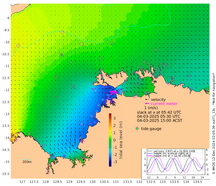 190cm/s -102T +4cm/s rms + 6cm/s 51T. Darwin_C1 52m 137cm/s -90T +4cm/s rms + 7cm/s -161T. Darwin_CW1 22m 128cm/s -107T +4cm/s rms + 8cm/s 61T. Darwin_CW2 34m 84cm/s -131T +3cm/s rms + 9cm/s 98T. Darwin_CW3 22m 184cm/s -91T +5cm/s rms + 7cm/s 88T. Darwin_C3 56m 105cm/s -115T +2cm/s rms + 9cm/s -126T. Darwin_CTbW 22m 3cm/s 163T +9cm/s rms + 2cm/s -110T. NWSLYN 196m 43cm/s -98T +1cm/s rms + 1cm/s -47T. DARBGF 30m 6cm/s 84T +7cm/s rms + 2cm/s -137T. ITFTIS 464m 10cm/s 64T +9cm/s rms + 1cm/s 74T. ITFMHB 146m 25cm/s 7T +4cm/s rms + 1cm/s -134T. ITFJBG 61m 13cm/s 41T +6cm/s rms + 4cm/s 121T. ITFFTB 108m 35cm/s -77T +4cm/s rms + 3cm/s 80T. NRSDAR 19m 150cm Carronade Island 152cm Guy Point 150cm Napier Broome Bay 30cm Lesueur Island -123cm Reveley Island -64cm Rocky Island -191cm Cape Domett -159cm Lacrosse Island -170cm Adolphus Island -86cm Pender Point -36cm Wyndham 10cm The Boxers -24cm Unnamed Shoal 75cm Loxton Shoal -226cm Pelican Island 19cm Calder Shoal 46cm Evans Shoal -204cm Quoin Island -238cm Port Keats -239cm Jones Point -88cm Catfish Island -179cm Cape Scott Offshore -211cm Cape Ford -211cm Anson Bay 20cm Goodrich Bank -187cm Peron Island North -183cm Point Jenny -183cm Native Point -198cm Fish Reef -214cm Tapa Bay -82cm Point Fawcett (Offshore) -232cm Burge Point -224cm Munkunuwa -144cm Beagle A -243cm Parsons Bank -210cm Fenton Patches 33cm Lynedoch Bank -224cm Hancox Shoal Area -231cm Nightcliff -255cm Darwin -223cm Charles Point Patches -160cm Glyde Point -97cm Chambers Bay -89cm Point Stuart -127cm Cape Hotham -85cm Christine Reef -92cm West Alligator Head -59cm East Field Island -91cm Two Hills Bay -64cm Newby Shoal -85cm Camp Point -217cm Medina Inlet South -75cm South Barlow Point -32cm St. Asaph Bay 12cm Cape Van Dieman 1cm Snake Bay 14cm Cache Point 113cm Echo Shoal -8cm Point Jahleel (Off) -59cm Cape Don -23cm Port Essington -22cm Smith Point - West -17cm NW Peacock Island 4cm North Of Jones Shoal -1cm Peacock Island -45cm Point David -27cm D'urville Point -7cm Money Shoal -47cm Copeland Island -60cm Cape Cockburn -40cm One Tree Point -53cm Hogmany Shoal -35cm New Year Island - West -46cm Grant Island -60cm Aurari Bay -77cm Cuthbert Point -65cm North Goulburn Island -84cm Paxie Shoal -102cm Entrance Island -113cm Yabooma Island