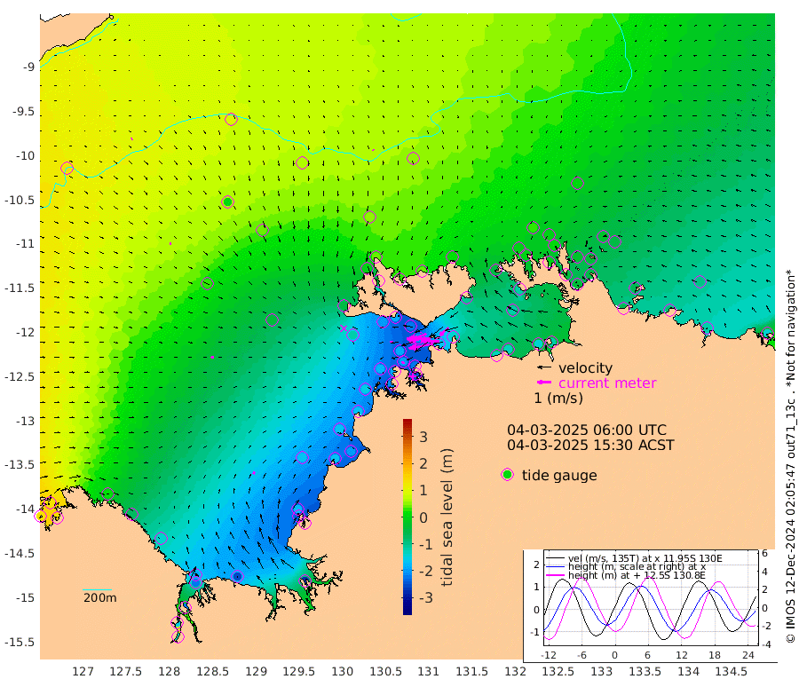 178cm/s -101T +4cm/s rms + 6cm/s 51T. Darwin_C1 52m 132cm/s -90T +4cm/s rms + 7cm/s -161T. Darwin_CW1 22m 114cm/s -107T +4cm/s rms + 8cm/s 61T. Darwin_CW2 34m 85cm/s -133T +3cm/s rms + 9cm/s 98T. Darwin_CW3 22m 177cm/s -91T +5cm/s rms + 7cm/s 88T. Darwin_C3 56m 98cm/s -115T +2cm/s rms + 9cm/s -126T. Darwin_CTbW 22m 5cm/s 156T +9cm/s rms + 2cm/s -110T. NWSLYN 196m 23cm/s -108T +1cm/s rms + 1cm/s -47T. DARBGF 30m 9cm/s 78T +7cm/s rms + 2cm/s -137T. ITFTIS 464m 12cm/s 85T +9cm/s rms + 1cm/s 74T. ITFMHB 146m 18cm/s 37T +4cm/s rms + 1cm/s -134T. ITFJBG 61m 20cm/s 84T +6cm/s rms + 4cm/s 121T. ITFFTB 108m 18cm/s -101T +4cm/s rms + 3cm/s 80T. NRSDAR 19m 134cm Carronade Island 133cm Guy Point 133cm Napier Broome Bay 20cm Lesueur Island -138cm Reveley Island -69cm Rocky Island -221cm Cape Domett -185cm Lacrosse Island -218cm Adolphus Island -157cm Pender Point -119cm Wyndham 31cm The Boxers 3cm Unnamed Shoal 94cm Loxton Shoal -251cm Pelican Island 44cm Calder Shoal 67cm Evans Shoal -273cm Quoin Island -241cm Port Keats -241cm Jones Point -169cm Catfish Island -164cm Cape Scott Offshore -166cm Cape Ford -192cm Anson Bay 45cm Goodrich Bank -165cm Peron Island North -158cm Point Jenny -157cm Native Point -172cm Fish Reef -191cm Tapa Bay -50cm Point Fawcett (Offshore) -211cm Burge Point -195cm Munkunuwa -115cm Beagle A -224cm Parsons Bank -189cm Fenton Patches 54cm Lynedoch Bank -213cm Hancox Shoal Area -215cm Nightcliff -239cm Darwin -201cm Charles Point Patches -166cm Glyde Point -130cm Chambers Bay -128cm Point Stuart -141cm Cape Hotham -116cm Christine Reef -139cm West Alligator Head -117cm East Field Island -113cm Two Hills Bay -38cm Newby Shoal -104cm Camp Point -191cm Medina Inlet South -41cm South Barlow Point 0cm St. Asaph Bay 39cm Cape Van Dieman 29cm Snake Bay 38cm Cache Point 127cm Echo Shoal 11cm Point Jahleel (Off) -51cm Cape Don -5cm Port Essington -3cm Smith Point - West 0cm NW Peacock Island 24cm North Of Jones Shoal 5cm Peacock Island -36cm Point David -9cm D'urville Point 7cm Money Shoal -39cm Copeland Island -49cm Cape Cockburn -30cm One Tree Point -47cm Hogmany Shoal -26cm New Year Island - West -38cm Grant Island -58cm Aurari Bay -83cm Cuthbert Point -62cm North Goulburn Island -96cm Paxie Shoal -120cm Entrance Island -144cm Yabooma Island