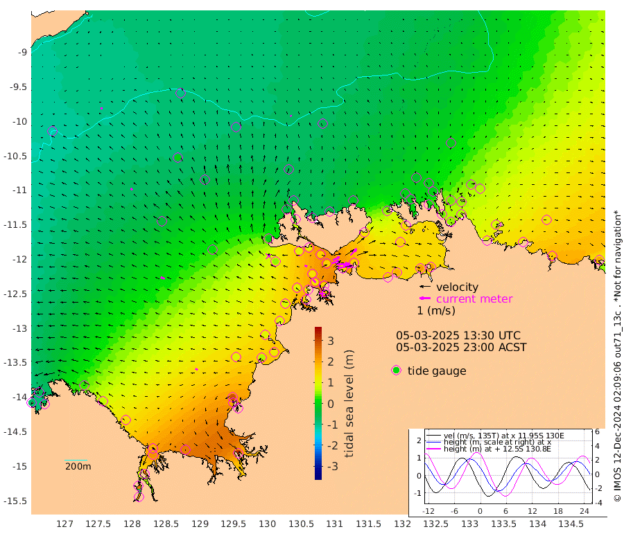 130cm/s 79T +4cm/s rms + 6cm/s 51T. Darwin_C1 52m 83cm/s 92T +4cm/s rms + 7cm/s -161T. Darwin_CW1 22m 70cm/s 71T +4cm/s rms + 8cm/s 61T. Darwin_CW2 34m 84cm/s 44T +3cm/s rms + 9cm/s 98T. Darwin_CW3 22m 121cm/s 90T +5cm/s rms + 7cm/s 88T. Darwin_C3 56m 67cm/s 65T +2cm/s rms + 9cm/s -126T. Darwin_CTbW 22m 12cm/s -24T +9cm/s rms + 2cm/s -110T. NWSLYN 196m 24cm/s -71T +1cm/s rms + 1cm/s -47T. DARBGF 30m 12cm/s -95T +7cm/s rms + 2cm/s -137T. ITFTIS 464m 19cm/s -47T +9cm/s rms + 1cm/s 74T. ITFMHB 146m 23cm/s -65T +4cm/s rms + 1cm/s -134T. ITFJBG 61m 38cm/s -65T +6cm/s rms + 4cm/s 121T. ITFFTB 108m 36cm/s -44T +4cm/s rms + 3cm/s 80T. NRSDAR 19m -66cm Carronade Island -71cm Guy Point -63cm Napier Broome Bay 25cm Lesueur Island 133cm Reveley Island 78cm Rocky Island 224cm Cape Domett 190cm Lacrosse Island 259cm Adolphus Island 237cm Pender Point 236cm Wyndham -41cm The Boxers -11cm Unnamed Shoal -98cm Loxton Shoal 237cm Pelican Island -66cm Calder Shoal -80cm Evans Shoal 323cm Quoin Island 193cm Port Keats 202cm Jones Point 283cm Catfish Island 100cm Cape Scott Offshore 58cm Cape Ford 115cm Anson Bay -62cm Goodrich Bank 101cm Peron Island North 83cm Point Jenny 82cm Native Point 101cm Fish Reef 111cm Tapa Bay -9cm Point Fawcett (Offshore) 134cm Burge Point 98cm Munkunuwa 55cm Beagle A 149cm Parsons Bank 124cm Fenton Patches -59cm Lynedoch Bank 150cm Hancox Shoal Area 141cm Nightcliff 168cm Darwin 126cm Charles Point Patches 155cm Glyde Point 169cm Chambers Bay 187cm Point Stuart 152cm Cape Hotham 152cm Christine Reef 206cm West Alligator Head 212cm East Field Island 146cm Two Hills Bay 12cm Newby Shoal 131cm Camp Point 110cm Medina Inlet South -13cm South Barlow Point -45cm St. Asaph Bay -61cm Cape Van Dieman -49cm Snake Bay -53cm Cache Point -115cm Echo Shoal -22cm Point Jahleel (Off) 45cm Cape Don -4cm Port Essington -6cm Smith Point - West -1cm NW Peacock Island -32cm North Of Jones Shoal -8cm Peacock Island 44cm Point David 5cm D'urville Point -3cm Money Shoal 50cm Copeland Island 64cm Cape Cockburn 35cm One Tree Point 65cm Hogmany Shoal 41cm New Year Island - West 51cm Grant Island 83cm Aurari Bay 116cm Cuthbert Point 79cm North Goulburn Island 124cm Paxie Shoal 161cm Entrance Island 197cm Yabooma Island