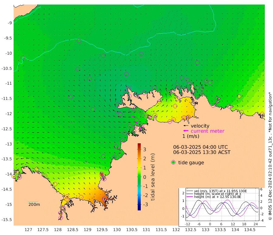26cm/s 80T +4cm/s rms + 6cm/s 51T. Darwin_C1 52m 36cm/s 88T +4cm/s rms + 7cm/s -161T. Darwin_CW1 22m 10cm/s -113T +4cm/s rms + 8cm/s 61T. Darwin_CW2 34m 31cm/s 37T +3cm/s rms + 9cm/s 98T. Darwin_CW3 22m 10cm/s 106T +5cm/s rms + 7cm/s 88T. Darwin_C3 56m 16cm/s 71T +2cm/s rms + 9cm/s -126T. Darwin_CTbW 22m 4cm/s -5T +9cm/s rms + 2cm/s -110T. NWSLYN 196m 44cm/s -85T +1cm/s rms + 1cm/s -47T. DARBGF 30m 7cm/s -112T +7cm/s rms + 2cm/s -137T. ITFTIS 464m 7cm/s -68T +9cm/s rms + 1cm/s 74T. ITFMHB 146m 31cm/s -34T +4cm/s rms + 1cm/s -134T. ITFJBG 61m 30cm/s -54T +6cm/s rms + 4cm/s 121T. ITFFTB 108m 51cm/s -55T +4cm/s rms + 3cm/s 80T. NRSDAR 19m 109cm Carronade Island 118cm Guy Point 112cm Napier Broome Bay 93cm Lesueur Island 97cm Reveley Island 43cm Rocky Island 147cm Cape Domett 139cm Lacrosse Island 190cm Adolphus Island 246cm Pender Point 286cm Wyndham -12cm The Boxers -40cm Unnamed Shoal -22cm Loxton Shoal 129cm Pelican Island -28cm Calder Shoal -29cm Evans Shoal 242cm Quoin Island 72cm Port Keats 62cm Jones Point 301cm Catfish Island 18cm Cape Scott Offshore -44cm Cape Ford 5cm Anson Bay -44cm Goodrich Bank -3cm Peron Island North -2cm Point Jenny -8cm Native Point -9cm Fish Reef -3cm Tapa Bay -36cm Point Fawcett (Offshore) 6cm Burge Point -30cm Munkunuwa -15cm Beagle A -3cm Parsons Bank 6cm Fenton Patches -35cm Lynedoch Bank 21cm Hancox Shoal Area 18cm Nightcliff 10cm Darwin -4cm Charles Point Patches 63cm Glyde Point 138cm Chambers Bay 152cm Point Stuart 83cm Cape Hotham 134cm Christine Reef 174cm West Alligator Head 206cm East Field Island 102cm Two Hills Bay -3cm Newby Shoal 95cm Camp Point -15cm Medina Inlet South -56cm South Barlow Point -48cm St. Asaph Bay -49cm Cape Van Dieman -55cm Snake Bay -34cm Cache Point -7cm Echo Shoal -22cm Point Jahleel (Off) 13cm Cape Don -26cm Port Essington -24cm Smith Point - West -23cm NW Peacock Island -27cm North Of Jones Shoal -9cm Peacock Island -12cm Point David -26cm D'urville Point -18cm Money Shoal -7cm Copeland Island -5cm Cape Cockburn -11cm One Tree Point 8cm Hogmany Shoal -6cm New Year Island - West -4cm Grant Island 10cm Aurari Bay 35cm Cuthbert Point 11cm North Goulburn Island 51cm Paxie Shoal 62cm Entrance Island 95cm Yabooma Island