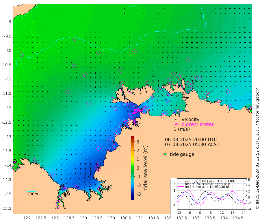 197cm/s -101T +4cm/s rms + 6cm/s 51T. Darwin_C1 52m 134cm/s -90T +4cm/s rms + 7cm/s -161T. Darwin_CW1 22m 87cm/s -105T +4cm/s rms + 8cm/s 61T. Darwin_CW2 34m 95cm/s -135T +3cm/s rms + 9cm/s 98T. Darwin_CW3 22m 145cm/s -90T +5cm/s rms + 7cm/s 88T. Darwin_C3 56m 117cm/s -115T +2cm/s rms + 9cm/s -126T. Darwin_CTbW 22m 5cm/s -135T +9cm/s rms + 2cm/s -110T. NWSLYN 196m 18cm/s -112T +1cm/s rms + 1cm/s -47T. DARBGF 30m 7cm/s 111T +7cm/s rms + 2cm/s -137T. ITFTIS 464m 6cm/s 93T +9cm/s rms + 1cm/s 74T. ITFMHB 146m 11cm/s 72T +4cm/s rms + 1cm/s -134T. ITFJBG 61m 13cm/s 104T +6cm/s rms + 4cm/s 121T. ITFFTB 108m 10cm/s -120T +4cm/s rms + 3cm/s 80T. NRSDAR 19m -22cm Carronade Island -23cm Guy Point -26cm Napier Broome Bay -109cm Lesueur Island -182cm Reveley Island -96cm Rocky Island -261cm Cape Domett -237cm Lacrosse Island -274cm Adolphus Island -225cm Pender Point -221cm Wyndham -59cm The Boxers -67cm Unnamed Shoal -1cm Loxton Shoal -273cm Pelican Island -41cm Calder Shoal -14cm Evans Shoal -319cm Quoin Island -256cm Port Keats -245cm Jones Point -308cm Catfish Island -191cm Cape Scott Offshore -194cm Cape Ford -206cm Anson Bay -25cm Goodrich Bank -197cm Peron Island North -184cm Point Jenny -180cm Native Point -196cm Fish Reef -203cm Tapa Bay -108cm Point Fawcett (Offshore) -219cm Burge Point -180cm Munkunuwa -157cm Beagle A -220cm Parsons Bank -207cm Fenton Patches -18cm Lynedoch Bank -220cm Hancox Shoal Area -222cm Nightcliff -243cm Darwin -222cm Charles Point Patches -199cm Glyde Point -181cm Chambers Bay -184cm Point Stuart -182cm Cape Hotham -172cm Christine Reef -197cm West Alligator Head -188cm East Field Island -169cm Two Hills Bay -129cm Newby Shoal -153cm Camp Point -201cm Medina Inlet South -87cm South Barlow Point -60cm St. Asaph Bay -28cm Cape Van Dieman -37cm Snake Bay -41cm Cache Point 21cm Echo Shoal -58cm Point Jahleel (Off) -110cm Cape Don -70cm Port Essington -71cm Smith Point - West -69cm NW Peacock Island -52cm North Of Jones Shoal -20cm Peacock Island -89cm Point David -75cm D'urville Point -62cm Money Shoal -90cm Copeland Island -126cm Cape Cockburn -90cm One Tree Point -121cm Hogmany Shoal -91cm New Year Island - West -99cm Grant Island -110cm Aurari Bay -138cm Cuthbert Point -117cm North Goulburn Island -139cm Paxie Shoal -154cm Entrance Island -170cm Yabooma Island