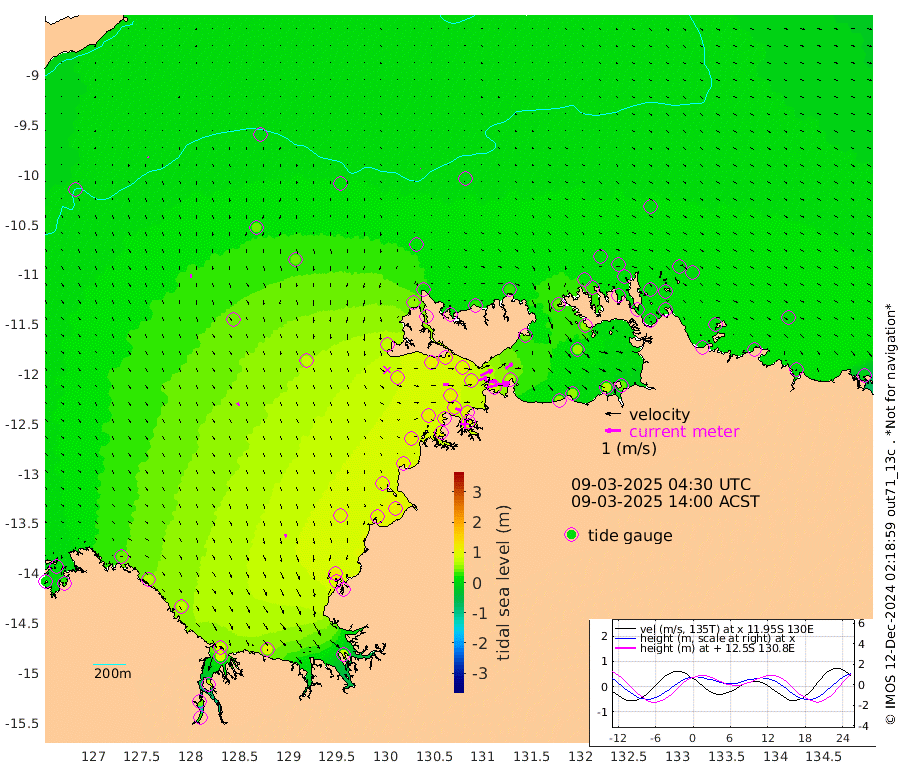 141cm/s 78T +4cm/s rms + 6cm/s 51T. Darwin_C1 52m 89cm/s 91T +4cm/s rms + 7cm/s -161T. Darwin_CW1 22m 56cm/s 73T +4cm/s rms + 8cm/s 61T. Darwin_CW2 34m 57cm/s 53T +3cm/s rms + 9cm/s 98T. Darwin_CW3 22m 72cm/s 89T +5cm/s rms + 7cm/s 88T. Darwin_C3 56m 85cm/s 65T +2cm/s rms + 9cm/s -126T. Darwin_CTbW 22m 2cm/s 159T +9cm/s rms + 2cm/s -110T. NWSLYN 196m 32cm/s 87T +1cm/s rms + 1cm/s -47T. DARBGF 30m 4cm/s 170T +7cm/s rms + 2cm/s -137T. ITFTIS 464m 18cm/s -179T +9cm/s rms + 1cm/s 74T. ITFMHB 146m 19cm/s 162T +4cm/s rms + 1cm/s -134T. ITFJBG 61m 19cm/s 149T +6cm/s rms + 4cm/s 121T. ITFFTB 108m 27cm/s 114T +4cm/s rms + 3cm/s 80T. NRSDAR 19m 20cm Carronade Island 19cm Guy Point 24cm Napier Broome Bay 42cm Lesueur Island 73cm Reveley Island 65cm Rocky Island 87cm Cape Domett 89cm Lacrosse Island 63cm Adolphus Island 38cm Pender Point 28cm Wyndham 39cm The Boxers 38cm Unnamed Shoal 7cm Loxton Shoal 94cm Pelican Island 35cm Calder Shoal 16cm Evans Shoal 72cm Quoin Island 101cm Port Keats 97cm Jones Point 122cm Catfish Island 100cm Cape Scott Offshore 99cm Cape Ford 105cm Anson Bay 15cm Goodrich Bank 99cm Peron Island North 105cm Point Jenny 103cm Native Point 108cm Fish Reef 106cm Tapa Bay 75cm Point Fawcett (Offshore) 105cm Burge Point 104cm Munkunuwa 94cm Beagle A 97cm Parsons Bank 103cm Fenton Patches 5cm Lynedoch Bank 93cm Hancox Shoal Area 107cm Nightcliff 99cm Darwin 93cm Charles Point Patches 73cm Glyde Point 53cm Chambers Bay 53cm Point Stuart 62cm Cape Hotham 53cm Christine Reef 58cm West Alligator Head 44cm East Field Island 54cm Two Hills Bay 72cm Newby Shoal 39cm Camp Point 102cm Medina Inlet South 52cm South Barlow Point 46cm St. Asaph Bay 19cm Cape Van Dieman 17cm Snake Bay 24cm Cache Point 1cm Echo Shoal 26cm Point Jahleel (Off) 39cm Cape Don 19cm Port Essington 24cm Smith Point - West 16cm NW Peacock Island 16cm North Of Jones Shoal 5cm Peacock Island 7cm Point David 18cm D'urville Point 2cm Money Shoal 6cm Copeland Island 15cm Cape Cockburn 11cm One Tree Point 10cm Hogmany Shoal 8cm New Year Island - West 9cm Grant Island 10cm Aurari Bay 11cm Cuthbert Point 11cm North Goulburn Island 8cm Paxie Shoal 3cm Entrance Island -7cm Yabooma Island