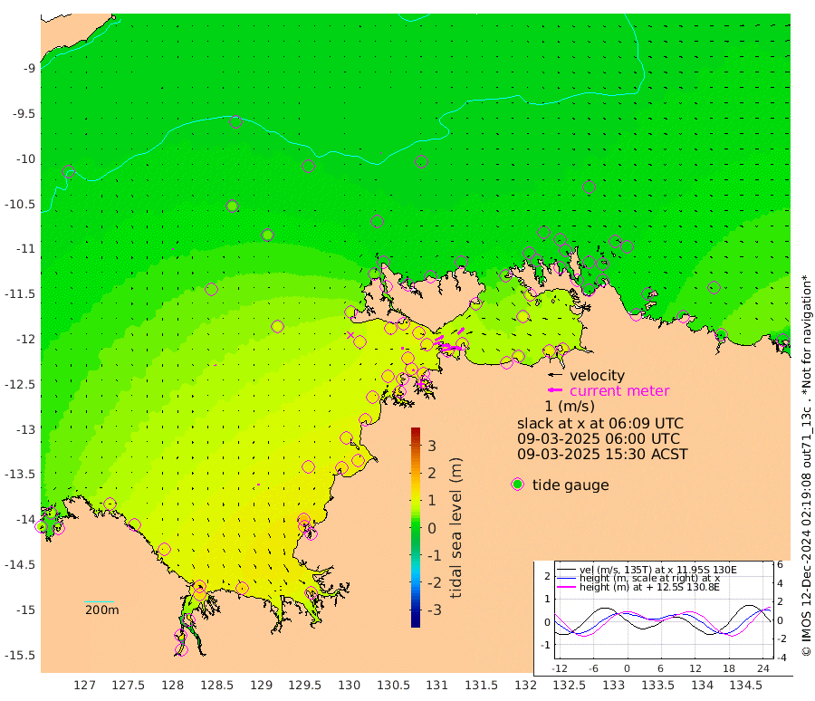113cm/s 78T +4cm/s rms + 6cm/s 51T. Darwin_C1 52m 92cm/s 92T +4cm/s rms + 7cm/s -161T. Darwin_CW1 22m 47cm/s 73T +4cm/s rms + 8cm/s 61T. Darwin_CW2 34m 60cm/s 45T +3cm/s rms + 9cm/s 98T. Darwin_CW3 22m 69cm/s 90T +5cm/s rms + 7cm/s 88T. Darwin_C3 56m 65cm/s 66T +2cm/s rms + 9cm/s -126T. Darwin_CTbW 22m 2cm/s 61T +9cm/s rms + 2cm/s -110T. NWSLYN 196m 18cm/s 80T +1cm/s rms + 1cm/s -47T. DARBGF 30m 0cm/s -7T +7cm/s rms + 2cm/s -137T. ITFTIS 464m 9cm/s -178T +9cm/s rms + 1cm/s 74T. ITFMHB 146m 8cm/s 177T +4cm/s rms + 1cm/s -134T. ITFJBG 61m 6cm/s 156T +6cm/s rms + 4cm/s 121T. ITFFTB 108m 15cm/s 111T +4cm/s rms + 3cm/s 80T. NRSDAR 19m 58cm Carronade Island 59cm Guy Point 63cm Napier Broome Bay 84cm Lesueur Island 110cm Reveley Island 69cm Rocky Island 146cm Cape Domett 144cm Lacrosse Island 132cm Adolphus Island 128cm Pender Point 125cm Wyndham 45cm The Boxers 38cm Unnamed Shoal 6cm Loxton Shoal 143cm Pelican Island 35cm Calder Shoal 9cm Evans Shoal 148cm Quoin Island 141cm Port Keats 136cm Jones Point 175cm Catfish Island 111cm Cape Scott Offshore 133cm Cape Ford 115cm Anson Bay 8cm Goodrich Bank 103cm Peron Island North 116cm Point Jenny 113cm Native Point 116cm Fish Reef 119cm Tapa Bay 69cm Point Fawcett (Offshore) 128cm Burge Point 105cm Munkunuwa 105cm Beagle A 107cm Parsons Bank 125cm Fenton Patches 0cm Lynedoch Bank 110cm Hancox Shoal Area 125cm Nightcliff 119cm Darwin 110cm Charles Point Patches 101cm Glyde Point 97cm Chambers Bay 97cm Point Stuart 91cm Cape Hotham 94cm Christine Reef 107cm West Alligator Head 106cm East Field Island 81cm Two Hills Bay 85cm Newby Shoal 79cm Camp Point 110cm Medina Inlet South 42cm South Barlow Point 37cm St. Asaph Bay 10cm Cape Van Dieman 6cm Snake Bay 17cm Cache Point 4cm Echo Shoal 22cm Point Jahleel (Off) 43cm Cape Don 12cm Port Essington 14cm Smith Point - West 7cm NW Peacock Island 6cm North Of Jones Shoal 2cm Peacock Island 2cm Point David 8cm D'urville Point 0cm Money Shoal 2cm Copeland Island 9cm Cape Cockburn 5cm One Tree Point 9cm Hogmany Shoal 7cm New Year Island - West 7cm Grant Island 10cm Aurari Bay 16cm Cuthbert Point 12cm North Goulburn Island 23cm Paxie Shoal 21cm Entrance Island 20cm Yabooma Island