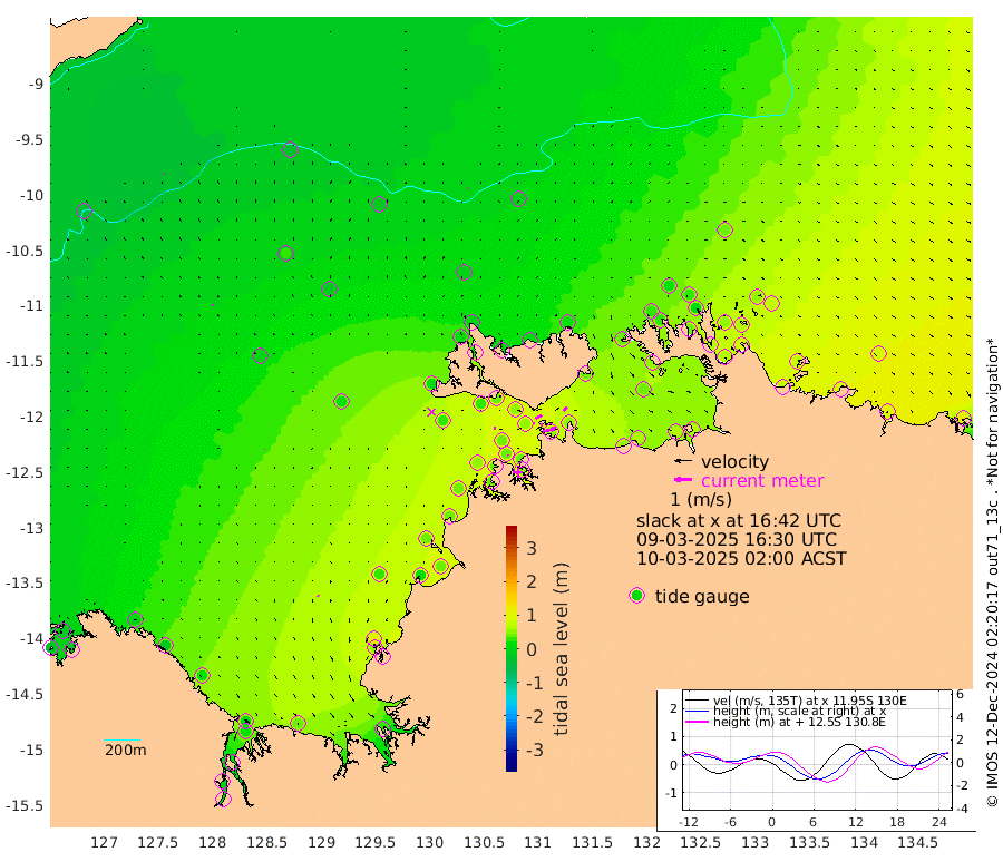 64cm/s 78T +4cm/s rms + 6cm/s 51T. Darwin_C1 52m 23cm/s 81T +4cm/s rms + 7cm/s -161T. Darwin_CW1 22m 9cm/s 78T +4cm/s rms + 8cm/s 61T. Darwin_CW2 34m 29cm/s 47T +3cm/s rms + 9cm/s 98T. Darwin_CW3 22m 7cm/s 96T +5cm/s rms + 7cm/s 88T. Darwin_C3 56m 40cm/s 63T +2cm/s rms + 9cm/s -126T. Darwin_CTbW 22m 2cm/s 149T +9cm/s rms + 2cm/s -110T. NWSLYN 196m 7cm/s 92T +1cm/s rms + 1cm/s -47T. DARBGF 30m 4cm/s -54T +7cm/s rms + 2cm/s -137T. ITFTIS 464m 5cm/s -14T +9cm/s rms + 1cm/s 74T. ITFMHB 146m 7cm/s 153T +4cm/s rms + 1cm/s -134T. ITFJBG 61m 2cm/s 162T +6cm/s rms + 4cm/s 121T. ITFFTB 108m 5cm/s 106T +4cm/s rms + 3cm/s 80T. NRSDAR 19m -22cm Carronade Island -31cm Guy Point -24cm Napier Broome Bay -2cm Lesueur Island 12cm Reveley Island -15cm Rocky Island 19cm Cape Domett 20cm Lacrosse Island 15cm Adolphus Island -8cm Pender Point -3cm Wyndham -1cm The Boxers 24cm Unnamed Shoal -32cm Loxton Shoal 36cm Pelican Island -14cm Calder Shoal -16cm Evans Shoal 24cm Quoin Island 33cm Port Keats 46cm Jones Point 111cm Catfish Island 33cm Cape Scott Offshore 13cm Cape Ford 44cm Anson Bay -4cm Goodrich Bank 43cm Peron Island North 38cm Point Jenny 34cm Native Point 46cm Fish Reef 39cm Tapa Bay 21cm Point Fawcett (Offshore) 41cm Burge Point 28cm Munkunuwa 30cm Beagle A 50cm Parsons Bank 40cm Fenton Patches -6cm Lynedoch Bank 47cm Hancox Shoal Area 42cm Nightcliff 50cm Darwin 44cm Charles Point Patches 50cm Glyde Point 50cm Chambers Bay 59cm Point Stuart 53cm Cape Hotham 42cm Christine Reef 60cm West Alligator Head 56cm East Field Island 55cm Two Hills Bay 16cm Newby Shoal 40cm Camp Point 37cm Medina Inlet South 12cm South Barlow Point 2cm St. Asaph Bay 0cm Cape Van Dieman 4cm Snake Bay 7cm Cache Point -35cm Echo Shoal 13cm Point Jahleel (Off) 39cm Cape Don 30cm Port Essington 30cm Smith Point - West 33cm NW Peacock Island 21cm North Of Jones Shoal 10cm Peacock Island 57cm Point David 39cm D'urville Point 35cm Money Shoal 60cm Copeland Island 79cm Cape Cockburn 54cm One Tree Point 74cm Hogmany Shoal 55cm New Year Island - West 58cm Grant Island 75cm Aurari Bay 90cm Cuthbert Point 73cm North Goulburn Island 87cm Paxie Shoal 98cm Entrance Island 116cm Yabooma Island