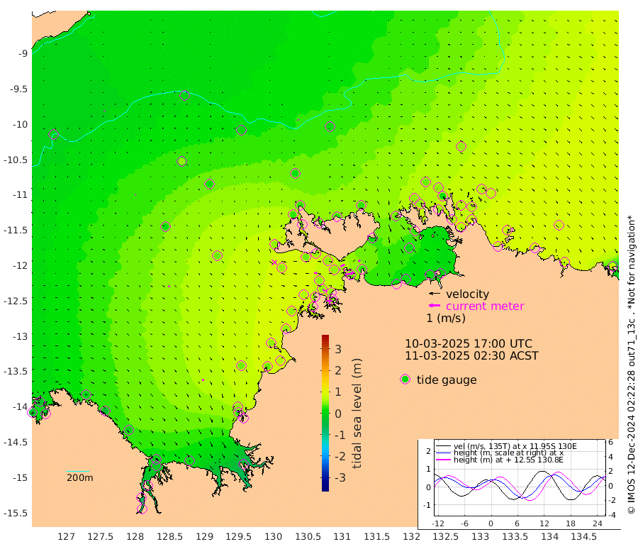 64cm/s 78T +4cm/s rms + 6cm/s 51T. Darwin_C1 52m 27cm/s 80T +4cm/s rms + 7cm/s -161T. Darwin_CW1 22m 11cm/s 81T +4cm/s rms + 8cm/s 61T. Darwin_CW2 34m 21cm/s 53T +3cm/s rms + 9cm/s 98T. Darwin_CW3 22m 6cm/s 90T +5cm/s rms + 7cm/s 88T. Darwin_C3 56m 41cm/s 63T +2cm/s rms + 9cm/s -126T. Darwin_CTbW 22m 6cm/s 147T +9cm/s rms + 2cm/s -110T. NWSLYN 196m 25cm/s 94T +1cm/s rms + 1cm/s -47T. DARBGF 30m 3cm/s 4T +7cm/s rms + 2cm/s -137T. ITFTIS 464m 3cm/s 72T +9cm/s rms + 1cm/s 74T. ITFMHB 146m 18cm/s 145T +4cm/s rms + 1cm/s -134T. ITFJBG 61m 15cm/s 127T +6cm/s rms + 4cm/s 121T. ITFFTB 108m 24cm/s 122T +4cm/s rms + 3cm/s 80T. NRSDAR 19m -24cm Carronade Island -31cm Guy Point -25cm Napier Broome Bay -7cm Lesueur Island -5cm Reveley Island -32cm Rocky Island -17cm Cape Domett -8cm Lacrosse Island -40cm Adolphus Island -76cm Pender Point -79cm Wyndham 20cm The Boxers 46cm Unnamed Shoal -7cm Loxton Shoal 3cm Pelican Island 14cm Calder Shoal 9cm Evans Shoal -45cm Quoin Island 20cm Port Keats 29cm Jones Point 45cm Catfish Island 44cm Cape Scott Offshore 36cm Cape Ford 57cm Anson Bay 21cm Goodrich Bank 56cm Peron Island North 54cm Point Jenny 51cm Native Point 60cm Fish Reef 52cm Tapa Bay 51cm Point Fawcett (Offshore) 48cm Burge Point 44cm Munkunuwa 48cm Beagle A 55cm Parsons Bank 47cm Fenton Patches 16cm Lynedoch Bank 48cm Hancox Shoal Area 49cm Nightcliff 51cm Darwin 54cm Charles Point Patches 35cm Glyde Point 17cm Chambers Bay 17cm Point Stuart 33cm Cape Hotham 10cm Christine Reef 12cm West Alligator Head -2cm East Field Island 29cm Two Hills Bay 34cm Newby Shoal 17cm Camp Point 51cm Medina Inlet South 41cm South Barlow Point 33cm St. Asaph Bay 27cm Cape Van Dieman 30cm Snake Bay 32cm Cache Point -11cm Echo Shoal 31cm Point Jahleel (Off) 44cm Cape Don 46cm Port Essington 46cm Smith Point - West 47cm NW Peacock Island 41cm North Of Jones Shoal 17cm Peacock Island 62cm Point David 53cm D'urville Point 48cm Money Shoal 63cm Copeland Island 84cm Cape Cockburn 61cm One Tree Point 75cm Hogmany Shoal 60cm New Year Island - West 61cm Grant Island 72cm Aurari Bay 76cm Cuthbert Point 71cm North Goulburn Island 72cm Paxie Shoal 72cm Entrance Island 80cm Yabooma Island