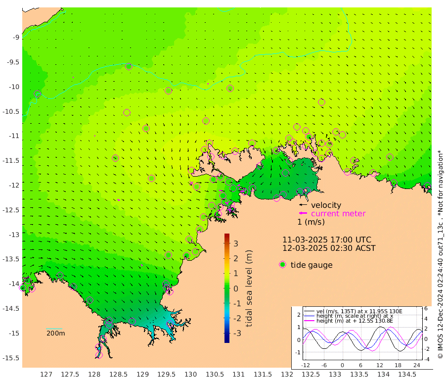 39cm/s 79T +4cm/s rms + 6cm/s 51T. Darwin_C1 52m 13cm/s 65T +4cm/s rms + 7cm/s -161T. Darwin_CW1 22m 2cm/s 127T +4cm/s rms + 8cm/s 61T. Darwin_CW2 34m 7cm/s 174T +3cm/s rms + 9cm/s 98T. Darwin_CW3 22m 12cm/s -88T +5cm/s rms + 7cm/s 88T. Darwin_C3 56m 33cm/s 62T +2cm/s rms + 9cm/s -126T. Darwin_CTbW 22m 10cm/s 149T +9cm/s rms + 2cm/s -110T. NWSLYN 196m 38cm/s 96T +1cm/s rms + 1cm/s -47T. DARBGF 30m 6cm/s 45T +7cm/s rms + 2cm/s -137T. ITFTIS 464m 8cm/s 115T +9cm/s rms + 1cm/s 74T. ITFMHB 146m 27cm/s 137T +4cm/s rms + 1cm/s -134T. ITFJBG 61m 29cm/s 123T +6cm/s rms + 4cm/s 121T. ITFFTB 108m 39cm/s 126T +4cm/s rms + 3cm/s 80T. NRSDAR 19m -9cm Carronade Island -15cm Guy Point -9cm Napier Broome Bay -13cm Lesueur Island -42cm Reveley Island -54cm Rocky Island -84cm Cape Domett -65cm Lacrosse Island -122cm Adolphus Island -157cm Pender Point -165cm Wyndham 42cm The Boxers 65cm Unnamed Shoal 32cm Loxton Shoal -66cm Pelican Island 45cm Calder Shoal 43cm Evans Shoal -146cm Quoin Island -32cm Port Keats -27cm Jones Point -56cm Catfish Island 27cm Cape Scott Offshore 17cm Cape Ford 38cm Anson Bay 51cm Goodrich Bank 38cm Peron Island North 40cm Point Jenny 38cm Native Point 38cm Fish Reef 33cm Tapa Bay 66cm Point Fawcett (Offshore) 17cm Burge Point 29cm Munkunuwa 40cm Beagle A 23cm Parsons Bank 17cm Fenton Patches 44cm Lynedoch Bank 15cm Hancox Shoal Area 20cm Nightcliff 14cm Darwin 29cm Charles Point Patches -8cm Glyde Point -40cm Chambers Bay -48cm Point Stuart -13cm Cape Hotham -41cm Christine Reef -62cm West Alligator Head -83cm East Field Island -17cm Two Hills Bay 40cm Newby Shoal -25cm Camp Point 32cm Medina Inlet South 59cm South Barlow Point 59cm St. Asaph Bay 57cm Cape Van Dieman 59cm Snake Bay 57cm Cache Point 29cm Echo Shoal 47cm Point Jahleel (Off) 37cm Cape Don 56cm Port Essington 57cm Smith Point - West 57cm NW Peacock Island 62cm North Of Jones Shoal 23cm Peacock Island 59cm Point David 61cm D'urville Point 58cm Money Shoal 57cm Copeland Island 75cm Cape Cockburn 60cm One Tree Point 65cm Hogmany Shoal 57cm New Year Island - West 56cm Grant Island 54cm Aurari Bay 46cm Cuthbert Point 55cm North Goulburn Island 41cm Paxie Shoal 26cm Entrance Island 18cm Yabooma Island