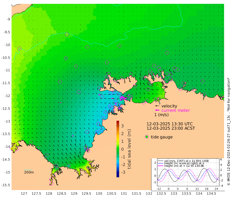 134cm/s -102T +4cm/s rms + 6cm/s 51T. Darwin_C1 52m 100cm/s -89T +4cm/s rms + 7cm/s -161T. Darwin_CW1 22m 75cm/s -107T +4cm/s rms + 8cm/s 61T. Darwin_CW2 34m 50cm/s -132T +3cm/s rms + 9cm/s 98T. Darwin_CW3 22m 89cm/s -91T +5cm/s rms + 7cm/s 88T. Darwin_C3 56m 77cm/s -115T +2cm/s rms + 9cm/s -126T. Darwin_CTbW 22m 3cm/s 142T +9cm/s rms + 2cm/s -110T. NWSLYN 196m 57cm/s -90T +1cm/s rms + 1cm/s -47T. DARBGF 30m 2cm/s 5T +7cm/s rms + 2cm/s -137T. ITFTIS 464m 12cm/s 2T +9cm/s rms + 1cm/s 74T. ITFMHB 146m 38cm/s -21T +4cm/s rms + 1cm/s -134T. ITFJBG 61m 27cm/s -35T +6cm/s rms + 4cm/s 121T. ITFFTB 108m 54cm/s -61T +4cm/s rms + 3cm/s 80T. NRSDAR 19m 99cm Carronade Island 109cm Guy Point 110cm Napier Broome Bay 22cm Lesueur Island -43cm Reveley Island -22cm Rocky Island -64cm Cape Domett -64cm Lacrosse Island -35cm Adolphus Island 65cm Pender Point 96cm Wyndham -14cm The Boxers -35cm Unnamed Shoal 40cm Loxton Shoal -99cm Pelican Island -10cm Calder Shoal 13cm Evans Shoal -28cm Quoin Island -137cm Port Keats -138cm Jones Point -28cm Catfish Island -125cm Cape Scott Offshore -174cm Cape Ford -149cm Anson Bay -8cm Goodrich Bank -139cm Peron Island North -145cm Point Jenny -143cm Native Point -162cm Fish Reef -155cm Tapa Bay -91cm Point Fawcett (Offshore) -164cm Burge Point -157cm Munkunuwa -139cm Beagle A -157cm Parsons Bank -166cm Fenton Patches 9cm Lynedoch Bank -144cm Hancox Shoal Area -162cm Nightcliff -163cm Darwin -154cm Charles Point Patches -95cm Glyde Point -34cm Chambers Bay -24cm Point Stuart -70cm Cape Hotham -28cm Christine Reef -20cm West Alligator Head 7cm East Field Island -38cm Two Hills Bay -77cm Newby Shoal -33cm Camp Point -155cm Medina Inlet South -77cm South Barlow Point -54cm St. Asaph Bay -15cm Cape Van Dieman -16cm Snake Bay -16cm Cache Point 55cm Echo Shoal -23cm Point Jahleel (Off) -42cm Cape Don -28cm Port Essington -32cm Smith Point - West -24cm NW Peacock Island -15cm North Of Jones Shoal -7cm Peacock Island -25cm Point David -32cm D'urville Point -13cm Money Shoal -28cm Copeland Island -40cm Cape Cockburn -26cm One Tree Point -22cm Hogmany Shoal -23cm New Year Island - West -24cm Grant Island -39cm Aurari Bay -35cm Cuthbert Point -34cm North Goulburn Island -23cm Paxie Shoal -32cm Entrance Island -31cm Yabooma Island