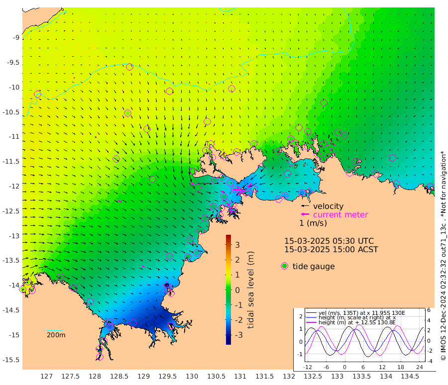 73cm/s -101T +4cm/s rms + 6cm/s 51T. Darwin_C1 52m 71cm/s -92T +4cm/s rms + 7cm/s -161T. Darwin_CW1 22m 47cm/s -106T +4cm/s rms + 8cm/s 61T. Darwin_CW2 34m 70cm/s -137T +3cm/s rms + 9cm/s 98T. Darwin_CW3 22m 110cm/s -90T +5cm/s rms + 7cm/s 88T. Darwin_C3 56m 18cm/s -115T +2cm/s rms + 9cm/s -126T. Darwin_CTbW 22m 6cm/s 166T +9cm/s rms + 2cm/s -110T. NWSLYN 196m 40cm/s 104T +1cm/s rms + 1cm/s -47T. DARBGF 30m 12cm/s 89T +7cm/s rms + 2cm/s -137T. ITFTIS 464m 19cm/s 133T +9cm/s rms + 1cm/s 74T. ITFMHB 146m 34cm/s 124T +4cm/s rms + 1cm/s -134T. ITFJBG 61m 46cm/s 120T +6cm/s rms + 4cm/s 121T. ITFFTB 108m 49cm/s 134T +4cm/s rms + 3cm/s 80T. NRSDAR 19m 55cm Carronade Island 49cm Guy Point 54cm Napier Broome Bay -27cm Lesueur Island -140cm Reveley Island -49cm Rocky Island -235cm Cape Domett -202cm Lacrosse Island -272cm Adolphus Island -287cm Pender Point -287cm Wyndham 55cm The Boxers 45cm Unnamed Shoal 95cm Loxton Shoal -248cm Pelican Island 76cm Calder Shoal 82cm Evans Shoal -369cm Quoin Island -181cm Port Keats -196cm Jones Point -335cm Catfish Island -91cm Cape Scott Offshore -53cm Cape Ford -100cm Anson Bay 76cm Goodrich Bank -79cm Peron Island North -53cm Point Jenny -50cm Native Point -73cm Fish Reef -85cm Tapa Bay 25cm Point Fawcett (Offshore) -101cm Burge Point -75cm Munkunuwa -16cm Beagle A -114cm Parsons Bank -84cm Fenton Patches 71cm Lynedoch Bank -123cm Hancox Shoal Area -108cm Nightcliff -143cm Darwin -108cm Charles Point Patches -136cm Glyde Point -169cm Chambers Bay -186cm Point Stuart -139cm Cape Hotham -141cm Christine Reef -208cm West Alligator Head -222cm East Field Island -134cm Two Hills Bay 32cm Newby Shoal -126cm Camp Point -86cm Medina Inlet South 40cm South Barlow Point 60cm St. Asaph Bay 78cm Cape Van Dieman 70cm Snake Bay 69cm Cache Point 103cm Echo Shoal 40cm Point Jahleel (Off) -24cm Cape Don 25cm Port Essington 34cm Smith Point - West 30cm NW Peacock Island 48cm North Of Jones Shoal 14cm Peacock Island -12cm Point David 28cm D'urville Point 25cm Money Shoal -18cm Copeland Island -20cm Cape Cockburn -7cm One Tree Point -35cm Hogmany Shoal -7cm New Year Island - West -16cm Grant Island -44cm Aurari Bay -75cm Cuthbert Point -44cm North Goulburn Island -103cm Paxie Shoal -125cm Entrance Island -172cm Yabooma Island