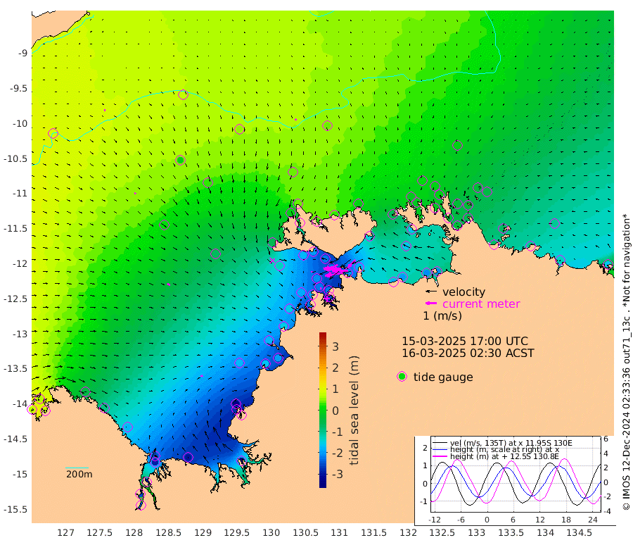 166cm/s -101T +4cm/s rms + 6cm/s 51T. Darwin_C1 52m 149cm/s -92T +4cm/s rms + 7cm/s -161T. Darwin_CW1 22m 89cm/s -106T +4cm/s rms + 8cm/s 61T. Darwin_CW2 34m 96cm/s -136T +3cm/s rms + 9cm/s 98T. Darwin_CW3 22m 164cm/s -91T +5cm/s rms + 7cm/s 88T. Darwin_C3 56m 82cm/s -116T +2cm/s rms + 9cm/s -126T. Darwin_CTbW 22m 12cm/s 168T +9cm/s rms + 2cm/s -110T. NWSLYN 196m 9cm/s 176T +1cm/s rms + 1cm/s -47T. DARBGF 30m 10cm/s 85T +7cm/s rms + 2cm/s -137T. ITFTIS 464m 13cm/s 114T +9cm/s rms + 1cm/s 74T. ITFMHB 146m 18cm/s 85T +4cm/s rms + 1cm/s -134T. ITFJBG 61m 29cm/s 111T +6cm/s rms + 4cm/s 121T. ITFFTB 108m 16cm/s 163T +4cm/s rms + 3cm/s 80T. NRSDAR 19m 66cm Carronade Island 69cm Guy Point 69cm Napier Broome Bay -56cm Lesueur Island -174cm Reveley Island -93cm Rocky Island -287cm Cape Domett -255cm Lacrosse Island -318cm Adolphus Island -256cm Pender Point -247cm Wyndham 8cm The Boxers -3cm Unnamed Shoal 70cm Loxton Shoal -304cm Pelican Island 25cm Calder Shoal 51cm Evans Shoal -397cm Quoin Island -278cm Port Keats -270cm Jones Point -334cm Catfish Island -178cm Cape Scott Offshore -161cm Cape Ford -199cm Anson Bay 37cm Goodrich Bank -180cm Peron Island North -155cm Point Jenny -151cm Native Point -185cm Fish Reef -186cm Tapa Bay -57cm Point Fawcett (Offshore) -217cm Burge Point -176cm Munkunuwa -129cm Beagle A -218cm Parsons Bank -204cm Fenton Patches 39cm Lynedoch Bank -216cm Hancox Shoal Area -224cm Nightcliff -252cm Darwin -214cm Charles Point Patches -200cm Glyde Point -187cm Chambers Bay -194cm Point Stuart -185cm Cape Hotham -166cm Christine Reef -212cm West Alligator Head -211cm East Field Island -162cm Two Hills Bay -71cm Newby Shoal -152cm Camp Point -194cm Medina Inlet South -40cm South Barlow Point -6cm St. Asaph Bay 36cm Cape Van Dieman 24cm Snake Bay 25cm Cache Point 89cm Echo Shoal -3cm Point Jahleel (Off) -69cm Cape Don -15cm Port Essington -13cm Smith Point - West -11cm NW Peacock Island 5cm North Of Jones Shoal -1cm Peacock Island -38cm Point David -17cm D'urville Point -7cm Money Shoal -43cm Copeland Island -65cm Cape Cockburn -40cm One Tree Point -50cm Hogmany Shoal -39cm New Year Island - West -45cm Grant Island -74cm Aurari Bay -96cm Cuthbert Point -72cm North Goulburn Island -106cm Paxie Shoal -129cm Entrance Island -164cm Yabooma Island