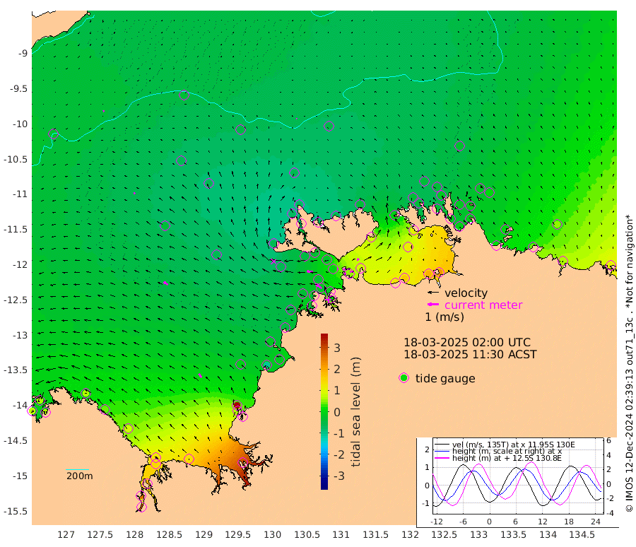 8cm/s 96T +4cm/s rms + 6cm/s 51T. Darwin_C1 52m 29cm/s 86T +4cm/s rms + 7cm/s -161T. Darwin_CW1 22m 10cm/s -110T +4cm/s rms + 8cm/s 61T. Darwin_CW2 34m 23cm/s 36T +3cm/s rms + 9cm/s 98T. Darwin_CW3 22m 22cm/s 97T +5cm/s rms + 7cm/s 88T. Darwin_C3 56m 2cm/s -161T +2cm/s rms + 9cm/s -126T. Darwin_CTbW 22m 7cm/s -22T +9cm/s rms + 2cm/s -110T. NWSLYN 196m 58cm/s -85T +1cm/s rms + 1cm/s -47T. DARBGF 30m 10cm/s -118T +7cm/s rms + 2cm/s -137T. ITFTIS 464m 13cm/s -57T +9cm/s rms + 1cm/s 74T. ITFMHB 146m 41cm/s -35T +4cm/s rms + 1cm/s -134T. ITFJBG 61m 43cm/s -56T +6cm/s rms + 4cm/s 121T. ITFFTB 108m 70cm/s -55T +4cm/s rms + 3cm/s 80T. NRSDAR 19m 62cm Carronade Island 68cm Guy Point 62cm Napier Broome Bay 67cm Lesueur Island 86cm Reveley Island 35cm Rocky Island 144cm Cape Domett 133cm Lacrosse Island 199cm Adolphus Island 261cm Pender Point 301cm Wyndham -44cm The Boxers -59cm Unnamed Shoal -45cm Loxton Shoal 132cm Pelican Island -59cm Calder Shoal -48cm Evans Shoal 287cm Quoin Island 52cm Port Keats 57cm Jones Point 361cm Catfish Island -2cm Cape Scott Offshore -102cm Cape Ford -17cm Anson Bay -66cm Goodrich Bank -19cm Peron Island North -50cm Point Jenny -54cm Native Point -38cm Fish Reef -39cm Tapa Bay -66cm Point Fawcett (Offshore) -35cm Burge Point -56cm Munkunuwa -64cm Beagle A -25cm Parsons Bank -37cm Fenton Patches -51cm Lynedoch Bank -4cm Hancox Shoal Area -18cm Nightcliff -7cm Darwin -27cm Charles Point Patches 52cm Glyde Point 134cm Chambers Bay 162cm Point Stuart 82cm Cape Hotham 116cm Christine Reef 188cm West Alligator Head 222cm East Field Island 106cm Two Hills Bay -58cm Newby Shoal 86cm Camp Point -39cm Medina Inlet South -83cm South Barlow Point -77cm St. Asaph Bay -72cm Cape Van Dieman -71cm Snake Bay -57cm Cache Point -28cm Echo Shoal -39cm Point Jahleel (Off) -2cm Cape Don -38cm Port Essington -40cm Smith Point - West -36cm NW Peacock Island -39cm North Of Jones Shoal -13cm Peacock Island -14cm Point David -39cm D'urville Point -32cm Money Shoal -9cm Copeland Island -8cm Cape Cockburn -13cm One Tree Point 7cm Hogmany Shoal -11cm New Year Island - West -9cm Grant Island 14cm Aurari Bay 36cm Cuthbert Point 10cm North Goulburn Island 55cm Paxie Shoal 67cm Entrance Island 108cm Yabooma Island
