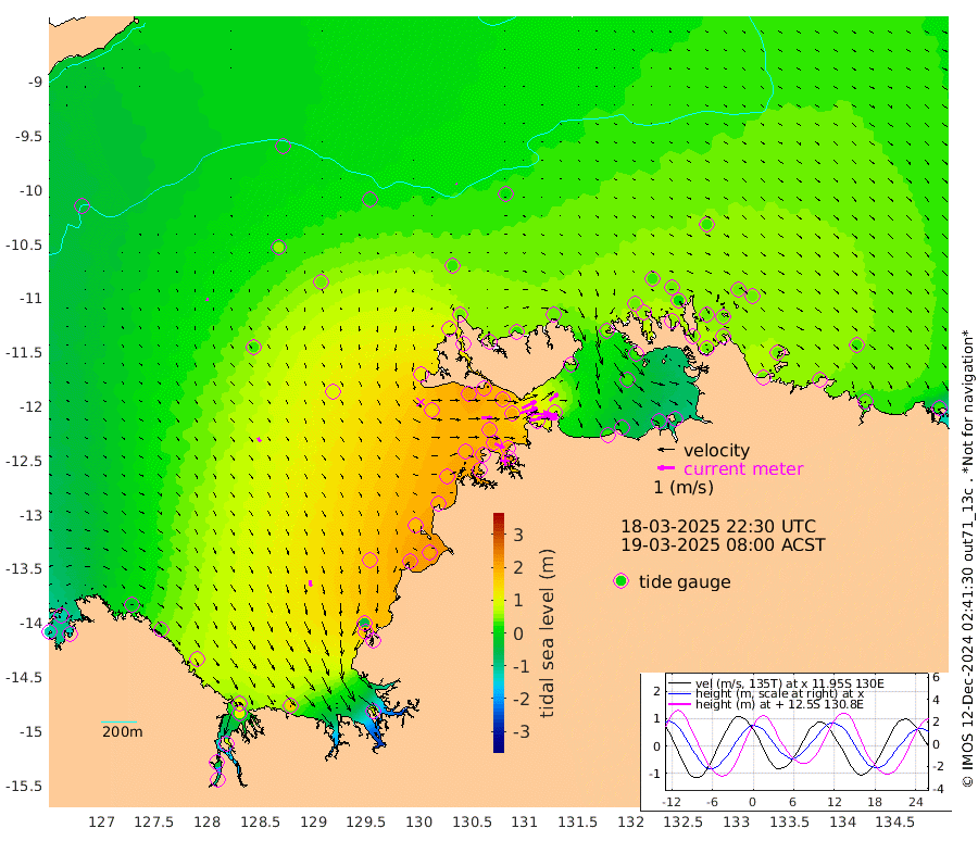 163cm/s 77T +4cm/s rms + 6cm/s 51T. Darwin_C1 52m 110cm/s 89T +4cm/s rms + 7cm/s -161T. Darwin_CW1 22m 105cm/s 74T +4cm/s rms + 8cm/s 61T. Darwin_CW2 34m 67cm/s 51T +3cm/s rms + 9cm/s 98T. Darwin_CW3 22m 140cm/s 88T +5cm/s rms + 7cm/s 88T. Darwin_C3 56m 93cm/s 64T +2cm/s rms + 9cm/s -126T. Darwin_CTbW 22m 4cm/s 133T +9cm/s rms + 2cm/s -110T. NWSLYN 196m 62cm/s 87T +1cm/s rms + 1cm/s -47T. DARBGF 30m 1cm/s -143T +7cm/s rms + 2cm/s -137T. ITFTIS 464m 15cm/s -174T +9cm/s rms + 1cm/s 74T. ITFMHB 146m 35cm/s 171T +4cm/s rms + 1cm/s -134T. ITFJBG 61m 25cm/s 151T +6cm/s rms + 4cm/s 121T. ITFFTB 108m 60cm/s 114T +4cm/s rms + 3cm/s 80T. NRSDAR 19m -118cm Carronade Island -113cm Guy Point -127cm Napier Broome Bay -18cm Lesueur Island 83cm Reveley Island 28cm Rocky Island 107cm Cape Domett 94cm Lacrosse Island 77cm Adolphus Island -32cm Pender Point -82cm Wyndham 33cm The Boxers 49cm Unnamed Shoal -11cm Loxton Shoal 149cm Pelican Island 35cm Calder Shoal 9cm Evans Shoal 73cm Quoin Island 184cm Port Keats 170cm Jones Point -47cm Catfish Island 170cm Cape Scott Offshore 215cm Cape Ford 199cm Anson Bay 34cm Goodrich Bank 172cm Peron Island North 182cm Point Jenny 185cm Native Point 182cm Fish Reef 207cm Tapa Bay 116cm Point Fawcett (Offshore) 200cm Burge Point 208cm Munkunuwa 157cm Beagle A 206cm Parsons Bank 194cm Fenton Patches 13cm Lynedoch Bank 197cm Hancox Shoal Area 211cm Nightcliff 214cm Darwin 207cm Charles Point Patches 110cm Glyde Point 26cm Chambers Bay -4cm Point Stuart 68cm Cape Hotham 27cm Christine Reef -12cm West Alligator Head -53cm East Field Island 27cm Two Hills Bay 90cm Newby Shoal 35cm Camp Point 200cm Medina Inlet South 111cm South Barlow Point 84cm St. Asaph Bay 40cm Cape Van Dieman 46cm Snake Bay 33cm Cache Point -42cm Echo Shoal 40cm Point Jahleel (Off) 53cm Cape Don 44cm Port Essington 49cm Smith Point - West 40cm NW Peacock Island 31cm North Of Jones Shoal 11cm Peacock Island 42cm Point David 48cm D'urville Point 27cm Money Shoal 42cm Copeland Island 46cm Cape Cockburn 38cm One Tree Point 45cm Hogmany Shoal 35cm New Year Island - West 40cm Grant Island 38cm Aurari Bay 36cm Cuthbert Point 41cm North Goulburn Island 32cm Paxie Shoal 34cm Entrance Island 23cm Yabooma Island