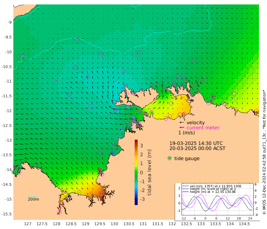 24cm/s -106T +4cm/s rms + 6cm/s 51T. Darwin_C1 52m 8cm/s -71T +4cm/s rms + 7cm/s -161T. Darwin_CW1 22m 25cm/s -103T +4cm/s rms + 8cm/s 61T. Darwin_CW2 34m 12cm/s 33T +3cm/s rms + 9cm/s 98T. Darwin_CW3 22m 12cm/s -105T +5cm/s rms + 7cm/s 88T. Darwin_C3 56m 16cm/s -117T +2cm/s rms + 9cm/s -126T. Darwin_CTbW 22m 11cm/s -38T +9cm/s rms + 2cm/s -110T. NWSLYN 196m 69cm/s -87T +1cm/s rms + 1cm/s -47T. DARBGF 30m 11cm/s -113T +7cm/s rms + 2cm/s -137T. ITFTIS 464m 20cm/s -36T +9cm/s rms + 1cm/s 74T. ITFMHB 146m 41cm/s -33T +4cm/s rms + 1cm/s -134T. ITFJBG 61m 48cm/s -55T +6cm/s rms + 4cm/s 121T. ITFFTB 108m 79cm/s -55T +4cm/s rms + 3cm/s 80T. NRSDAR 19m 4cm Carronade Island 2cm Guy Point 11cm Napier Broome Bay -9cm Lesueur Island 14cm Reveley Island 17cm Rocky Island 69cm Cape Domett 52cm Lacrosse Island 132cm Adolphus Island 200cm Pender Point 240cm Wyndham -93cm The Boxers -96cm Unnamed Shoal -91cm Loxton Shoal 57cm Pelican Island -112cm Calder Shoal -92cm Evans Shoal 214cm Quoin Island -17cm Port Keats -7cm Jones Point 301cm Catfish Island -70cm Cape Scott Offshore -218cm Cape Ford -80cm Anson Bay -104cm Goodrich Bank -86cm Peron Island North -112cm Point Jenny -116cm Native Point -99cm Fish Reef -107cm Tapa Bay -127cm Point Fawcett (Offshore) -95cm Burge Point -115cm Munkunuwa -123cm Beagle A -77cm Parsons Bank -97cm Fenton Patches -81cm Lynedoch Bank -62cm Hancox Shoal Area -78cm Nightcliff -67cm Darwin -93cm Charles Point Patches 7cm Glyde Point 98cm Chambers Bay 127cm Point Stuart 39cm Cape Hotham 79cm Christine Reef 149cm West Alligator Head 188cm East Field Island 70cm Two Hills Bay -113cm Newby Shoal 52cm Camp Point -99cm Medina Inlet South -127cm South Barlow Point -128cm St. Asaph Bay -110cm Cape Van Dieman -105cm Snake Bay -98cm Cache Point -75cm Echo Shoal -77cm Point Jahleel (Off) -31cm Cape Don -64cm Port Essington -69cm Smith Point - West -61cm NW Peacock Island -69cm North Of Jones Shoal -22cm Peacock Island -28cm Point David -62cm D'urville Point -48cm Money Shoal -21cm Copeland Island -23cm Cape Cockburn -27cm One Tree Point -22cm Hogmany Shoal -26cm New Year Island - West -24cm Grant Island 10cm Aurari Bay 36cm Cuthbert Point 2cm North Goulburn Island 53cm Paxie Shoal 72cm Entrance Island 122cm Yabooma Island