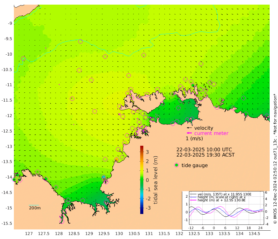 1cm/s 97T +4cm/s rms + 6cm/s 51T. Darwin_C1 52m 14cm/s 87T +4cm/s rms + 7cm/s -161T. Darwin_CW1 22m 19cm/s 77T +4cm/s rms + 8cm/s 61T. Darwin_CW2 34m 10cm/s -137T +3cm/s rms + 9cm/s 98T. Darwin_CW3 22m 30cm/s 88T +5cm/s rms + 7cm/s 88T. Darwin_C3 56m 3cm/s -107T +2cm/s rms + 9cm/s -126T. Darwin_CTbW 22m 6cm/s 111T +9cm/s rms + 2cm/s -110T. NWSLYN 196m 25cm/s 91T +1cm/s rms + 1cm/s -47T. DARBGF 30m 9cm/s 25T +7cm/s rms + 2cm/s -137T. ITFTIS 464m 8cm/s 44T +9cm/s rms + 1cm/s 74T. ITFMHB 146m 11cm/s 135T +4cm/s rms + 1cm/s -134T. ITFJBG 61m 12cm/s 95T +6cm/s rms + 4cm/s 121T. ITFFTB 108m 24cm/s 125T +4cm/s rms + 3cm/s 80T. NRSDAR 19m 9cm Carronade Island 9cm Guy Point 11cm Napier Broome Bay 39cm Lesueur Island 26cm Reveley Island 5cm Rocky Island 16cm Cape Domett 15cm Lacrosse Island -11cm Adolphus Island -37cm Pender Point -60cm Wyndham 71cm The Boxers 85cm Unnamed Shoal 66cm Loxton Shoal 17cm Pelican Island 77cm Calder Shoal 63cm Evans Shoal -46cm Quoin Island 49cm Port Keats 51cm Jones Point -133cm Catfish Island 58cm Cape Scott Offshore 175cm Cape Ford 64cm Anson Bay 74cm Goodrich Bank 75cm Peron Island North 74cm Point Jenny 78cm Native Point 76cm Fish Reef 79cm Tapa Bay 82cm Point Fawcett (Offshore) 82cm Burge Point 81cm Munkunuwa 79cm Beagle A 74cm Parsons Bank 75cm Fenton Patches 64cm Lynedoch Bank 61cm Hancox Shoal Area 59cm Nightcliff 78cm Darwin 89cm Charles Point Patches 34cm Glyde Point -23cm Chambers Bay -30cm Point Stuart 15cm Cape Hotham -19cm Christine Reef -42cm West Alligator Head -59cm East Field Island -3cm Two Hills Bay 83cm Newby Shoal 8cm Camp Point 81cm Medina Inlet South 87cm South Barlow Point 81cm St. Asaph Bay 77cm Cape Van Dieman 81cm Snake Bay 71cm Cache Point 49cm Echo Shoal 62cm Point Jahleel (Off) 44cm Cape Don 62cm Port Essington 58cm Smith Point - West 59cm NW Peacock Island 58cm North Of Jones Shoal 20cm Peacock Island 52cm Point David 58cm D'urville Point 57cm Money Shoal 46cm Copeland Island 59cm Cape Cockburn 50cm One Tree Point 60cm Hogmany Shoal 51cm New Year Island - West 52cm Grant Island 30cm Aurari Bay 23cm Cuthbert Point 39cm North Goulburn Island 18cm Paxie Shoal 9cm Entrance Island -18cm Yabooma Island