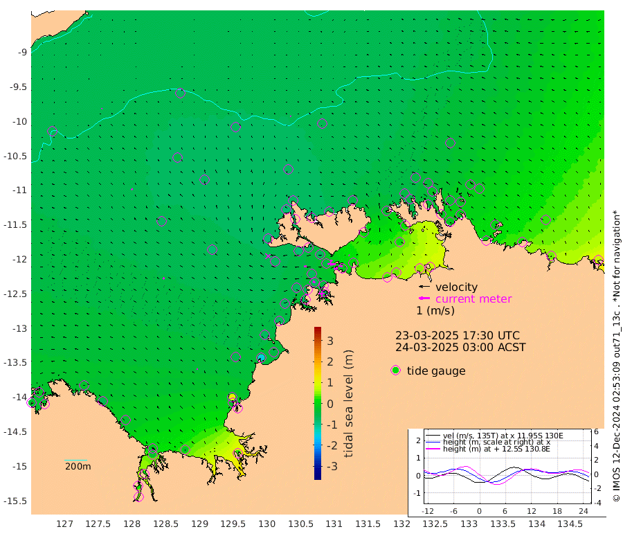 35cm/s -102T +4cm/s rms + 6cm/s 51T. Darwin_C1 52m 34cm/s -87T +4cm/s rms + 7cm/s -161T. Darwin_CW1 22m 33cm/s -106T +4cm/s rms + 8cm/s 61T. Darwin_CW2 34m 6cm/s -66T +3cm/s rms + 9cm/s 98T. Darwin_CW3 22m 51cm/s -92T +5cm/s rms + 7cm/s 88T. Darwin_C3 56m 18cm/s -116T +2cm/s rms + 9cm/s -126T. Darwin_CTbW 22m 5cm/s -49T +9cm/s rms + 2cm/s -110T. NWSLYN 196m 27cm/s -92T +1cm/s rms + 1cm/s -47T. DARBGF 30m 4cm/s -111T +7cm/s rms + 2cm/s -137T. ITFTIS 464m 10cm/s -22T +9cm/s rms + 1cm/s 74T. ITFMHB 146m 10cm/s -23T +4cm/s rms + 1cm/s -134T. ITFJBG 61m 15cm/s -53T +6cm/s rms + 4cm/s 121T. ITFFTB 108m 24cm/s -60T +4cm/s rms + 3cm/s 80T. NRSDAR 19m -22cm Carronade Island -27cm Guy Point -27cm Napier Broome Bay -29cm Lesueur Island -31cm Reveley Island -57cm Rocky Island -26cm Cape Domett -17cm Lacrosse Island -6cm Adolphus Island 19cm Pender Point 42cm Wyndham -70cm The Boxers -50cm Unnamed Shoal -77cm Loxton Shoal -19cm Pelican Island -78cm Calder Shoal -71cm Evans Shoal 25cm Quoin Island -51cm Port Keats -36cm Jones Point 109cm Catfish Island -57cm Cape Scott Offshore -157cm Cape Ford -56cm Anson Bay -69cm Goodrich Bank -70cm Peron Island North -74cm Point Jenny -77cm Native Point -73cm Fish Reef -72cm Tapa Bay -81cm Point Fawcett (Offshore) -76cm Burge Point -83cm Munkunuwa -77cm Beagle A -68cm Parsons Bank -68cm Fenton Patches -59cm Lynedoch Bank -54cm Hancox Shoal Area -55cm Nightcliff -67cm Darwin -78cm Charles Point Patches -21cm Glyde Point 31cm Chambers Bay 40cm Point Stuart 0cm Cape Hotham 16cm Christine Reef 49cm West Alligator Head 69cm East Field Island 12cm Two Hills Bay -86cm Newby Shoal 8cm Camp Point -78cm Medina Inlet South -84cm South Barlow Point -80cm St. Asaph Bay -70cm Cape Van Dieman -69cm Snake Bay -65cm Cache Point -57cm Echo Shoal -54cm Point Jahleel (Off) -36cm Cape Don -49cm Port Essington -50cm Smith Point - West -45cm NW Peacock Island -49cm North Of Jones Shoal -15cm Peacock Island -17cm Point David -44cm D'urville Point -35cm Money Shoal -12cm Copeland Island -21cm Cape Cockburn -23cm One Tree Point -19cm Hogmany Shoal -18cm New Year Island - West -20cm Grant Island 10cm Aurari Bay 12cm Cuthbert Point -3cm North Goulburn Island 27cm Paxie Shoal 39cm Entrance Island 73cm Yabooma Island