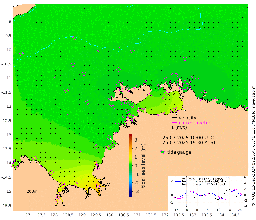 30cm/s -101T +4cm/s rms + 6cm/s 51T. Darwin_C1 52m 13cm/s 85T +4cm/s rms + 7cm/s -161T. Darwin_CW1 22m 3cm/s 105T +4cm/s rms + 8cm/s 61T. Darwin_CW2 34m 5cm/s -16T +3cm/s rms + 9cm/s 98T. Darwin_CW3 22m 27cm/s 92T +5cm/s rms + 7cm/s 88T. Darwin_C3 56m 23cm/s -117T +2cm/s rms + 9cm/s -126T. Darwin_CTbW 22m 3cm/s 60T +9cm/s rms + 2cm/s -110T. NWSLYN 196m 21cm/s -80T +1cm/s rms + 1cm/s -47T. DARBGF 30m 6cm/s -6T +7cm/s rms + 2cm/s -137T. ITFTIS 464m 13cm/s -2T +9cm/s rms + 1cm/s 74T. ITFMHB 146m 22cm/s -29T +4cm/s rms + 1cm/s -134T. ITFJBG 61m 22cm/s -36T +6cm/s rms + 4cm/s 121T. ITFFTB 108m 24cm/s -53T +4cm/s rms + 3cm/s 80T. NRSDAR 19m 50cm Carronade Island 55cm Guy Point 59cm Napier Broome Bay 63cm Lesueur Island 59cm Reveley Island 44cm Rocky Island 103cm Cape Domett 87cm Lacrosse Island 126cm Adolphus Island 158cm Pender Point 165cm Wyndham 28cm The Boxers 7cm Unnamed Shoal 30cm Loxton Shoal 88cm Pelican Island 19cm Calder Shoal 16cm Evans Shoal 159cm Quoin Island 65cm Port Keats 63cm Jones Point 130cm Catfish Island 30cm Cape Scott Offshore 46cm Cape Ford 26cm Anson Bay 10cm Goodrich Bank 22cm Peron Island North 12cm Point Jenny 12cm Native Point 19cm Fish Reef 19cm Tapa Bay 9cm Point Fawcett (Offshore) 28cm Burge Point 10cm Munkunuwa 9cm Beagle A 18cm Parsons Bank 21cm Fenton Patches 16cm Lynedoch Bank 24cm Hancox Shoal Area 18cm Nightcliff 42cm Darwin 43cm Charles Point Patches 43cm Glyde Point 56cm Chambers Bay 57cm Point Stuart 39cm Cape Hotham 46cm Christine Reef 63cm West Alligator Head 78cm East Field Island 40cm Two Hills Bay 22cm Newby Shoal 52cm Camp Point 26cm Medina Inlet South 5cm South Barlow Point 6cm St. Asaph Bay 6cm Cape Van Dieman 7cm Snake Bay 8cm Cache Point 29cm Echo Shoal 8cm Point Jahleel (Off) 18cm Cape Don 10cm Port Essington 1cm Smith Point - West 2cm NW Peacock Island 8cm North Of Jones Shoal 2cm Peacock Island -1cm Point David -2cm D'urville Point 11cm Money Shoal -2cm Copeland Island 0cm Cape Cockburn 5cm One Tree Point 5cm Hogmany Shoal 5cm New Year Island - West 3cm Grant Island -2cm Aurari Bay 6cm Cuthbert Point 3cm North Goulburn Island 18cm Paxie Shoal 10cm Entrance Island 14cm Yabooma Island