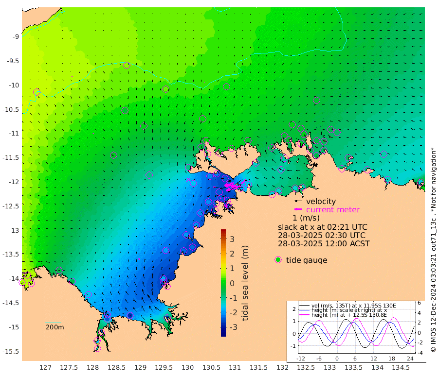 157cm/s -102T +4cm/s rms + 6cm/s 51T. Darwin_C1 52m 132cm/s -90T +4cm/s rms + 7cm/s -161T. Darwin_CW1 22m 100cm/s -106T +4cm/s rms + 8cm/s 61T. Darwin_CW2 34m 84cm/s -135T +3cm/s rms + 9cm/s 98T. Darwin_CW3 22m 155cm/s -91T +5cm/s rms + 7cm/s 88T. Darwin_C3 56m 85cm/s -115T +2cm/s rms + 9cm/s -126T. Darwin_CTbW 22m 4cm/s -133T +9cm/s rms + 2cm/s -110T. NWSLYN 196m 29cm/s -103T +1cm/s rms + 1cm/s -47T. DARBGF 30m 8cm/s 141T +7cm/s rms + 2cm/s -137T. ITFTIS 464m 8cm/s 140T +9cm/s rms + 1cm/s 74T. ITFMHB 146m 13cm/s 18T +4cm/s rms + 1cm/s -134T. ITFJBG 61m 9cm/s 98T +6cm/s rms + 4cm/s 121T. ITFFTB 108m 22cm/s -81T +4cm/s rms + 3cm/s 80T. NRSDAR 19m 67cm Carronade Island 64cm Guy Point 66cm Napier Broome Bay -45cm Lesueur Island -160cm Reveley Island -53cm Rocky Island -245cm Cape Domett -217cm Lacrosse Island -240cm Adolphus Island -175cm Pender Point -145cm Wyndham -22cm The Boxers -39cm Unnamed Shoal 53cm Loxton Shoal -275cm Pelican Island -2cm Calder Shoal 35cm Evans Shoal -277cm Quoin Island -275cm Port Keats -268cm Jones Point -188cm Catfish Island -200cm Cape Scott Offshore -231cm Cape Ford -232cm Anson Bay 8cm Goodrich Bank -192cm Peron Island North -205cm Point Jenny -203cm Native Point -209cm Fish Reef -233cm Tapa Bay -93cm Point Fawcett (Offshore) -250cm Burge Point -213cm Munkunuwa -169cm Beagle A -241cm Parsons Bank -236cm Fenton Patches 20cm Lynedoch Bank -242cm Hancox Shoal Area -255cm Nightcliff -269cm Darwin -246cm Charles Point Patches -193cm Glyde Point -155cm Chambers Bay -136cm Point Stuart -158cm Cape Hotham -141cm Christine Reef -142cm West Alligator Head -127cm East Field Island -122cm Two Hills Bay -99cm Newby Shoal -136cm Camp Point -222cm Medina Inlet South -75cm South Barlow Point -42cm St. Asaph Bay 3cm Cape Van Dieman -2cm Snake Bay 0cm Cache Point 79cm Echo Shoal -19cm Point Jahleel (Off) -76cm Cape Don -32cm Port Essington -29cm Smith Point - West -26cm NW Peacock Island -7cm North Of Jones Shoal -5cm Peacock Island -53cm Point David -33cm D'urville Point -27cm Money Shoal -56cm Copeland Island -69cm Cape Cockburn -48cm One Tree Point -68cm Hogmany Shoal -50cm New Year Island - West -56cm Grant Island -74cm Aurari Bay -96cm Cuthbert Point -78cm North Goulburn Island -114cm Paxie Shoal -129cm Entrance Island -151cm Yabooma Island