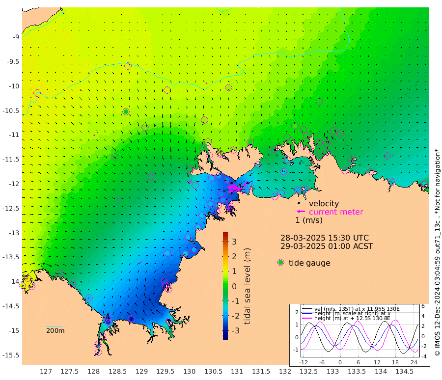147cm/s -101T +4cm/s rms + 6cm/s 51T. Darwin_C1 52m 130cm/s -91T +4cm/s rms + 7cm/s -161T. Darwin_CW1 22m 84cm/s -107T +4cm/s rms + 8cm/s 61T. Darwin_CW2 34m 85cm/s -137T +3cm/s rms + 9cm/s 98T. Darwin_CW3 22m 141cm/s -91T +5cm/s rms + 7cm/s 88T. Darwin_C3 56m 76cm/s -116T +2cm/s rms + 9cm/s -126T. Darwin_CTbW 22m 14cm/s 162T +9cm/s rms + 2cm/s -110T. NWSLYN 196m 8cm/s -168T +1cm/s rms + 1cm/s -47T. DARBGF 30m 9cm/s 88T +7cm/s rms + 2cm/s -137T. ITFTIS 464m 12cm/s 121T +9cm/s rms + 1cm/s 74T. ITFMHB 146m 15cm/s 72T +4cm/s rms + 1cm/s -134T. ITFJBG 61m 25cm/s 110T +6cm/s rms + 4cm/s 121T. ITFFTB 108m 12cm/s 176T +4cm/s rms + 3cm/s 80T. NRSDAR 19m 77cm Carronade Island 79cm Guy Point 84cm Napier Broome Bay -49cm Lesueur Island -169cm Reveley Island -76cm Rocky Island -268cm Cape Domett -243cm Lacrosse Island -292cm Adolphus Island -228cm Pender Point -214cm Wyndham 19cm The Boxers -4cm Unnamed Shoal 86cm Loxton Shoal -288cm Pelican Island 36cm Calder Shoal 70cm Evans Shoal -351cm Quoin Island -270cm Port Keats -261cm Jones Point -239cm Catfish Island -168cm Cape Scott Offshore -157cm Cape Ford -191cm Anson Bay 48cm Goodrich Bank -160cm Peron Island North -155cm Point Jenny -154cm Native Point -171cm Fish Reef -189cm Tapa Bay -40cm Point Fawcett (Offshore) -215cm Burge Point -174cm Munkunuwa -132cm Beagle A -209cm Parsons Bank -210cm Fenton Patches 53cm Lynedoch Bank -214cm Hancox Shoal Area -229cm Nightcliff -240cm Darwin -201cm Charles Point Patches -187cm Glyde Point -169cm Chambers Bay -168cm Point Stuart -167cm Cape Hotham -155cm Christine Reef -184cm West Alligator Head -184cm East Field Island -135cm Two Hills Bay -64cm Newby Shoal -141cm Camp Point -183cm Medina Inlet South -29cm South Barlow Point 4cm St. Asaph Bay 46cm Cape Van Dieman 37cm Snake Bay 41cm Cache Point 103cm Echo Shoal 12cm Point Jahleel (Off) -46cm Cape Don 9cm Port Essington 8cm Smith Point - West 11cm NW Peacock Island 31cm North Of Jones Shoal 9cm Peacock Island -19cm Point David 5cm D'urville Point 15cm Money Shoal -24cm Copeland Island -30cm Cape Cockburn -13cm One Tree Point -24cm Hogmany Shoal -19cm New Year Island - West -23cm Grant Island -54cm Aurari Bay -67cm Cuthbert Point -45cm North Goulburn Island -81cm Paxie Shoal -108cm Entrance Island -139cm Yabooma Island