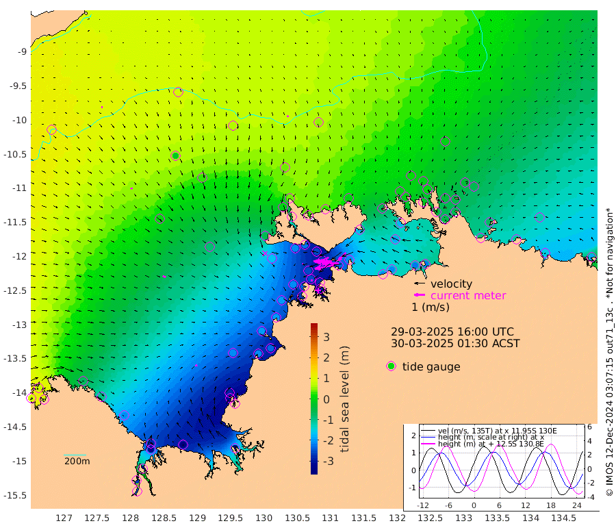 184cm/s -101T +4cm/s rms + 6cm/s 51T. Darwin_C1 52m 159cm/s -91T +4cm/s rms + 7cm/s -161T. Darwin_CW1 22m 101cm/s -106T +4cm/s rms + 8cm/s 61T. Darwin_CW2 34m 102cm/s -137T +3cm/s rms + 9cm/s 98T. Darwin_CW3 22m 172cm/s -91T +5cm/s rms + 7cm/s 88T. Darwin_C3 56m 97cm/s -116T +2cm/s rms + 9cm/s -126T. Darwin_CTbW 22m 14cm/s 167T +9cm/s rms + 2cm/s -110T. NWSLYN 196m 10cm/s -156T +1cm/s rms + 1cm/s -47T. DARBGF 30m 11cm/s 95T +7cm/s rms + 2cm/s -137T. ITFTIS 464m 15cm/s 125T +9cm/s rms + 1cm/s 74T. ITFMHB 146m 18cm/s 75T +4cm/s rms + 1cm/s -134T. ITFJBG 61m 29cm/s 112T +6cm/s rms + 4cm/s 121T. ITFFTB 108m 13cm/s 179T +4cm/s rms + 3cm/s 80T. NRSDAR 19m 79cm Carronade Island 79cm Guy Point 85cm Napier Broome Bay -69cm Lesueur Island -204cm Reveley Island -92cm Rocky Island -319cm Cape Domett -287cm Lacrosse Island -346cm Adolphus Island -269cm Pender Point -254cm Wyndham 7cm The Boxers -20cm Unnamed Shoal 87cm Loxton Shoal -343cm Pelican Island 29cm Calder Shoal 67cm Evans Shoal -409cm Quoin Island -322cm Port Keats -312cm Jones Point -285cm Catfish Island -205cm Cape Scott Offshore -209cm Cape Ford -231cm Anson Bay 40cm Goodrich Bank -200cm Peron Island North -192cm Point Jenny -192cm Native Point -211cm Fish Reef -231cm Tapa Bay -61cm Point Fawcett (Offshore) -261cm Burge Point -211cm Munkunuwa -164cm Beagle A -257cm Parsons Bank -253cm Fenton Patches 48cm Lynedoch Bank -261cm Hancox Shoal Area -273cm Nightcliff -292cm Darwin -249cm Charles Point Patches -229cm Glyde Point -204cm Chambers Bay -204cm Point Stuart -204cm Cape Hotham -189cm Christine Reef -222cm West Alligator Head -219cm East Field Island -169cm Two Hills Bay -90cm Newby Shoal -173cm Camp Point -224cm Medina Inlet South -48cm South Barlow Point -8cm St. Asaph Bay 38cm Cape Van Dieman 26cm Snake Bay 31cm Cache Point 111cm Echo Shoal -2cm Point Jahleel (Off) -70cm Cape Don -9cm Port Essington -10cm Smith Point - West -9cm NW Peacock Island 19cm North Of Jones Shoal 4cm Peacock Island -44cm Point David -16cm D'urville Point -3cm Money Shoal -50cm Copeland Island -63cm Cape Cockburn -37cm One Tree Point -60cm Hogmany Shoal -45cm New Year Island - West -51cm Grant Island -83cm Aurari Bay -104cm Cuthbert Point -77cm North Goulburn Island -117cm Paxie Shoal -149cm Entrance Island -182cm Yabooma Island