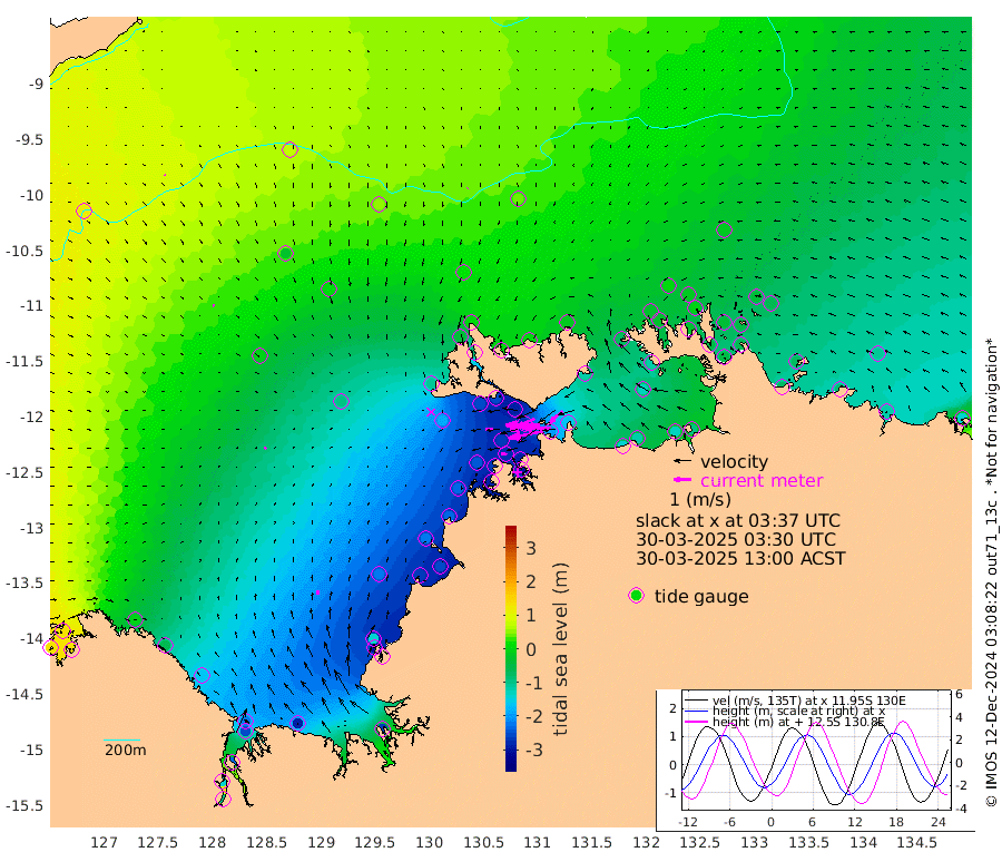 200cm/s -102T +4cm/s rms + 6cm/s 51T. Darwin_C1 52m 165cm/s -90T +4cm/s rms + 7cm/s -161T. Darwin_CW1 22m 134cm/s -107T +4cm/s rms + 8cm/s 61T. Darwin_CW2 34m 95cm/s -133T +3cm/s rms + 9cm/s 98T. Darwin_CW3 22m 201cm/s -91T +5cm/s rms + 7cm/s 88T. Darwin_C3 56m 109cm/s -115T +2cm/s rms + 9cm/s -126T. Darwin_CTbW 22m 4cm/s -170T +9cm/s rms + 2cm/s -110T. NWSLYN 196m 44cm/s -99T +1cm/s rms + 1cm/s -47T. DARBGF 30m 7cm/s 110T +7cm/s rms + 2cm/s -137T. ITFTIS 464m 8cm/s 80T +9cm/s rms + 1cm/s 74T. ITFMHB 146m 24cm/s 8T +4cm/s rms + 1cm/s -134T. ITFJBG 61m 11cm/s 52T +6cm/s rms + 4cm/s 121T. ITFFTB 108m 36cm/s -77T +4cm/s rms + 3cm/s 80T. NRSDAR 19m 129cm Carronade Island 128cm Guy Point 130cm Napier Broome Bay -4cm Lesueur Island -162cm Reveley Island -65cm Rocky Island -249cm Cape Domett -216cm Lacrosse Island -231cm Adolphus Island -142cm Pender Point -94cm Wyndham -4cm The Boxers -30cm Unnamed Shoal 77cm Loxton Shoal -286cm Pelican Island 10cm Calder Shoal 48cm Evans Shoal -269cm Quoin Island -297cm Port Keats -293cm Jones Point -139cm Catfish Island -220cm Cape Scott Offshore -266cm Cape Ford -257cm Anson Bay 18cm Goodrich Bank -220cm Peron Island North -228cm Point Jenny -227cm Native Point -238cm Fish Reef -262cm Tapa Bay -103cm Point Fawcett (Offshore) -284cm Burge Point -258cm Munkunuwa -185cm Beagle A -282cm Parsons Bank -262cm Fenton Patches 34cm Lynedoch Bank -271cm Hancox Shoal Area -284cm Nightcliff -303cm Darwin -271cm Charles Point Patches -202cm Glyde Point -140cm Chambers Bay -123cm Point Stuart -161cm Cape Hotham -127cm Christine Reef -128cm West Alligator Head -98cm East Field Island -117cm Two Hills Bay -94cm Newby Shoal -123cm Camp Point -256cm Medina Inlet South -87cm South Barlow Point -44cm St. Asaph Bay 10cm Cape Van Dieman 3cm Snake Bay 10cm Cache Point 113cm Echo Shoal -13cm Point Jahleel (Off) -74cm Cape Don -27cm Port Essington -25cm Smith Point - West -19cm NW Peacock Island 3cm North Of Jones Shoal -2cm Peacock Island -49cm Point David -29cm D'urville Point -14cm Money Shoal -51cm Copeland Island -65cm Cape Cockburn -43cm One Tree Point -59cm Hogmany Shoal -40cm New Year Island - West -51cm Grant Island -68cm Aurari Bay -89cm Cuthbert Point -73cm North Goulburn Island -104cm Paxie Shoal -122cm Entrance Island -140cm Yabooma Island