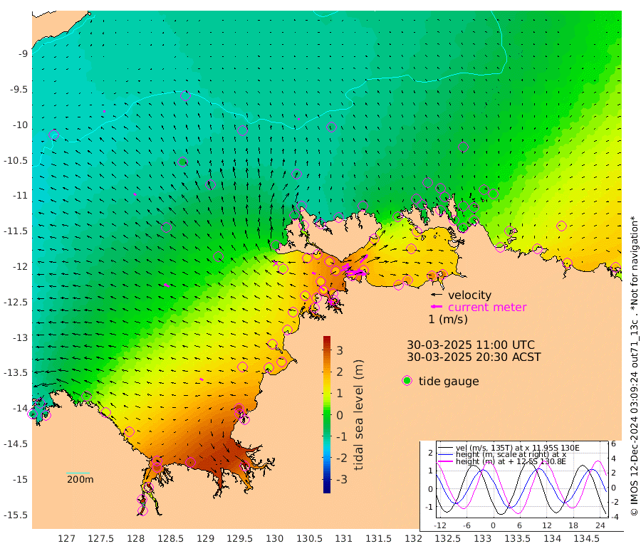 142cm/s 79T +4cm/s rms + 6cm/s 51T. Darwin_C1 52m 120cm/s 92T +4cm/s rms + 7cm/s -161T. Darwin_CW1 22m 91cm/s 70T +4cm/s rms + 8cm/s 61T. Darwin_CW2 34m 100cm/s 45T +3cm/s rms + 9cm/s 98T. Darwin_CW3 22m 159cm/s 90T +5cm/s rms + 7cm/s 88T. Darwin_C3 56m 65cm/s 65T +2cm/s rms + 9cm/s -126T. Darwin_CTbW 22m 16cm/s -22T +9cm/s rms + 2cm/s -110T. NWSLYN 196m 34cm/s -71T +1cm/s rms + 1cm/s -47T. DARBGF 30m 13cm/s -94T +7cm/s rms + 2cm/s -137T. ITFTIS 464m 23cm/s -47T +9cm/s rms + 1cm/s 74T. ITFMHB 146m 31cm/s -62T +4cm/s rms + 1cm/s -134T. ITFJBG 61m 49cm/s -62T +6cm/s rms + 4cm/s 121T. ITFFTB 108m 52cm/s -46T +4cm/s rms + 3cm/s 80T. NRSDAR 19m -81cm Carronade Island -80cm Guy Point -75cm Napier Broome Bay 31cm Lesueur Island 170cm Reveley Island 94cm Rocky Island 294cm Cape Domett 251cm Lacrosse Island 338cm Adolphus Island 324cm Pender Point 317cm Wyndham -59cm The Boxers -37cm Unnamed Shoal -118cm Loxton Shoal 303cm Pelican Island -83cm Calder Shoal -107cm Evans Shoal 428cm Quoin Island 254cm Port Keats 251cm Jones Point 311cm Catfish Island 128cm Cape Scott Offshore 73cm Cape Ford 146cm Anson Bay -90cm Goodrich Bank 113cm Peron Island North 100cm Point Jenny 99cm Native Point 116cm Fish Reef 136cm Tapa Bay -21cm Point Fawcett (Offshore) 168cm Burge Point 126cm Munkunuwa 63cm Beagle A 174cm Parsons Bank 153cm Fenton Patches -85cm Lynedoch Bank 179cm Hancox Shoal Area 181cm Nightcliff 205cm Darwin 155cm Charles Point Patches 179cm Glyde Point 195cm Chambers Bay 206cm Point Stuart 168cm Cape Hotham 176cm Christine Reef 230cm West Alligator Head 242cm East Field Island 152cm Two Hills Bay 6cm Newby Shoal 153cm Camp Point 136cm Medina Inlet South -26cm South Barlow Point -62cm St. Asaph Bay -91cm Cape Van Dieman -79cm Snake Bay -85cm Cache Point -139cm Echo Shoal -48cm Point Jahleel (Off) 29cm Cape Don -37cm Port Essington -41cm Smith Point - West -39cm NW Peacock Island -65cm North Of Jones Shoal -20cm Peacock Island 6cm Point David -34cm D'urville Point -37cm Money Shoal 12cm Copeland Island 14cm Cape Cockburn -1cm One Tree Point 14cm Hogmany Shoal 4cm New Year Island - West 13cm Grant Island 48cm Aurari Bay 78cm Cuthbert Point 43cm North Goulburn Island 104cm Paxie Shoal 134cm Entrance Island 178cm Yabooma Island