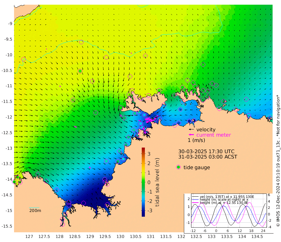 135cm/s -101T +4cm/s rms + 6cm/s 51T. Darwin_C1 52m 124cm/s -92T +4cm/s rms + 7cm/s -161T. Darwin_CW1 22m 58cm/s -106T +4cm/s rms + 8cm/s 61T. Darwin_CW2 34m 102cm/s -138T +3cm/s rms + 9cm/s 98T. Darwin_CW3 22m 129cm/s -90T +5cm/s rms + 7cm/s 88T. Darwin_C3 56m 62cm/s -116T +2cm/s rms + 9cm/s -126T. Darwin_CTbW 22m 17cm/s 164T +9cm/s rms + 2cm/s -110T. NWSLYN 196m 49cm/s 103T +1cm/s rms + 1cm/s -47T. DARBGF 30m 14cm/s 91T +7cm/s rms + 2cm/s -137T. ITFTIS 464m 25cm/s 139T +9cm/s rms + 1cm/s 74T. ITFMHB 146m 41cm/s 124T +4cm/s rms + 1cm/s -134T. ITFJBG 61m 57cm/s 122T +6cm/s rms + 4cm/s 121T. ITFFTB 108m 61cm/s 133T +4cm/s rms + 3cm/s 80T. NRSDAR 19m 25cm Carronade Island 22cm Guy Point 26cm Napier Broome Bay -88cm Lesueur Island -201cm Reveley Island -99cm Rocky Island -331cm Cape Domett -292cm Lacrosse Island -397cm Adolphus Island -382cm Pender Point -396cm Wyndham 39cm The Boxers 26cm Unnamed Shoal 98cm Loxton Shoal -336cm Pelican Island 68cm Calder Shoal 90cm Evans Shoal -491cm Quoin Island -272cm Port Keats -264cm Jones Point -402cm Catfish Island -135cm Cape Scott Offshore -79cm Cape Ford -146cm Anson Bay 75cm Goodrich Bank -120cm Peron Island North -101cm Point Jenny -99cm Native Point -118cm Fish Reef -137cm Tapa Bay 16cm Point Fawcett (Offshore) -168cm Burge Point -109cm Munkunuwa -73cm Beagle A -171cm Parsons Bank -161cm Fenton Patches 69cm Lynedoch Bank -188cm Hancox Shoal Area -186cm Nightcliff -209cm Darwin -161cm Charles Point Patches -203cm Glyde Point -236cm Chambers Bay -253cm Point Stuart -200cm Cape Hotham -218cm Christine Reef -281cm West Alligator Head -306cm East Field Island -189cm Two Hills Bay -30cm Newby Shoal -188cm Camp Point -132cm Medina Inlet South 25cm South Barlow Point 55cm St. Asaph Bay 79cm Cape Van Dieman 68cm Snake Bay 67cm Cache Point 110cm Echo Shoal 29cm Point Jahleel (Off) -48cm Cape Don 20cm Port Essington 21cm Smith Point - West 17cm NW Peacock Island 45cm North Of Jones Shoal 13cm Peacock Island -28cm Point David 13cm D'urville Point 15cm Money Shoal -35cm Copeland Island -45cm Cape Cockburn -21cm One Tree Point -51cm Hogmany Shoal -31cm New Year Island - West -38cm Grant Island -76cm Aurari Bay -110cm Cuthbert Point -68cm North Goulburn Island -130cm Paxie Shoal -166cm Entrance Island -217cm Yabooma Island