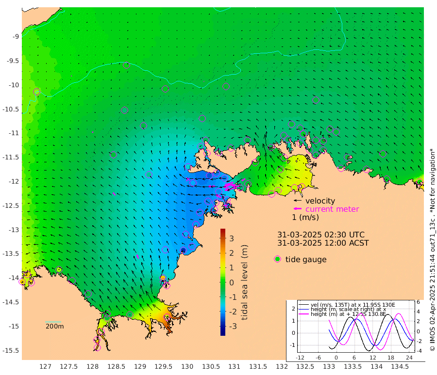 162cm/s -103T +4cm/s rms + 6cm/s 51T. Darwin_C1 52m 111cm/s -88T +4cm/s rms + 7cm/s -161T. Darwin_CW1 22m 124cm/s -109T +4cm/s rms + 8cm/s 61T. Darwin_CW2 34m 55cm/s -120T +3cm/s rms + 9cm/s 98T. Darwin_CW3 22m 144cm/s -92T +5cm/s rms + 7cm/s 88T. Darwin_C3 56m 95cm/s -116T +2cm/s rms + 9cm/s -126T. Darwin_CTbW 22m 4cm/s -37T +9cm/s rms + 2cm/s -110T. NWSLYN 196m 88cm/s -91T +1cm/s rms + 1cm/s -47T. DARBGF 30m 4cm/s -120T +7cm/s rms + 2cm/s -137T. ITFTIS 464m 15cm/s -11T +9cm/s rms + 1cm/s 74T. ITFMHB 146m 56cm/s -22T +4cm/s rms + 1cm/s -134T. ITFJBG 61m 43cm/s -41T +6cm/s rms + 4cm/s 121T. ITFFTB 108m 80cm/s -61T +4cm/s rms + 3cm/s 80T. NRSDAR 19m 151cm Carronade Island 160cm Guy Point 152cm Napier Broome Bay 58cm Lesueur Island -35cm Reveley Island -19cm Rocky Island -36cm Cape Domett -29cm Lacrosse Island 38cm Adolphus Island 155cm Pender Point 227cm Wyndham -45cm The Boxers -85cm Unnamed Shoal 11cm Loxton Shoal -76cm Pelican Island -52cm Calder Shoal -18cm Evans Shoal 76cm Quoin Island -150cm Port Keats -154cm Jones Point 179cm Catfish Island -163cm Cape Scott Offshore -275cm Cape Ford -200cm Anson Bay -49cm Goodrich Bank -186cm Peron Island North -201cm Point Jenny -204cm Native Point -210cm Fish Reef -216cm Tapa Bay -146cm Point Fawcett (Offshore) -222cm Burge Point -238cm Munkunuwa -183cm Beagle A -219cm Parsons Bank -207cm Fenton Patches -24cm Lynedoch Bank -187cm Hancox Shoal Area -207cm Nightcliff -216cm Darwin -211cm Charles Point Patches -93cm Glyde Point 28cm Chambers Bay 53cm Point Stuart -44cm Cape Hotham 28cm Christine Reef 70cm West Alligator Head 128cm East Field Island 5cm Two Hills Bay -111cm Newby Shoal 1cm Camp Point -219cm Medina Inlet South -141cm South Barlow Point -107cm St. Asaph Bay -62cm Cape Van Dieman -68cm Snake Bay -50cm Cache Point 50cm Echo Shoal -50cm Point Jahleel (Off) -57cm Cape Don -58cm Port Essington -59cm Smith Point - West -49cm NW Peacock Island -40cm North Of Jones Shoal -16cm Peacock Island -49cm Point David -59cm D'urville Point -35cm Money Shoal -46cm Copeland Island -58cm Cape Cockburn -46cm One Tree Point -39cm Hogmany Shoal -39cm New Year Island - West -44cm Grant Island -37cm Aurari Bay -26cm Cuthbert Point -43cm North Goulburn Island -18cm Paxie Shoal -15cm Entrance Island 13cm Yabooma Island