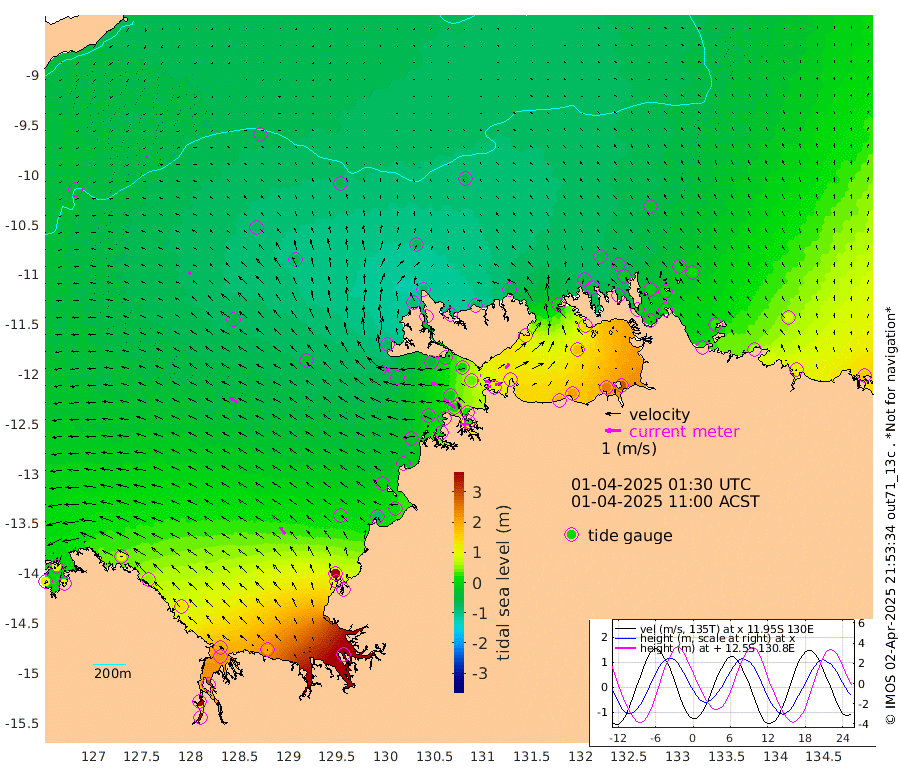 18cm/s 84T +4cm/s rms + 6cm/s 51T. Darwin_C1 52m 37cm/s 86T +4cm/s rms + 7cm/s -161T. Darwin_CW1 22m 9cm/s -107T +4cm/s rms + 8cm/s 61T. Darwin_CW2 34m 40cm/s 37T +3cm/s rms + 9cm/s 98T. Darwin_CW3 22m 25cm/s 98T +5cm/s rms + 7cm/s 88T. Darwin_C3 56m 4cm/s 87T +2cm/s rms + 9cm/s -126T. Darwin_CTbW 22m 9cm/s -16T +9cm/s rms + 2cm/s -110T. NWSLYN 196m 75cm/s -84T +1cm/s rms + 1cm/s -47T. DARBGF 30m 12cm/s -103T +7cm/s rms + 2cm/s -137T. ITFTIS 464m 19cm/s -44T +9cm/s rms + 1cm/s 74T. ITFMHB 146m 54cm/s -36T +4cm/s rms + 1cm/s -134T. ITFJBG 61m 57cm/s -53T +6cm/s rms + 4cm/s 121T. ITFFTB 108m 90cm/s -54T +4cm/s rms + 3cm/s 80T. NRSDAR 19m 94cm Carronade Island 107cm Guy Point 94cm Napier Broome Bay 101cm Lesueur Island 134cm Reveley Island 56cm Rocky Island 218cm Cape Domett 196cm Lacrosse Island 299cm Adolphus Island 364cm Pender Point 414cm Wyndham -42cm The Boxers -73cm Unnamed Shoal -51cm Loxton Shoal 200cm Pelican Island -65cm Calder Shoal -59cm Evans Shoal 388cm Quoin Island 112cm Port Keats 99cm Jones Point 409cm Catfish Island 17cm Cape Scott Offshore -82cm Cape Ford 3cm Anson Bay -74cm Goodrich Bank -10cm Peron Island North -25cm Point Jenny -30cm Native Point -25cm Fish Reef -13cm Tapa Bay -76cm Point Fawcett (Offshore) 2cm Burge Point -46cm Munkunuwa -44cm Beagle A 3cm Parsons Bank 0cm Fenton Patches -58cm Lynedoch Bank 35cm Hancox Shoal Area 22cm Nightcliff 28cm Darwin 2cm Charles Point Patches 92cm Glyde Point 189cm Chambers Bay 210cm Point Stuart 117cm Cape Hotham 180cm Christine Reef 241cm West Alligator Head 287cm East Field Island 140cm Two Hills Bay -33cm Newby Shoal 134cm Camp Point -22cm Medina Inlet South -89cm South Barlow Point -87cm St. Asaph Bay -83cm Cape Van Dieman -83cm Snake Bay -65cm Cache Point -35cm Echo Shoal -42cm Point Jahleel (Off) 10cm Cape Don -40cm Port Essington -41cm Smith Point - West -35cm NW Peacock Island -46cm North Of Jones Shoal -15cm Peacock Island -9cm Point David -38cm D'urville Point -26cm Money Shoal -2cm Copeland Island 0cm Cape Cockburn -10cm One Tree Point 20cm Hogmany Shoal -3cm New Year Island - West 2cm Grant Island 26cm Aurari Bay 63cm Cuthbert Point 24cm North Goulburn Island 85cm Paxie Shoal 107cm Entrance Island 160cm Yabooma Island