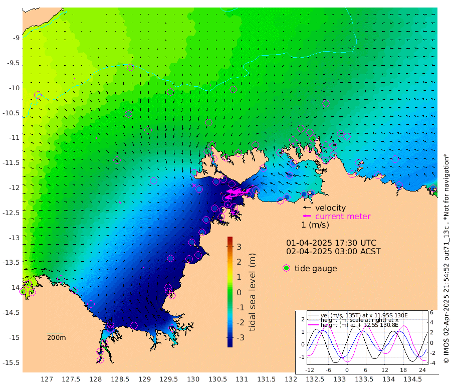 256cm/s -101T +4cm/s rms + 6cm/s 51T. Darwin_C1 52m 202cm/s -91T +4cm/s rms + 7cm/s -161T. Darwin_CW1 22m 128cm/s -106T +4cm/s rms + 8cm/s 61T. Darwin_CW2 34m 129cm/s -136T +3cm/s rms + 9cm/s 98T. Darwin_CW3 22m 212cm/s -90T +5cm/s rms + 7cm/s 88T. Darwin_C3 56m 144cm/s -115T +2cm/s rms + 9cm/s -126T. Darwin_CTbW 22m 9cm/s -168T +9cm/s rms + 2cm/s -110T. NWSLYN 196m 22cm/s -117T +1cm/s rms + 1cm/s -47T. DARBGF 30m 12cm/s 112T +7cm/s rms + 2cm/s -137T. ITFTIS 464m 13cm/s 123T +9cm/s rms + 1cm/s 74T. ITFMHB 146m 17cm/s 68T +4cm/s rms + 1cm/s -134T. ITFJBG 61m 26cm/s 110T +6cm/s rms + 4cm/s 121T. ITFFTB 108m 13cm/s -133T +4cm/s rms + 3cm/s 80T. NRSDAR 19m 43cm Carronade Island 43cm Guy Point 45cm Napier Broome Bay -112cm Lesueur Island -248cm Reveley Island -119cm Rocky Island -371cm Cape Domett -332cm Lacrosse Island -392cm Adolphus Island -305cm Pender Point -287cm Wyndham -45cm The Boxers -67cm Unnamed Shoal 45cm Loxton Shoal -397cm Pelican Island -18cm Calder Shoal 22cm Evans Shoal -457cm Quoin Island -380cm Port Keats -366cm Jones Point -356cm Catfish Island -264cm Cape Scott Offshore -296cm Cape Ford -293cm Anson Bay -5cm Goodrich Bank -269cm Peron Island North -256cm Point Jenny -253cm Native Point -277cm Fish Reef -294cm Tapa Bay -124cm Point Fawcett (Offshore) -324cm Burge Point -267cm Munkunuwa -218cm Beagle A -323cm Parsons Bank -308cm Fenton Patches 7cm Lynedoch Bank -322cm Hancox Shoal Area -327cm Nightcliff -361cm Darwin -322cm Charles Point Patches -281cm Glyde Point -240cm Chambers Bay -243cm Point Stuart -250cm Cape Hotham -227cm Christine Reef -259cm West Alligator Head -247cm East Field Island -217cm Two Hills Bay -154cm Newby Shoal -210cm Camp Point -290cm Medina Inlet South -104cm South Barlow Point -59cm St. Asaph Bay -9cm Cape Van Dieman -22cm Snake Bay -21cm Cache Point 80cm Echo Shoal -50cm Point Jahleel (Off) -128cm Cape Don -68cm Port Essington -68cm Smith Point - West -66cm NW Peacock Island -36cm North Of Jones Shoal -16cm Peacock Island -102cm Point David -75cm D'urville Point -59cm Money Shoal -106cm Copeland Island -142cm Cape Cockburn -98cm One Tree Point -138cm Hogmany Shoal -102cm New Year Island - West -113cm Grant Island -136cm Aurari Bay -171cm Cuthbert Point -140cm North Goulburn Island -178cm Paxie Shoal -204cm Entrance Island -233cm Yabooma Island