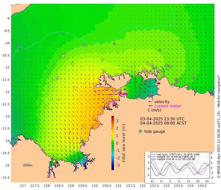 186cm/s 78T +4cm/s rms + 6cm/s 51T. Darwin_C1 52m 120cm/s 91T +4cm/s rms + 7cm/s -161T. Darwin_CW1 22m 110cm/s 74T +4cm/s rms + 8cm/s 61T. Darwin_CW2 34m 72cm/s 53T +3cm/s rms + 9cm/s 98T. Darwin_CW3 22m 152cm/s 88T +5cm/s rms + 7cm/s 88T. Darwin_C3 56m 102cm/s 65T +2cm/s rms + 9cm/s -126T. Darwin_CTbW 22m 3cm/s 152T +9cm/s rms + 2cm/s -110T. NWSLYN 196m 67cm/s 87T +1cm/s rms + 1cm/s -47T. DARBGF 30m 4cm/s 173T +7cm/s rms + 2cm/s -137T. ITFTIS 464m 23cm/s -176T +9cm/s rms + 1cm/s 74T. ITFMHB 146m 36cm/s 170T +4cm/s rms + 1cm/s -134T. ITFJBG 61m 30cm/s 153T +6cm/s rms + 4cm/s 121T. ITFFTB 108m 64cm/s 114T +4cm/s rms + 3cm/s 80T. NRSDAR 19m -101cm Carronade Island -100cm Guy Point -104cm Napier Broome Bay -18cm Lesueur Island 80cm Reveley Island 60cm Rocky Island 96cm Cape Domett 87cm Lacrosse Island 56cm Adolphus Island -38cm Pender Point -89cm Wyndham 40cm The Boxers 51cm Unnamed Shoal 6cm Loxton Shoal 127cm Pelican Island 48cm Calder Shoal 27cm Evans Shoal 63cm Quoin Island 163cm Port Keats 153cm Jones Point -15cm Catfish Island 163cm Cape Scott Offshore 206cm Cape Ford 185cm Anson Bay 38cm Goodrich Bank 177cm Peron Island North 171cm Point Jenny 171cm Native Point 183cm Fish Reef 189cm Tapa Bay 126cm Point Fawcett (Offshore) 188cm Burge Point 207cm Munkunuwa 149cm Beagle A 195cm Parsons Bank 175cm Fenton Patches 20cm Lynedoch Bank 174cm Hancox Shoal Area 188cm Nightcliff 198cm Darwin 189cm Charles Point Patches 97cm Glyde Point 11cm Chambers Bay -3cm Point Stuart 63cm Cape Hotham 13cm Christine Reef -9cm West Alligator Head -54cm East Field Island 30cm Two Hills Bay 93cm Newby Shoal 18cm Camp Point 195cm Medina Inlet South 116cm South Barlow Point 90cm St. Asaph Bay 46cm Cape Van Dieman 52cm Snake Bay 41cm Cache Point -25cm Echo Shoal 45cm Point Jahleel (Off) 55cm Cape Don 46cm Port Essington 51cm Smith Point - West 39cm NW Peacock Island 38cm North Of Jones Shoal 13cm Peacock Island 31cm Point David 46cm D'urville Point 20cm Money Shoal 28cm Copeland Island 40cm Cape Cockburn 34cm One Tree Point 29cm Hogmany Shoal 23cm New Year Island - West 30cm Grant Island 21cm Aurari Bay 16cm Cuthbert Point 27cm North Goulburn Island 7cm Paxie Shoal 1cm Entrance Island -19cm Yabooma Island