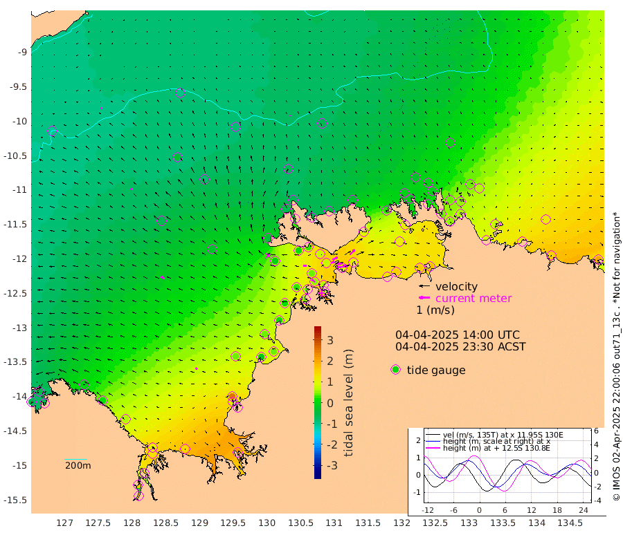 99cm/s 79T +4cm/s rms + 6cm/s 51T. Darwin_C1 52m 50cm/s 91T +4cm/s rms + 7cm/s -161T. Darwin_CW1 22m 29cm/s 69T +4cm/s rms + 8cm/s 61T. Darwin_CW2 34m 66cm/s 43T +3cm/s rms + 9cm/s 98T. Darwin_CW3 22m 52cm/s 91T +5cm/s rms + 7cm/s 88T. Darwin_C3 56m 51cm/s 64T +2cm/s rms + 9cm/s -126T. Darwin_CTbW 22m 8cm/s -28T +9cm/s rms + 2cm/s -110T. NWSLYN 196m 31cm/s -81T +1cm/s rms + 1cm/s -47T. DARBGF 30m 11cm/s -100T +7cm/s rms + 2cm/s -137T. ITFTIS 464m 17cm/s -44T +9cm/s rms + 1cm/s 74T. ITFMHB 146m 20cm/s -54T +4cm/s rms + 1cm/s -134T. ITFJBG 61m 33cm/s -63T +6cm/s rms + 4cm/s 121T. ITFFTB 108m 41cm/s -51T +4cm/s rms + 3cm/s 80T. NRSDAR 19m -55cm Carronade Island -60cm Guy Point -56cm Napier Broome Bay -3cm Lesueur Island 67cm Reveley Island 22cm Rocky Island 129cm Cape Domett 106cm Lacrosse Island 167cm Adolphus Island 160cm Pender Point 172cm Wyndham -60cm The Boxers -34cm Unnamed Shoal -99cm Loxton Shoal 145cm Pelican Island -83cm Calder Shoal -79cm Evans Shoal 220cm Quoin Island 99cm Port Keats 113cm Jones Point 252cm Catfish Island 34cm Cape Scott Offshore -22cm Cape Ford 43cm Anson Bay -67cm Goodrich Bank 37cm Peron Island North 18cm Point Jenny 15cm Native Point 33cm Fish Reef 35cm Tapa Bay -41cm Point Fawcett (Offshore) 49cm Burge Point 21cm Munkunuwa -4cm Beagle A 70cm Parsons Bank 43cm Fenton Patches -61cm Lynedoch Bank 74cm Hancox Shoal Area 58cm Nightcliff 79cm Darwin 49cm Charles Point Patches 96cm Glyde Point 129cm Chambers Bay 152cm Point Stuart 106cm Cape Hotham 114cm Christine Reef 168cm West Alligator Head 180cm East Field Island 113cm Two Hills Bay -33cm Newby Shoal 93cm Camp Point 33cm Medina Inlet South -45cm South Barlow Point -66cm St. Asaph Bay -67cm Cape Van Dieman -59cm Snake Bay -56cm Cache Point -105cm Echo Shoal -31cm Point Jahleel (Off) 27cm Cape Don -8cm Port Essington -10cm Smith Point - West -3cm NW Peacock Island -30cm North Of Jones Shoal -6cm Peacock Island 43cm Point David 3cm D'urville Point 0cm Money Shoal 50cm Copeland Island 64cm Cape Cockburn 35cm One Tree Point 67cm Hogmany Shoal 39cm New Year Island - West 48cm Grant Island 81cm Aurari Bay 115cm Cuthbert Point 77cm North Goulburn Island 120cm Paxie Shoal 151cm Entrance Island 194cm Yabooma Island