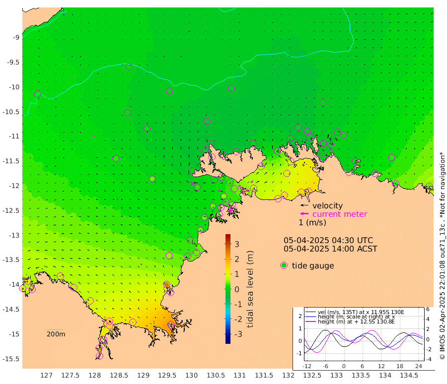 40cm/s 79T +4cm/s rms + 6cm/s 51T. Darwin_C1 52m 43cm/s 91T +4cm/s rms + 7cm/s -161T. Darwin_CW1 22m 4cm/s 89T +4cm/s rms + 8cm/s 61T. Darwin_CW2 34m 35cm/s 39T +3cm/s rms + 9cm/s 98T. Darwin_CW3 22m 19cm/s 96T +5cm/s rms + 7cm/s 88T. Darwin_C3 56m 26cm/s 69T +2cm/s rms + 9cm/s -126T. Darwin_CTbW 22m 2cm/s 43T +9cm/s rms + 2cm/s -110T. NWSLYN 196m 21cm/s -81T +1cm/s rms + 1cm/s -47T. DARBGF 30m 3cm/s -69T +7cm/s rms + 2cm/s -137T. ITFTIS 464m 3cm/s -79T +9cm/s rms + 1cm/s 74T. ITFMHB 146m 17cm/s -33T +4cm/s rms + 1cm/s -134T. ITFJBG 61m 16cm/s -50T +6cm/s rms + 4cm/s 121T. ITFFTB 108m 25cm/s -54T +4cm/s rms + 3cm/s 80T. NRSDAR 19m 117cm Carronade Island 121cm Guy Point 124cm Napier Broome Bay 106cm Lesueur Island 103cm Reveley Island 66cm Rocky Island 143cm Cape Domett 139cm Lacrosse Island 159cm Adolphus Island 208cm Pender Point 233cm Wyndham 25cm The Boxers 5cm Unnamed Shoal 7cm Loxton Shoal 121cm Pelican Island 11cm Calder Shoal -2cm Evans Shoal 192cm Quoin Island 91cm Port Keats 82cm Jones Point 246cm Catfish Island 48cm Cape Scott Offshore 25cm Cape Ford 39cm Anson Bay -14cm Goodrich Bank 31cm Peron Island North 38cm Point Jenny 35cm Native Point 34cm Fish Reef 37cm Tapa Bay 8cm Point Fawcett (Offshore) 47cm Burge Point 15cm Munkunuwa 31cm Beagle A 28cm Parsons Bank 45cm Fenton Patches -11cm Lynedoch Bank 42cm Hancox Shoal Area 48cm Nightcliff 41cm Darwin 31cm Charles Point Patches 71cm Glyde Point 117cm Chambers Bay 126cm Point Stuart 80cm Cape Hotham 113cm Christine Reef 144cm West Alligator Head 165cm East Field Island 90cm Two Hills Bay 41cm Newby Shoal 87cm Camp Point 27cm Medina Inlet South -15cm South Barlow Point -9cm St. Asaph Bay -17cm Cape Van Dieman -22cm Snake Bay -6cm Cache Point 16cm Echo Shoal 1cm Point Jahleel (Off) 24cm Cape Don -9cm Port Essington -9cm Smith Point - West -11cm NW Peacock Island -11cm North Of Jones Shoal -5cm Peacock Island -10cm Point David -14cm D'urville Point -10cm Money Shoal -9cm Copeland Island -6cm Cape Cockburn -7cm One Tree Point 3cm Hogmany Shoal -3cm New Year Island - West -3cm Grant Island 1cm Aurari Bay 17cm Cuthbert Point 5cm North Goulburn Island 31cm Paxie Shoal 32cm Entrance Island 44cm Yabooma Island