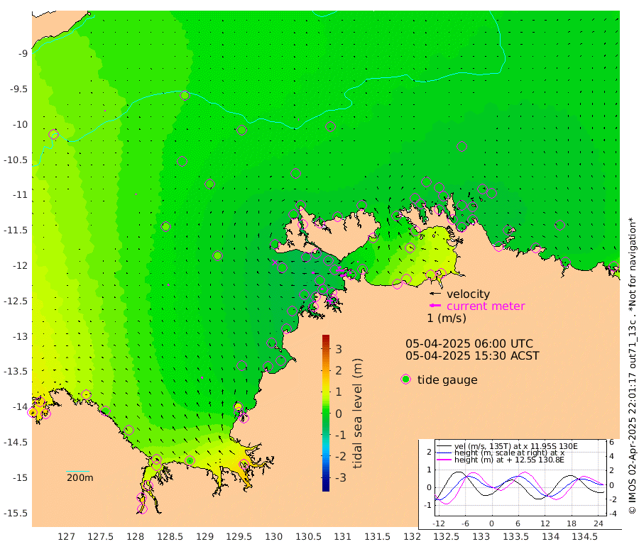 58cm/s -102T +4cm/s rms + 6cm/s 51T. Darwin_C1 52m 15cm/s -89T +4cm/s rms + 7cm/s -161T. Darwin_CW1 22m 37cm/s -110T +4cm/s rms + 8cm/s 61T. Darwin_CW2 34m 13cm/s -95T +3cm/s rms + 9cm/s 98T. Darwin_CW3 22m 36cm/s -93T +5cm/s rms + 7cm/s 88T. Darwin_C3 56m 31cm/s -117T +2cm/s rms + 9cm/s -126T. Darwin_CTbW 22m 3cm/s 95T +9cm/s rms + 2cm/s -110T. NWSLYN 196m 25cm/s -88T +1cm/s rms + 1cm/s -47T. DARBGF 30m 6cm/s 16T +7cm/s rms + 2cm/s -137T. ITFTIS 464m 8cm/s 25T +9cm/s rms + 1cm/s 74T. ITFMHB 146m 19cm/s -18T +4cm/s rms + 1cm/s -134T. ITFJBG 61m 14cm/s -16T +6cm/s rms + 4cm/s 121T. ITFFTB 108m 22cm/s -68T +4cm/s rms + 3cm/s 80T. NRSDAR 19m 139cm Carronade Island 145cm Guy Point 148cm Napier Broome Bay 101cm Lesueur Island 49cm Reveley Island 24cm Rocky Island 62cm Cape Domett 67cm Lacrosse Island 72cm Adolphus Island 136cm Pender Point 163cm Wyndham 39cm The Boxers 15cm Unnamed Shoal 43cm Loxton Shoal 31cm Pelican Island 33cm Calder Shoal 23cm Evans Shoal 78cm Quoin Island 17cm Port Keats 7cm Jones Point 108cm Catfish Island -2cm Cape Scott Offshore 5cm Cape Ford -15cm Anson Bay 10cm Goodrich Bank -19cm Peron Island North -5cm Point Jenny -6cm Native Point -16cm Fish Reef -14cm Tapa Bay -2cm Point Fawcett (Offshore) -8cm Burge Point -35cm Munkunuwa 2cm Beagle A -34cm Parsons Bank -6cm Fenton Patches 15cm Lynedoch Bank -19cm Hancox Shoal Area -13cm Nightcliff -24cm Darwin -18cm Charles Point Patches 14cm Glyde Point 56cm Chambers Bay 57cm Point Stuart 23cm Cape Hotham 57cm Christine Reef 65cm West Alligator Head 90cm East Field Island 33cm Two Hills Bay 34cm Newby Shoal 46cm Camp Point -23cm Medina Inlet South -15cm South Barlow Point 1cm St. Asaph Bay 6cm Cape Van Dieman -1cm Snake Bay 12cm Cache Point 58cm Echo Shoal 7cm Point Jahleel (Off) 6cm Cape Don -6cm Port Essington -9cm Smith Point - West -8cm NW Peacock Island 1cm North Of Jones Shoal -2cm Peacock Island -18cm Point David -15cm D'urville Point 0cm Money Shoal -19cm Copeland Island -21cm Cape Cockburn -14cm One Tree Point -13cm Hogmany Shoal -8cm New Year Island - West -14cm Grant Island -20cm Aurari Bay -16cm Cuthbert Point -16cm North Goulburn Island -2cm Paxie Shoal -10cm Entrance Island -8cm Yabooma Island