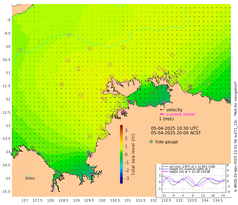 24cm/s 81T +4cm/s rms + 6cm/s 51T. Darwin_C1 52m 22cm/s 81T +4cm/s rms + 7cm/s -161T. Darwin_CW1 22m 20cm/s 79T +4cm/s rms + 8cm/s 61T. Darwin_CW2 34m 9cm/s -157T +3cm/s rms + 9cm/s 98T. Darwin_CW3 22m 30cm/s 87T +5cm/s rms + 7cm/s 88T. Darwin_C3 56m 18cm/s 61T +2cm/s rms + 9cm/s -126T. Darwin_CTbW 22m 8cm/s 122T +9cm/s rms + 2cm/s -110T. NWSLYN 196m 29cm/s 91T +1cm/s rms + 1cm/s -47T. DARBGF 30m 9cm/s 25T +7cm/s rms + 2cm/s -137T. ITFTIS 464m 9cm/s 43T +9cm/s rms + 1cm/s 74T. ITFMHB 146m 12cm/s 134T +4cm/s rms + 1cm/s -134T. ITFJBG 61m 13cm/s 97T +6cm/s rms + 4cm/s 121T. ITFFTB 108m 26cm/s 122T +4cm/s rms + 3cm/s 80T. NRSDAR 19m -10cm Carronade Island -9cm Guy Point -5cm Napier Broome Bay 18cm Lesueur Island 0cm Reveley Island -16cm Rocky Island -8cm Cape Domett -9cm Lacrosse Island -27cm Adolphus Island -65cm Pender Point -84cm Wyndham 67cm The Boxers 77cm Unnamed Shoal 70cm Loxton Shoal -2cm Pelican Island 73cm Calder Shoal 67cm Evans Shoal -45cm Quoin Island 33cm Port Keats 23cm Jones Point -109cm Catfish Island 56cm Cape Scott Offshore 98cm Cape Ford 67cm Anson Bay 76cm Goodrich Bank 68cm Peron Island North 61cm Point Jenny 64cm Native Point 63cm Fish Reef 66cm Tapa Bay 81cm Point Fawcett (Offshore) 62cm Burge Point 67cm Munkunuwa 62cm Beagle A 64cm Parsons Bank 54cm Fenton Patches 71cm Lynedoch Bank 54cm Hancox Shoal Area 56cm Nightcliff 70cm Darwin 84cm Charles Point Patches 21cm Glyde Point -35cm Chambers Bay -49cm Point Stuart 2cm Cape Hotham -31cm Christine Reef -64cm West Alligator Head -84cm East Field Island -13cm Two Hills Bay 73cm Newby Shoal -3cm Camp Point 74cm Medina Inlet South 90cm South Barlow Point 82cm St. Asaph Bay 78cm Cape Van Dieman 87cm Snake Bay 73cm Cache Point 51cm Echo Shoal 63cm Point Jahleel (Off) 48cm Cape Don 71cm Port Essington 67cm Smith Point - West 68cm NW Peacock Island 75cm North Of Jones Shoal 26cm Peacock Island 64cm Point David 70cm D'urville Point 72cm Money Shoal 59cm Copeland Island 76cm Cape Cockburn 67cm One Tree Point 67cm Hogmany Shoal 64cm New Year Island - West 63cm Grant Island 47cm Aurari Bay 38cm Cuthbert Point 54cm North Goulburn Island 35cm Paxie Shoal 16cm Entrance Island -3cm Yabooma Island