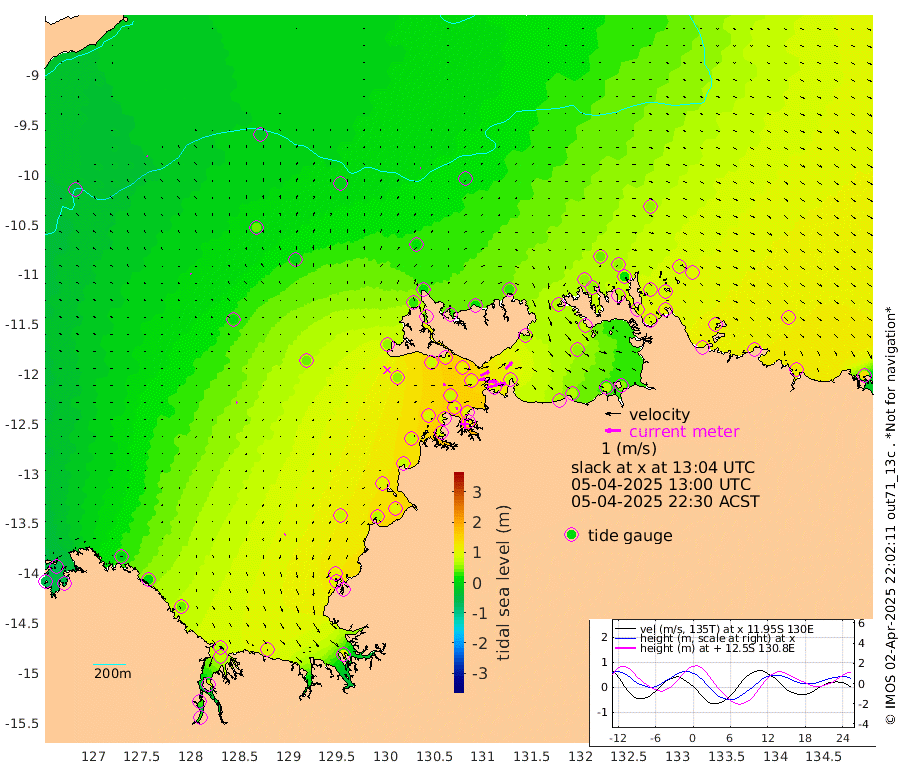 117cm/s 78T +4cm/s rms + 6cm/s 51T. Darwin_C1 52m 61cm/s 90T +4cm/s rms + 7cm/s -161T. Darwin_CW1 22m 42cm/s 76T +4cm/s rms + 8cm/s 61T. Darwin_CW2 34m 60cm/s 45T +3cm/s rms + 9cm/s 98T. Darwin_CW3 22m 71cm/s 90T +5cm/s rms + 7cm/s 88T. Darwin_C3 56m 62cm/s 64T +2cm/s rms + 9cm/s -126T. Darwin_CTbW 22m 3cm/s 94T +9cm/s rms + 2cm/s -110T. NWSLYN 196m 13cm/s 82T +1cm/s rms + 1cm/s -47T. DARBGF 30m 5cm/s -61T +7cm/s rms + 2cm/s -137T. ITFTIS 464m 7cm/s -32T +9cm/s rms + 1cm/s 74T. ITFMHB 146m 6cm/s -132T +4cm/s rms + 1cm/s -134T. ITFJBG 61m 7cm/s -79T +6cm/s rms + 4cm/s 121T. ITFFTB 108m 10cm/s 90T +4cm/s rms + 3cm/s 80T. NRSDAR 19m -57cm Carronade Island -60cm Guy Point -55cm Napier Broome Bay 0cm Lesueur Island 44cm Reveley Island 6cm Rocky Island 74cm Cape Domett 60cm Lacrosse Island 78cm Adolphus Island 33cm Pender Point 23cm Wyndham 9cm The Boxers 35cm Unnamed Shoal -19cm Loxton Shoal 96cm Pelican Island -1cm Calder Shoal -2cm Evans Shoal 102cm Quoin Island 93cm Port Keats 96cm Jones Point 107cm Catfish Island 77cm Cape Scott Offshore 57cm Cape Ford 92cm Anson Bay 12cm Goodrich Bank 90cm Peron Island North 70cm Point Jenny 69cm Native Point 83cm Fish Reef 84cm Tapa Bay 45cm Point Fawcett (Offshore) 87cm Burge Point 78cm Munkunuwa 53cm Beagle A 107cm Parsons Bank 77cm Fenton Patches 10cm Lynedoch Bank 99cm Hancox Shoal Area 91cm Nightcliff 114cm Darwin 103cm Charles Point Patches 83cm Glyde Point 60cm Chambers Bay 65cm Point Stuart 75cm Cape Hotham 51cm Christine Reef 64cm West Alligator Head 50cm East Field Island 69cm Two Hills Bay 34cm Newby Shoal 55cm Camp Point 90cm Medina Inlet South 44cm South Barlow Point 23cm St. Asaph Bay 16cm Cape Van Dieman 27cm Snake Bay 20cm Cache Point -38cm Echo Shoal 30cm Point Jahleel (Off) 60cm Cape Don 52cm Port Essington 50cm Smith Point - West 54cm NW Peacock Island 40cm North Of Jones Shoal 17cm Peacock Island 80cm Point David 60cm D'urville Point 54cm Money Shoal 81cm Copeland Island 107cm Cape Cockburn 78cm One Tree Point 99cm Hogmany Shoal 76cm New Year Island - West 82cm Grant Island 94cm Aurari Bay 110cm Cuthbert Point 97cm North Goulburn Island 108cm Paxie Shoal 114cm Entrance Island 128cm Yabooma Island