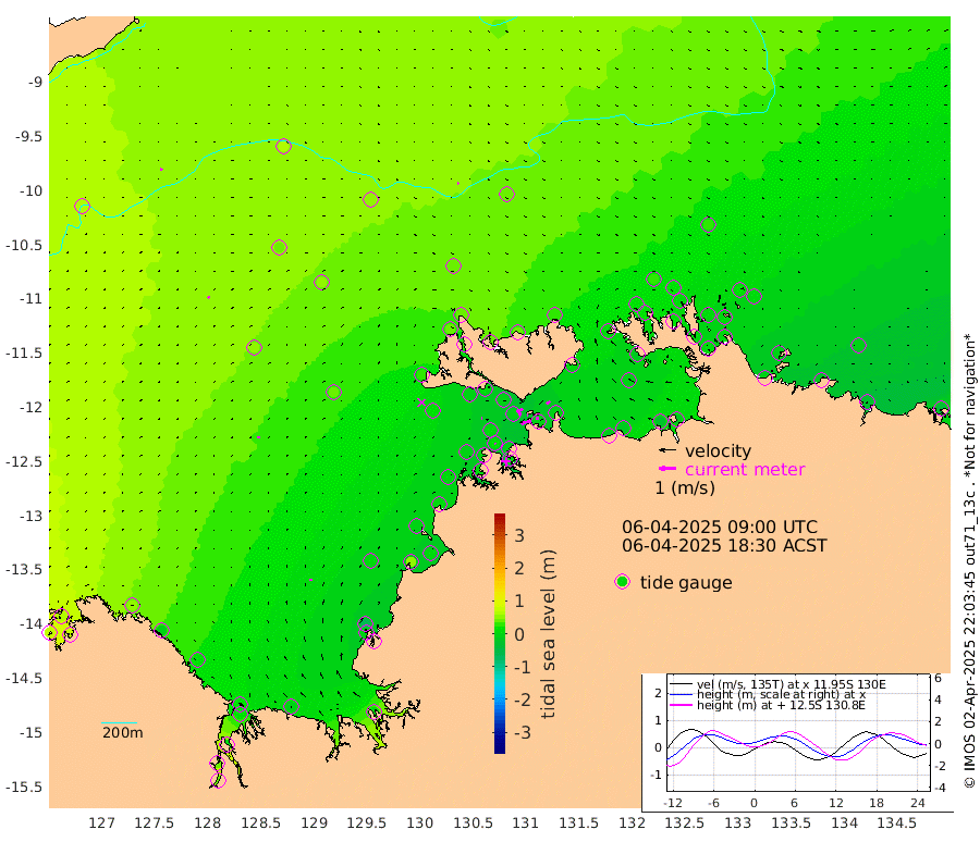 66cm/s -101T +4cm/s rms + 6cm/s 51T. Darwin_C1 52m 18cm/s -88T +4cm/s rms + 7cm/s -161T. Darwin_CW1 22m 13cm/s -109T +4cm/s rms + 8cm/s 61T. Darwin_CW2 34m 24cm/s -129T +3cm/s rms + 9cm/s 98T. Darwin_CW3 22m 9cm/s -92T +5cm/s rms + 7cm/s 88T. Darwin_C3 56m 42cm/s -116T +2cm/s rms + 9cm/s -126T. Darwin_CTbW 22m 6cm/s 107T +9cm/s rms + 2cm/s -110T. NWSLYN 196m 7cm/s -85T +1cm/s rms + 1cm/s -47T. DARBGF 30m 10cm/s 23T +7cm/s rms + 2cm/s -137T. ITFTIS 464m 12cm/s 26T +9cm/s rms + 1cm/s 74T. ITFMHB 146m 12cm/s -3T +4cm/s rms + 1cm/s -134T. ITFJBG 61m 11cm/s 14T +6cm/s rms + 4cm/s 121T. ITFFTB 108m 8cm/s -74T +4cm/s rms + 3cm/s 80T. NRSDAR 19m 67cm Carronade Island 74cm Guy Point 75cm Napier Broome Bay 56cm Lesueur Island 14cm Reveley Island -7cm Rocky Island 14cm Cape Domett 14cm Lacrosse Island 11cm Adolphus Island 39cm Pender Point 41cm Wyndham 49cm The Boxers 38cm Unnamed Shoal 65cm Loxton Shoal -6cm Pelican Island 54cm Calder Shoal 46cm Evans Shoal 1cm Quoin Island 5cm Port Keats -6cm Jones Point -67cm Catfish Island 6cm Cape Scott Offshore 47cm Cape Ford 2cm Anson Bay 43cm Goodrich Bank 0cm Peron Island North 5cm Point Jenny 8cm Native Point -3cm Fish Reef 5cm Tapa Bay 24cm Point Fawcett (Offshore) 7cm Burge Point -2cm Munkunuwa 12cm Beagle A -9cm Parsons Bank 1cm Fenton Patches 45cm Lynedoch Bank -5cm Hancox Shoal Area -2cm Nightcliff 1cm Darwin 13cm Charles Point Patches -4cm Glyde Point -12cm Chambers Bay -22cm Point Stuart -11cm Cape Hotham -8cm Christine Reef -27cm West Alligator Head -22cm East Field Island -15cm Two Hills Bay 40cm Newby Shoal 8cm Camp Point 5cm Medina Inlet South 28cm South Barlow Point 35cm St. Asaph Bay 41cm Cape Van Dieman 41cm Snake Bay 37cm Cache Point 63cm Echo Shoal 27cm Point Jahleel (Off) 10cm Cape Don 21cm Port Essington 15cm Smith Point - West 17cm NW Peacock Island 28cm North Of Jones Shoal 8cm Peacock Island 7cm Point David 12cm D'urville Point 27cm Money Shoal 3cm Copeland Island 3cm Cape Cockburn 10cm One Tree Point 6cm Hogmany Shoal 12cm New Year Island - West 8cm Grant Island -10cm Aurari Bay -17cm Cuthbert Point -3cm North Goulburn Island -4cm Paxie Shoal -23cm Entrance Island -34cm Yabooma Island
