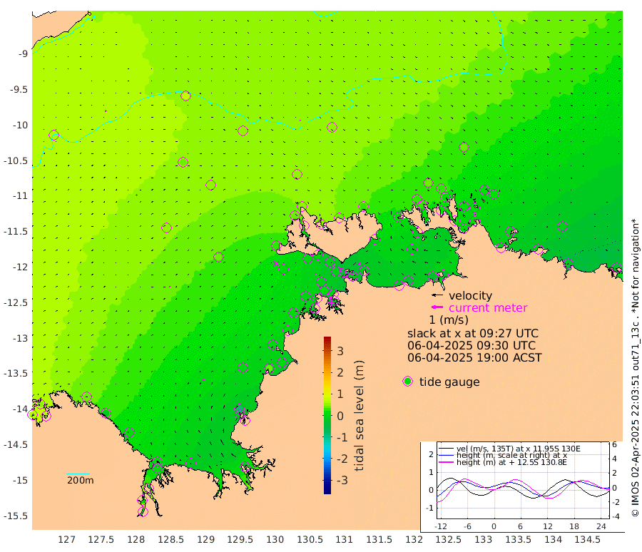 58cm/s -101T +4cm/s rms + 6cm/s 51T. Darwin_C1 52m 16cm/s -88T +4cm/s rms + 7cm/s -161T. Darwin_CW1 22m 10cm/s -112T +4cm/s rms + 8cm/s 61T. Darwin_CW2 34m 25cm/s -130T +3cm/s rms + 9cm/s 98T. Darwin_CW3 22m 5cm/s -91T +5cm/s rms + 7cm/s 88T. Darwin_C3 56m 37cm/s -116T +2cm/s rms + 9cm/s -126T. Darwin_CTbW 22m 7cm/s 112T +9cm/s rms + 2cm/s -110T. NWSLYN 196m 2cm/s -86T +1cm/s rms + 1cm/s -47T. DARBGF 30m 10cm/s 24T +7cm/s rms + 2cm/s -137T. ITFTIS 464m 12cm/s 27T +9cm/s rms + 1cm/s 74T. ITFMHB 146m 10cm/s 4T +4cm/s rms + 1cm/s -134T. ITFJBG 61m 10cm/s 22T +6cm/s rms + 4cm/s 121T. ITFFTB 108m 4cm/s -94T +4cm/s rms + 3cm/s 80T. NRSDAR 19m 53cm Carronade Island 60cm Guy Point 61cm Napier Broome Bay 45cm Lesueur Island 5cm Reveley Island -13cm Rocky Island 1cm Cape Domett 0cm Lacrosse Island -4cm Adolphus Island 15cm Pender Point 14cm Wyndham 50cm The Boxers 42cm Unnamed Shoal 69cm Loxton Shoal -16cm Pelican Island 56cm Calder Shoal 51cm Evans Shoal -16cm Quoin Island -1cm Port Keats -13cm Jones Point -88cm Catfish Island 6cm Cape Scott Offshore 43cm Cape Ford 4cm Anson Bay 49cm Goodrich Bank 2cm Peron Island North 5cm Point Jenny 8cm Native Point -3cm Fish Reef 5cm Tapa Bay 28cm Point Fawcett (Offshore) 4cm Burge Point 1cm Munkunuwa 10cm Beagle A -6cm Parsons Bank -2cm Fenton Patches 51cm Lynedoch Bank -5cm Hancox Shoal Area -3cm Nightcliff 2cm Darwin 16cm Charles Point Patches -9cm Glyde Point -24cm Chambers Bay -35cm Point Stuart -17cm Cape Hotham -19cm Christine Reef -42cm West Alligator Head -41cm East Field Island -22cm Two Hills Bay 39cm Newby Shoal 0cm Camp Point 7cm Medina Inlet South 36cm South Barlow Point 41cm St. Asaph Bay 47cm Cape Van Dieman 49cm Snake Bay 42cm Cache Point 64cm Echo Shoal 32cm Point Jahleel (Off) 13cm Cape Don 29cm Port Essington 23cm Smith Point - West 25cm NW Peacock Island 36cm North Of Jones Shoal 11cm Peacock Island 16cm Point David 21cm D'urville Point 34cm Money Shoal 11cm Copeland Island 13cm Cape Cockburn 19cm One Tree Point 15cm Hogmany Shoal 19cm New Year Island - West 16cm Grant Island -3cm Aurari Bay -11cm Cuthbert Point 4cm North Goulburn Island 0cm Paxie Shoal -21cm Entrance Island -34cm Yabooma Island
