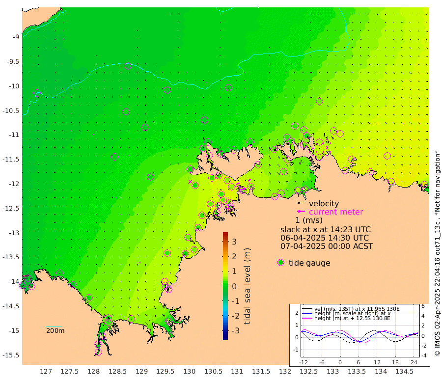 81cm/s 78T +4cm/s rms + 6cm/s 51T. Darwin_C1 52m 31cm/s 90T +4cm/s rms + 7cm/s -161T. Darwin_CW1 22m 17cm/s 76T +4cm/s rms + 8cm/s 61T. Darwin_CW2 34m 41cm/s 45T +3cm/s rms + 9cm/s 98T. Darwin_CW3 22m 27cm/s 91T +5cm/s rms + 7cm/s 88T. Darwin_C3 56m 45cm/s 64T +2cm/s rms + 9cm/s -126T. Darwin_CTbW 22m 2cm/s 135T +9cm/s rms + 2cm/s -110T. NWSLYN 196m 5cm/s 88T +1cm/s rms + 1cm/s -47T. DARBGF 30m 4cm/s -83T +7cm/s rms + 2cm/s -137T. ITFTIS 464m 5cm/s -38T +9cm/s rms + 1cm/s 74T. ITFMHB 146m 2cm/s -155T +4cm/s rms + 1cm/s -134T. ITFJBG 61m 4cm/s -90T +6cm/s rms + 4cm/s 121T. ITFFTB 108m 2cm/s 48T +4cm/s rms + 3cm/s 80T. NRSDAR 19m -33cm Carronade Island -37cm Guy Point -33cm Napier Broome Bay -9cm Lesueur Island 11cm Reveley Island -18cm Rocky Island 25cm Cape Domett 20cm Lacrosse Island 28cm Adolphus Island 5cm Pender Point 8cm Wyndham -7cm The Boxers 15cm Unnamed Shoal -28cm Loxton Shoal 43cm Pelican Island -16cm Calder Shoal -12cm Evans Shoal 48cm Quoin Island 33cm Port Keats 41cm Jones Point 115cm Catfish Island 32cm Cape Scott Offshore -11cm Cape Ford 42cm Anson Bay -4cm Goodrich Bank 42cm Peron Island North 27cm Point Jenny 23cm Native Point 35cm Fish Reef 32cm Tapa Bay 16cm Point Fawcett (Offshore) 30cm Burge Point 24cm Munkunuwa 13cm Beagle A 48cm Parsons Bank 24cm Fenton Patches -3cm Lynedoch Bank 46cm Hancox Shoal Area 37cm Nightcliff 48cm Darwin 41cm Charles Point Patches 45cm Glyde Point 47cm Chambers Bay 55cm Point Stuart 49cm Cape Hotham 38cm Christine Reef 56cm West Alligator Head 50cm East Field Island 54cm Two Hills Bay 2cm Newby Shoal 35cm Camp Point 34cm Medina Inlet South 11cm South Barlow Point 0cm St. Asaph Bay 0cm Cape Van Dieman 6cm Snake Bay 6cm Cache Point -34cm Echo Shoal 13cm Point Jahleel (Off) 39cm Cape Don 33cm Port Essington 33cm Smith Point - West 37cm NW Peacock Island 26cm North Of Jones Shoal 12cm Peacock Island 62cm Point David 42cm D'urville Point 39cm Money Shoal 64cm Copeland Island 85cm Cape Cockburn 60cm One Tree Point 79cm Hogmany Shoal 58cm New Year Island - West 63cm Grant Island 78cm Aurari Bay 93cm Cuthbert Point 79cm North Goulburn Island 92cm Paxie Shoal 99cm Entrance Island 118cm Yabooma Island