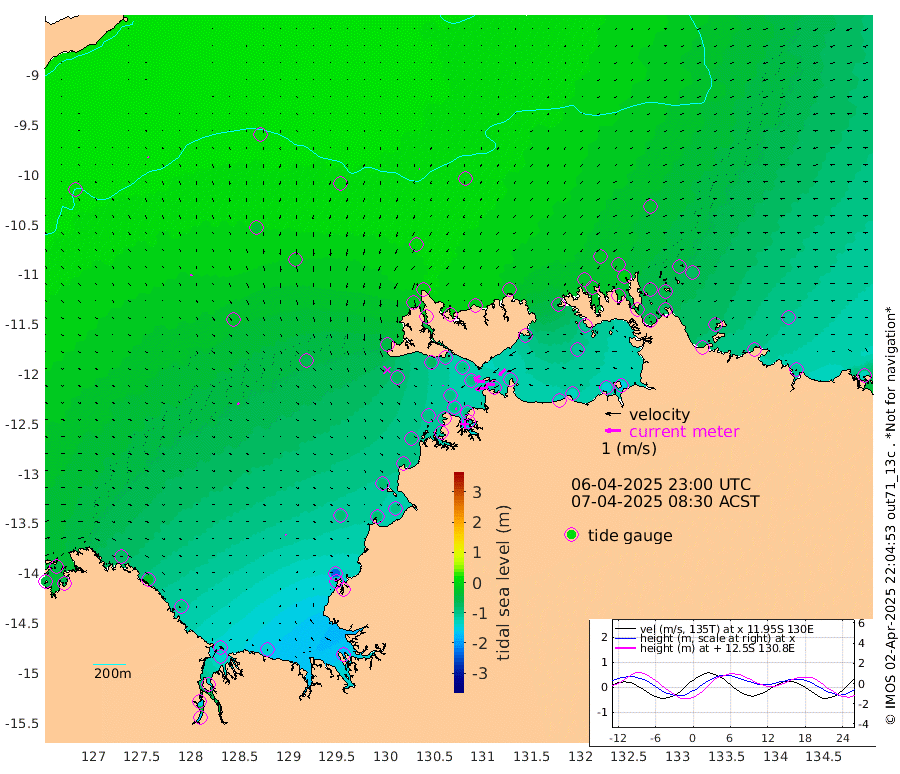 81cm/s -102T +4cm/s rms + 6cm/s 51T. Darwin_C1 52m 56cm/s -90T +4cm/s rms + 7cm/s -161T. Darwin_CW1 22m 24cm/s -105T +4cm/s rms + 8cm/s 61T. Darwin_CW2 34m 57cm/s -138T +3cm/s rms + 9cm/s 98T. Darwin_CW3 22m 45cm/s -88T +5cm/s rms + 7cm/s 88T. Darwin_C3 56m 45cm/s -115T +2cm/s rms + 9cm/s -126T. Darwin_CTbW 22m 4cm/s -85T +9cm/s rms + 2cm/s -110T. NWSLYN 196m 3cm/s 143T +1cm/s rms + 1cm/s -47T. DARBGF 30m 7cm/s 155T +7cm/s rms + 2cm/s -137T. ITFTIS 464m 8cm/s 169T +9cm/s rms + 1cm/s 74T. ITFMHB 146m 6cm/s 133T +4cm/s rms + 1cm/s -134T. ITFJBG 61m 10cm/s 137T +6cm/s rms + 4cm/s 121T. ITFFTB 108m 8cm/s 139T +4cm/s rms + 3cm/s 80T. NRSDAR 19m -49cm Carronade Island -47cm Guy Point -57cm Napier Broome Bay -79cm Lesueur Island -95cm Reveley Island -27cm Rocky Island -140cm Cape Domett -133cm Lacrosse Island -138cm Adolphus Island -149cm Pender Point -158cm Wyndham -30cm The Boxers -42cm Unnamed Shoal 12cm Loxton Shoal -141cm Pelican Island -12cm Calder Shoal 6cm Evans Shoal -169cm Quoin Island -124cm Port Keats -130cm Jones Point -232cm Catfish Island -89cm Cape Scott Offshore -86cm Cape Ford -97cm Anson Bay 0cm Goodrich Bank -86cm Peron Island North -85cm Point Jenny -82cm Native Point -91cm Fish Reef -92cm Tapa Bay -46cm Point Fawcett (Offshore) -102cm Burge Point -69cm Munkunuwa -70cm Beagle A -94cm Parsons Bank -94cm Fenton Patches 1cm Lynedoch Bank -98cm Hancox Shoal Area -99cm Nightcliff -108cm Darwin -98cm Charles Point Patches -109cm Glyde Point -125cm Chambers Bay -131cm Point Stuart -109cm Cape Hotham -110cm Christine Reef -141cm West Alligator Head -147cm East Field Island -107cm Two Hills Bay -58cm Newby Shoal -102cm Camp Point -85cm Medina Inlet South -22cm South Barlow Point -14cm St. Asaph Bay -2cm Cape Van Dieman -3cm Snake Bay -13cm Cache Point 15cm Echo Shoal -21cm Point Jahleel (Off) -58cm Cape Don -30cm Port Essington -25cm Smith Point - West -27cm NW Peacock Island -19cm North Of Jones Shoal -8cm Peacock Island -49cm Point David -29cm D'urville Point -32cm Money Shoal -50cm Copeland Island -69cm Cape Cockburn -48cm One Tree Point -70cm Hogmany Shoal -51cm New Year Island - West -53cm Grant Island -67cm Aurari Bay -86cm Cuthbert Point -71cm North Goulburn Island -101cm Paxie Shoal -105cm Entrance Island -126cm Yabooma Island