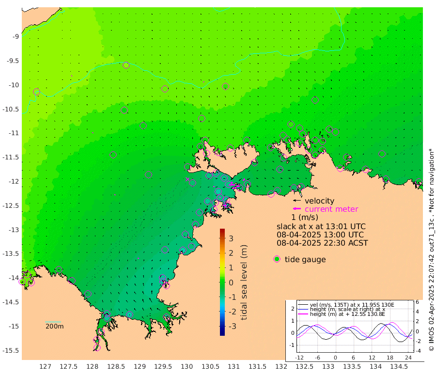 55cm/s -102T +4cm/s rms + 6cm/s 51T. Darwin_C1 52m 46cm/s -88T +4cm/s rms + 7cm/s -161T. Darwin_CW1 22m 39cm/s -108T +4cm/s rms + 8cm/s 61T. Darwin_CW2 34m 32cm/s -138T +3cm/s rms + 9cm/s 98T. Darwin_CW3 22m 50cm/s -91T +5cm/s rms + 7cm/s 88T. Darwin_C3 56m 28cm/s -115T +2cm/s rms + 9cm/s -126T. Darwin_CTbW 22m 7cm/s 145T +9cm/s rms + 2cm/s -110T. NWSLYN 196m 15cm/s -98T +1cm/s rms + 1cm/s -47T. DARBGF 30m 3cm/s 45T +7cm/s rms + 2cm/s -137T. ITFTIS 464m 6cm/s 29T +9cm/s rms + 1cm/s 74T. ITFMHB 146m 14cm/s -2T +4cm/s rms + 1cm/s -134T. ITFJBG 61m 6cm/s 6T +6cm/s rms + 4cm/s 121T. ITFFTB 108m 15cm/s -66T +4cm/s rms + 3cm/s 80T. NRSDAR 19m 36cm Carronade Island 43cm Guy Point 43cm Napier Broome Bay -13cm Lesueur Island -66cm Reveley Island -51cm Rocky Island -103cm Cape Domett -97cm Lacrosse Island -100cm Adolphus Island -59cm Pender Point -50cm Wyndham 6cm The Boxers 3cm Unnamed Shoal 48cm Loxton Shoal -114cm Pelican Island 14cm Calder Shoal 35cm Evans Shoal -108cm Quoin Island -118cm Port Keats -122cm Jones Point -104cm Catfish Island -77cm Cape Scott Offshore -123cm Cape Ford -87cm Anson Bay 24cm Goodrich Bank -80cm Peron Island North -88cm Point Jenny -87cm Native Point -102cm Fish Reef -95cm Tapa Bay -32cm Point Fawcett (Offshore) -114cm Burge Point -92cm Munkunuwa -87cm Beagle A -98cm Parsons Bank -117cm Fenton Patches 32cm Lynedoch Bank -95cm Hancox Shoal Area -106cm Nightcliff -108cm Darwin -94cm Charles Point Patches -84cm Glyde Point -70cm Chambers Bay -70cm Point Stuart -72cm Cape Hotham -63cm Christine Reef -77cm West Alligator Head -76cm East Field Island -55cm Two Hills Bay -43cm Newby Shoal -53cm Camp Point -92cm Medina Inlet South -18cm South Barlow Point -5cm St. Asaph Bay 22cm Cape Van Dieman 25cm Snake Bay 17cm Cache Point 50cm Echo Shoal 8cm Point Jahleel (Off) -16cm Cape Don 10cm Port Essington 8cm Smith Point - West 13cm NW Peacock Island 24cm North Of Jones Shoal 8cm Peacock Island 12cm Point David 10cm D'urville Point 21cm Money Shoal 9cm Copeland Island 7cm Cape Cockburn 13cm One Tree Point 14cm Hogmany Shoal 11cm New Year Island - West 11cm Grant Island -4cm Aurari Bay -10cm Cuthbert Point 1cm North Goulburn Island -4cm Paxie Shoal -24cm Entrance Island -32cm Yabooma Island